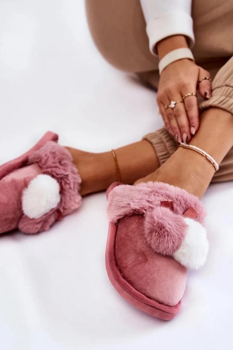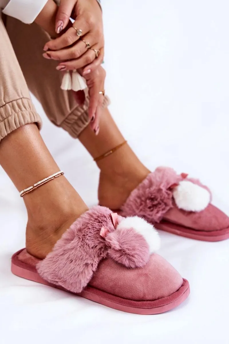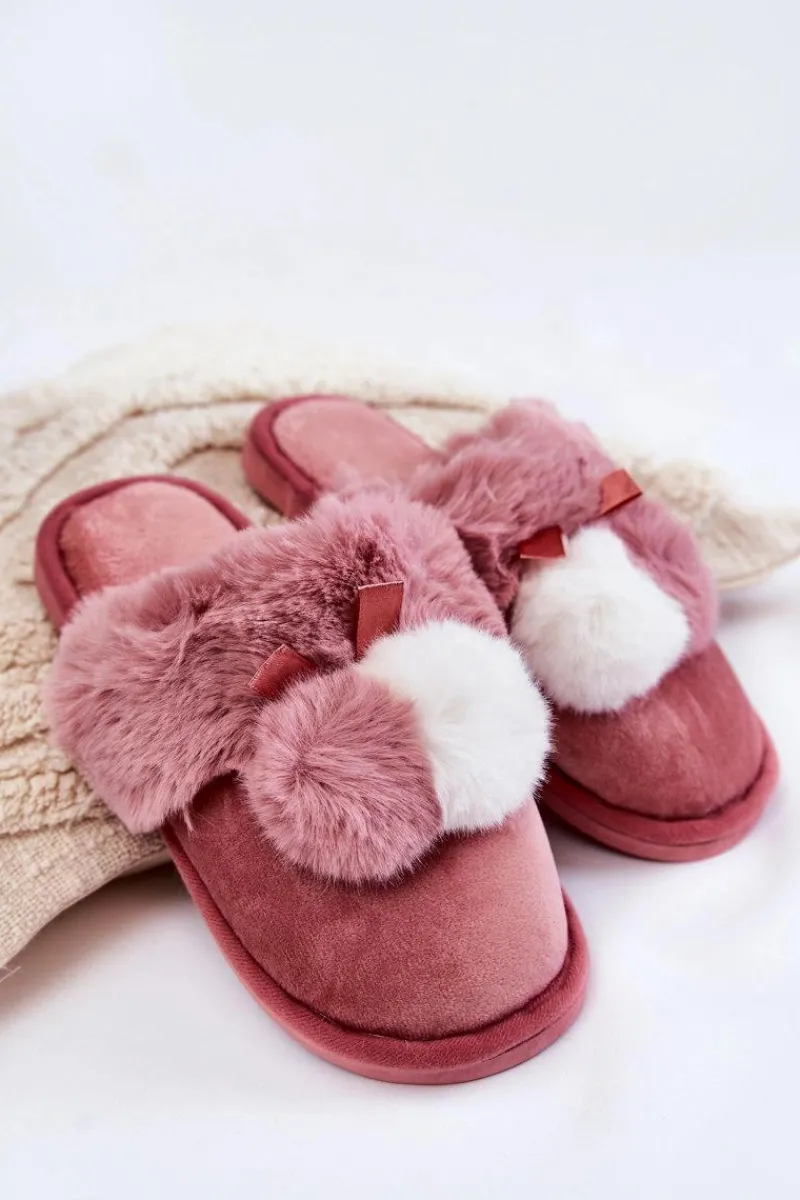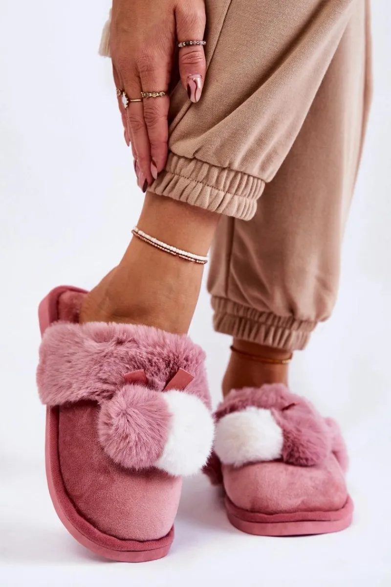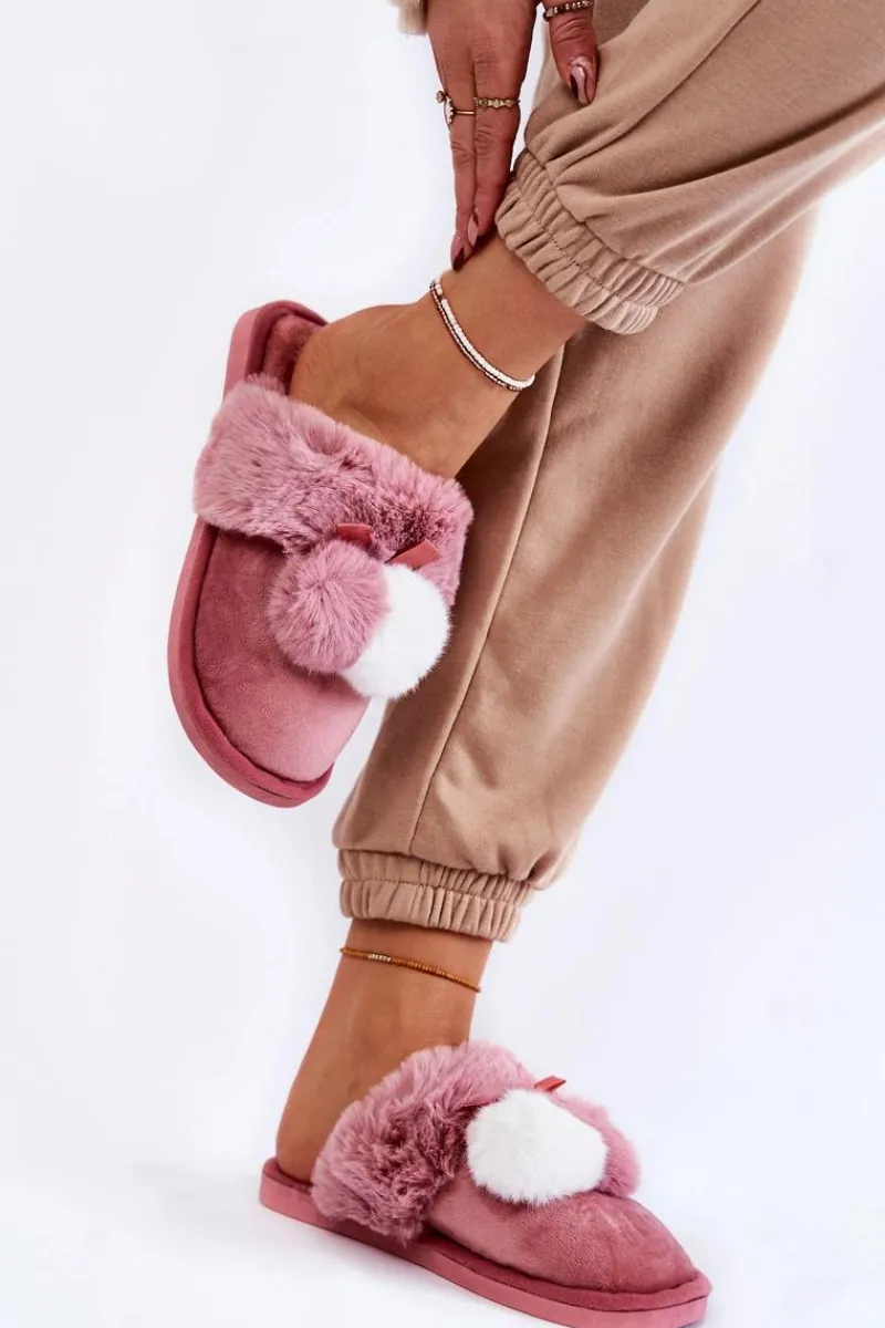 Damskie papcie zostały wykonane z miłej w dotyku tkaniny. Dodatkowo ozdobione pomponami oraz futerkiem. Wewnątrz ocieplone kocem obuwniczym. Wkładka jest miękka i komfortowa podczas użytkowania. Ten model idealnie sprawdzi się podczas chłodniejszych dni. Papcie zostały osadzone na płaskiej podeszwie wykonanej z gumowego tworzywa. Przy wyborze rozmiaru prosimy kierować się tabelą rozmiarów.