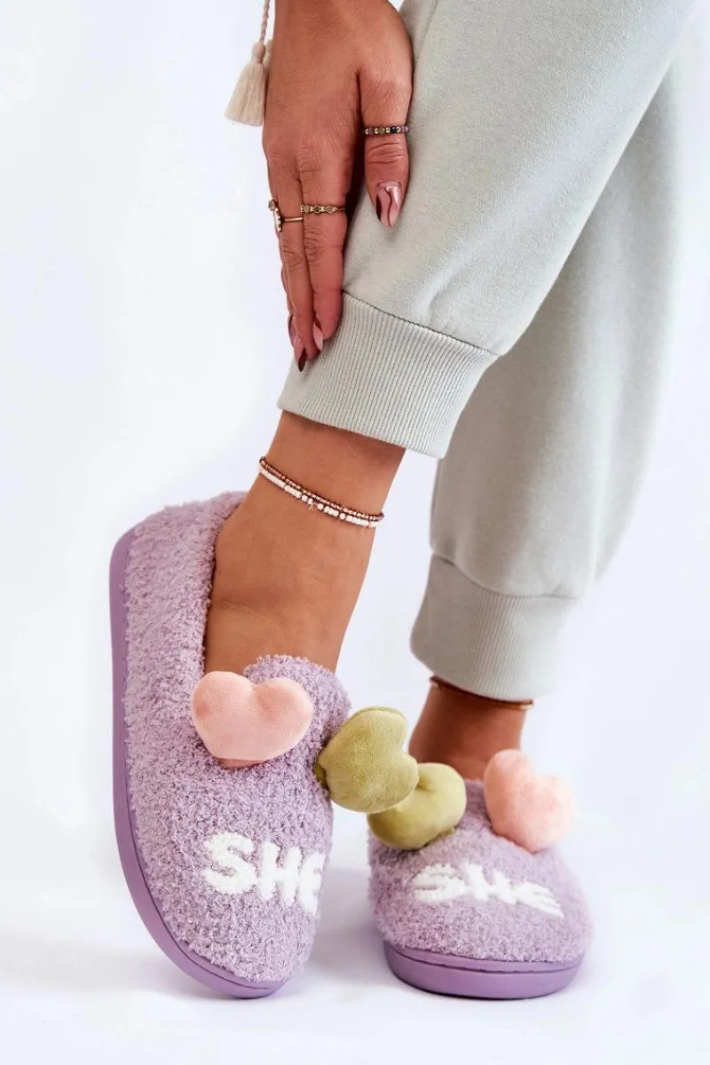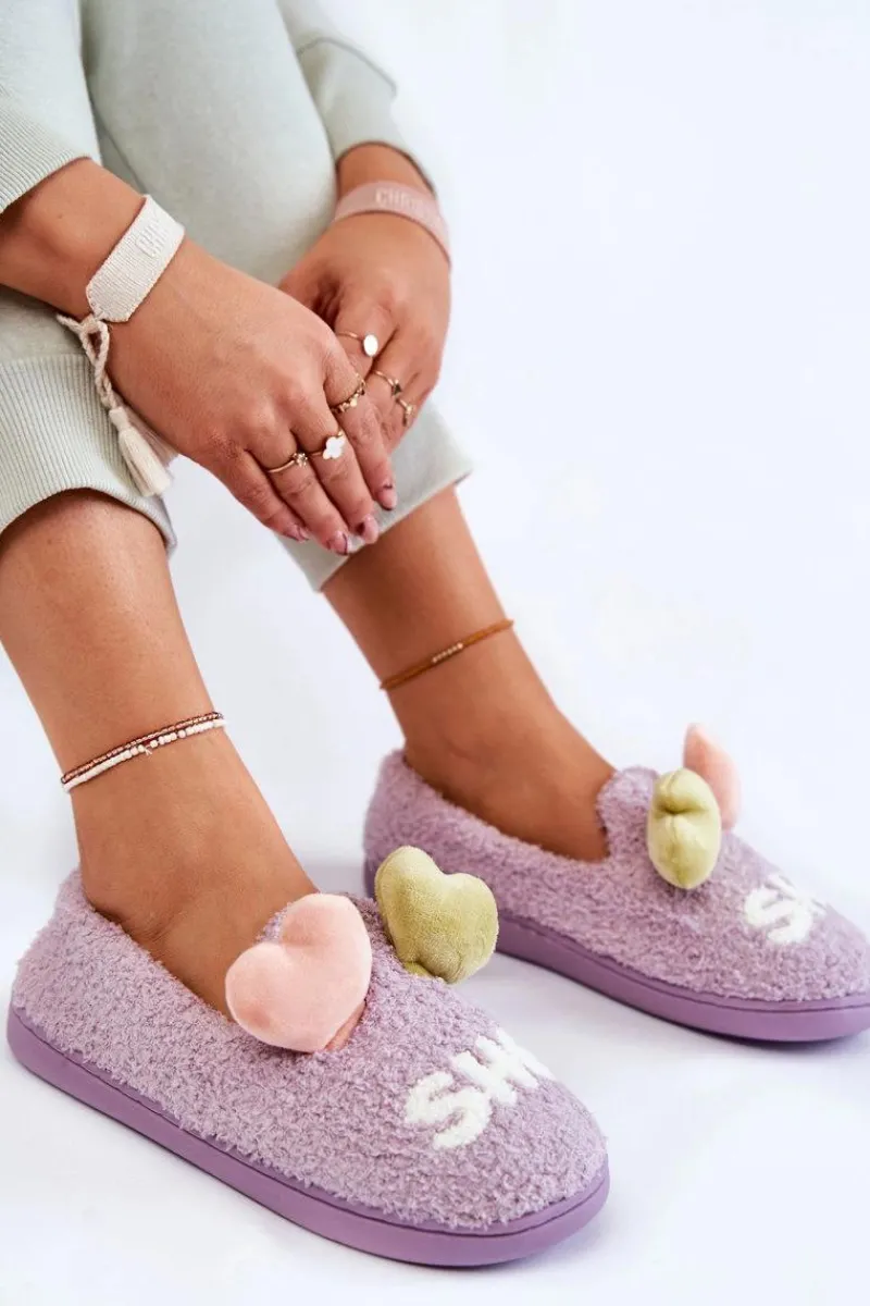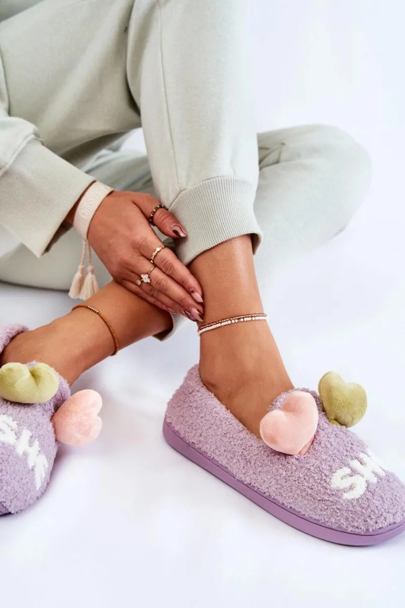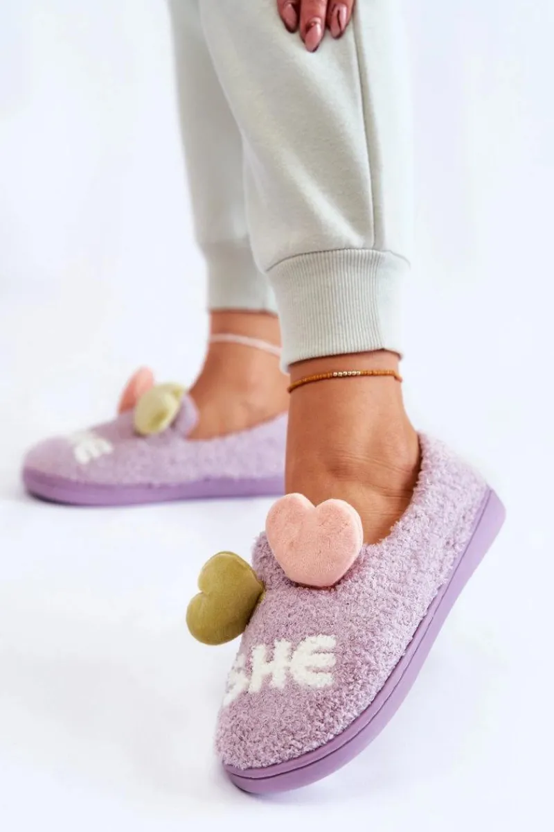 Kapcie Klasyczne>Boto Damskie Wsuwane Papcie Z Sercami Fioletowe Alasca