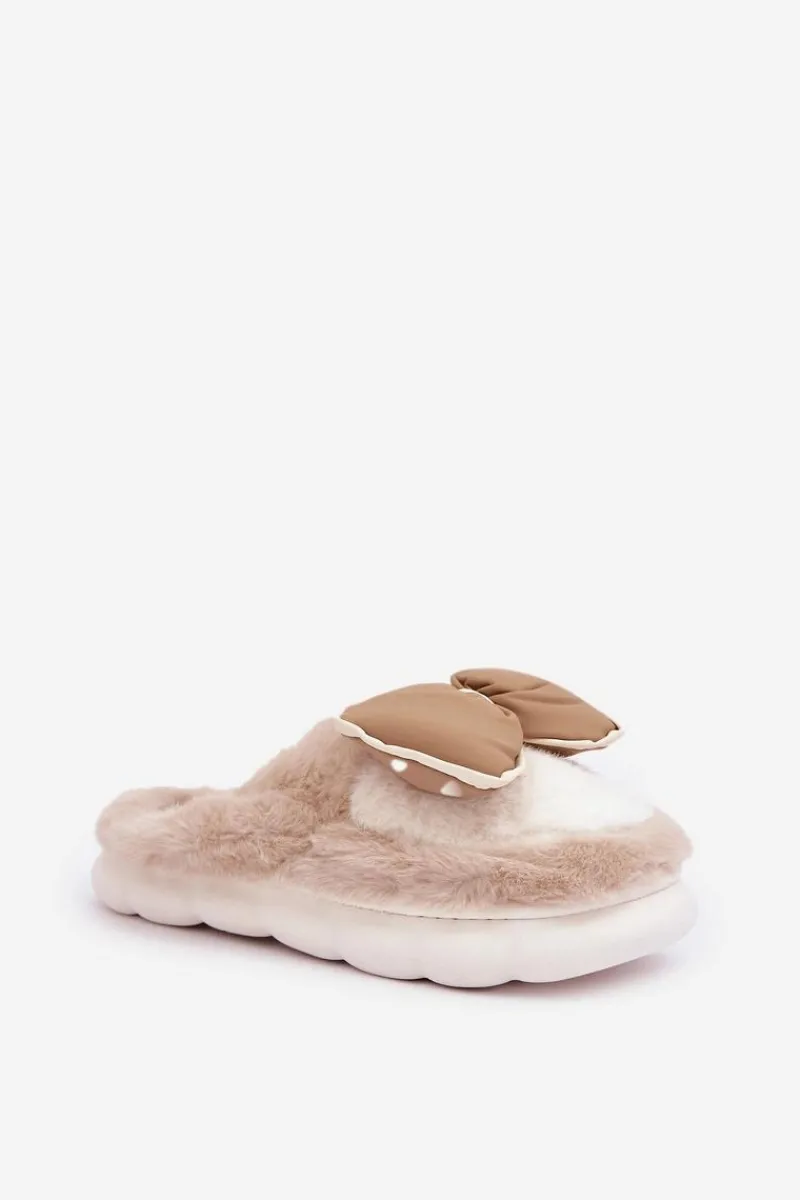 Kapcie damskie wykonane z miękkiego, przytulnego futerka, idealnie otulają stopy, zapewniając ciepło i komfort. Model osadzony na grubszej podeszwie, co dodaje stabilności i izoluje od chłodnego podłoża. Zakryte noski zapewniają dodatkową ochronę przed zimnem, czyniąc kapcie idealnym wyborem na chłodne dni. Przód ozdobiony kokardką, która nadaje wyjątkowego uroku. Stylowe i praktyczne! Przy wyborze rozmiaru prosimy sugerować się tabelą rozmiarów.