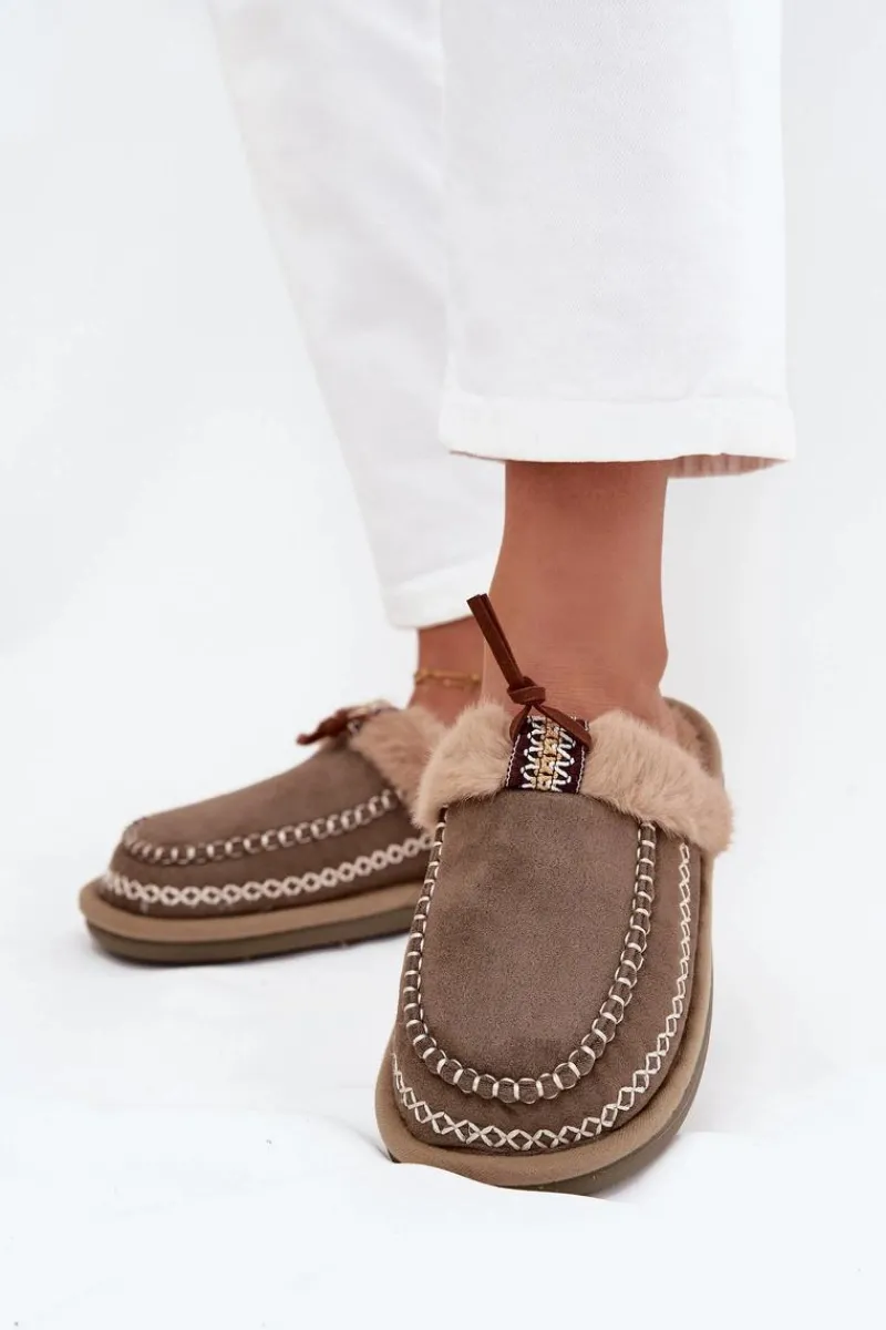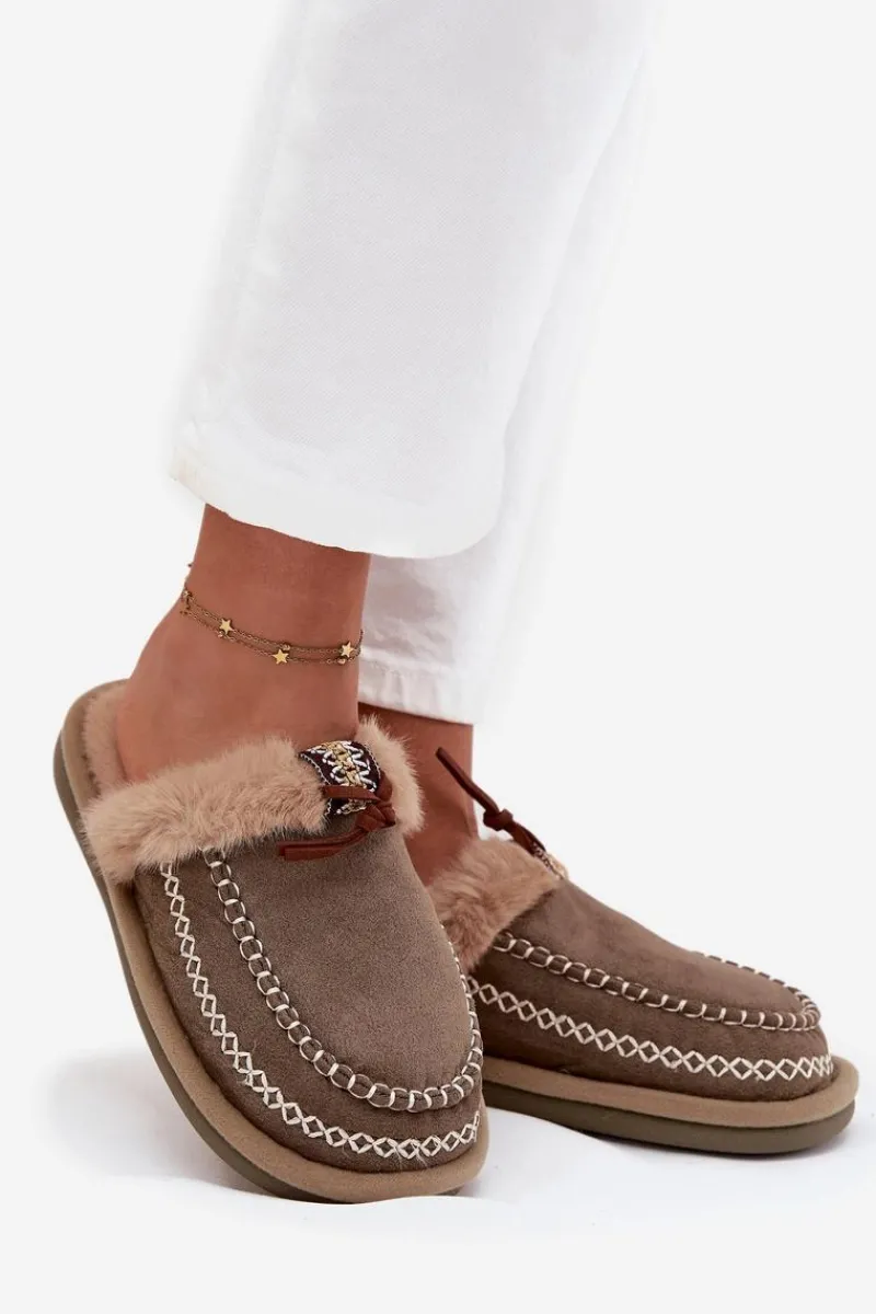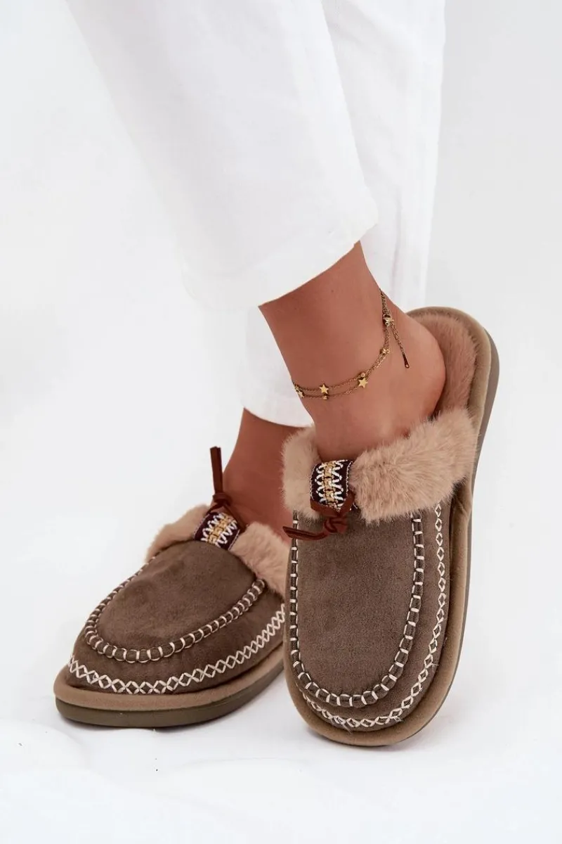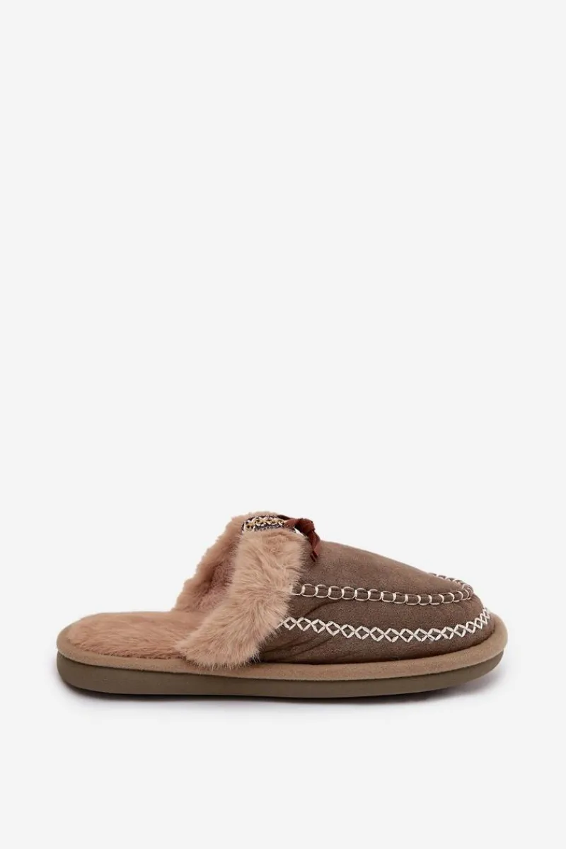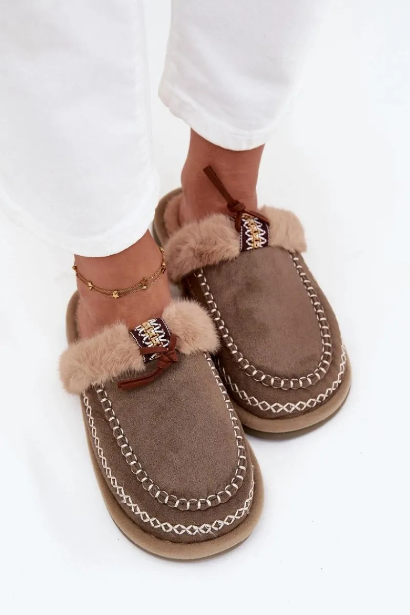 Kapcie Klasyczne|Klapki Z Futerkiem>Boto Kapcie Damskie Z Futerkiem I Haftem Zielone Perivelle