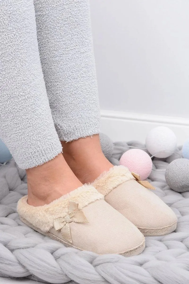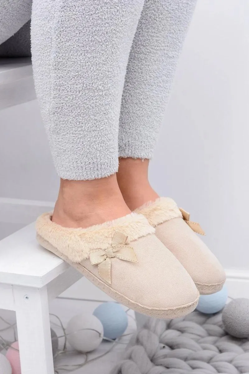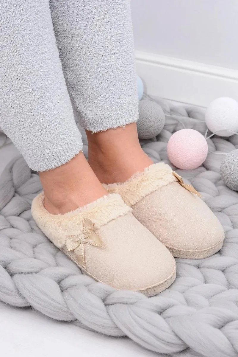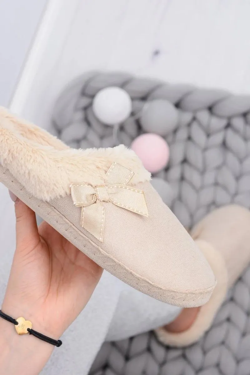 Kapcie Klasyczne|Klapki Z Futerkiem>Boto Klapki Damskie Z Futerkiem I Kokardką SOXO Beżowe