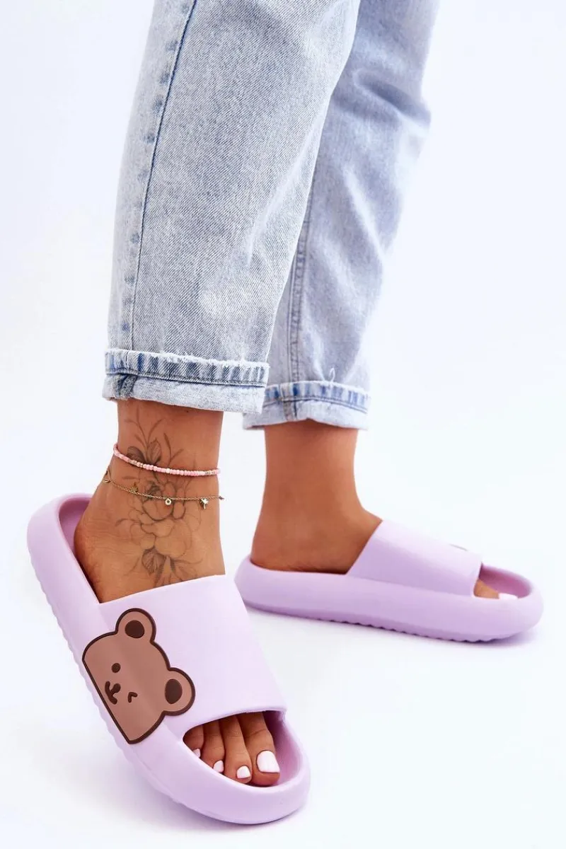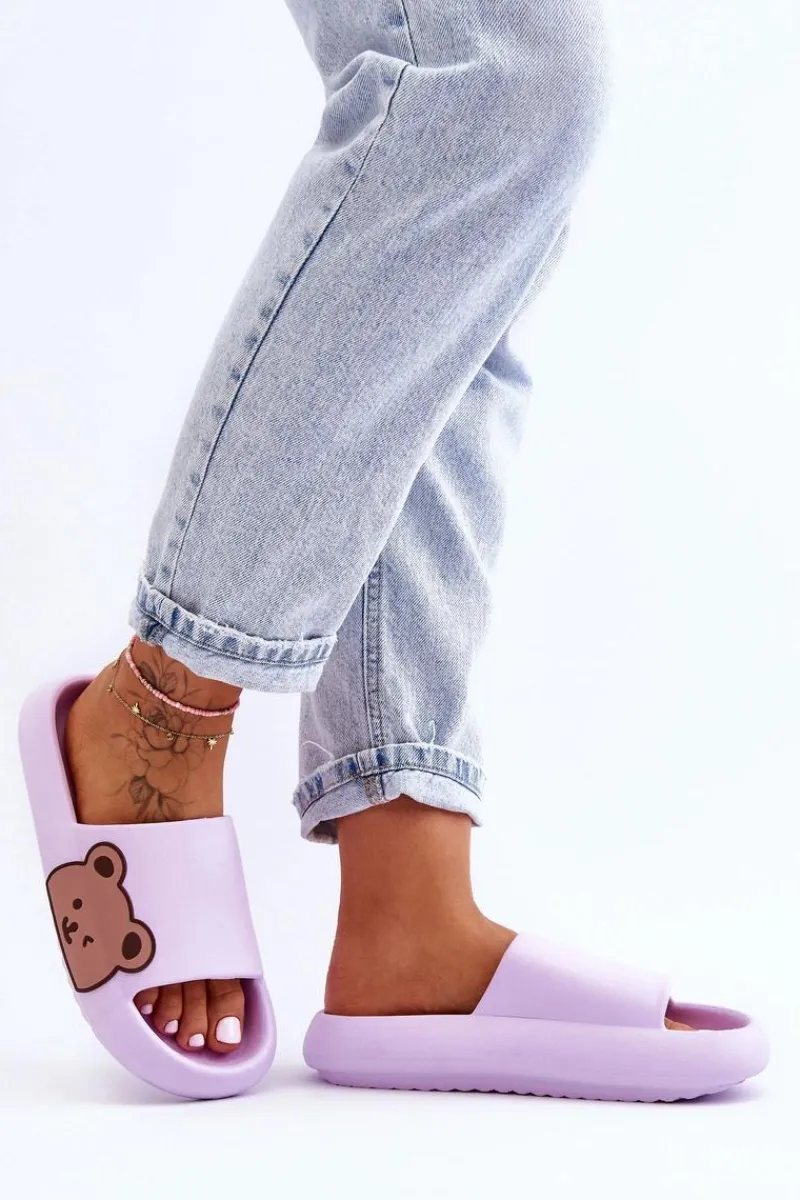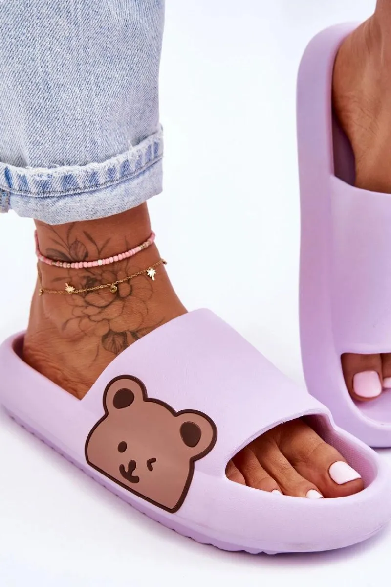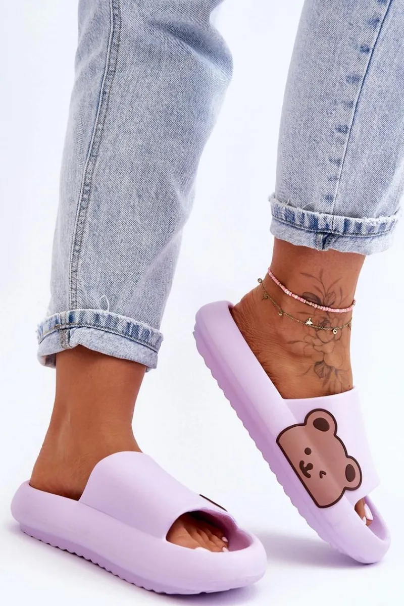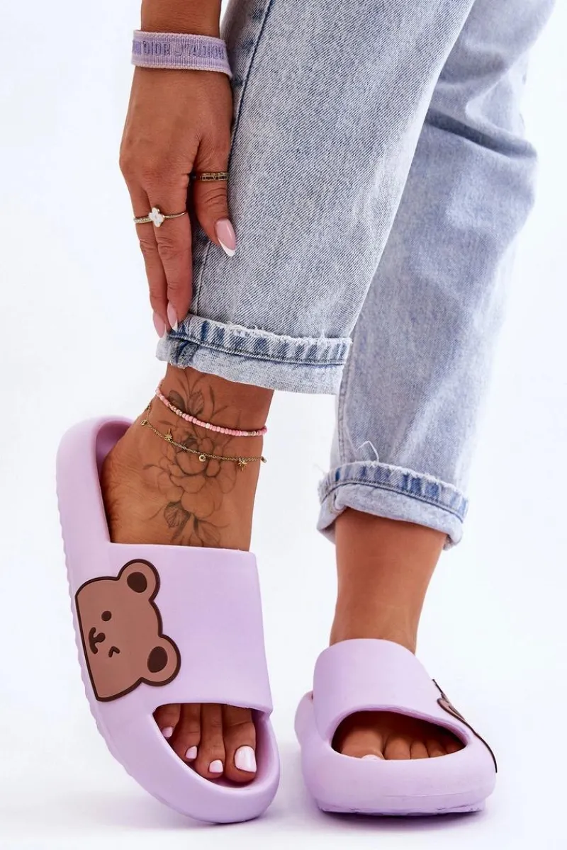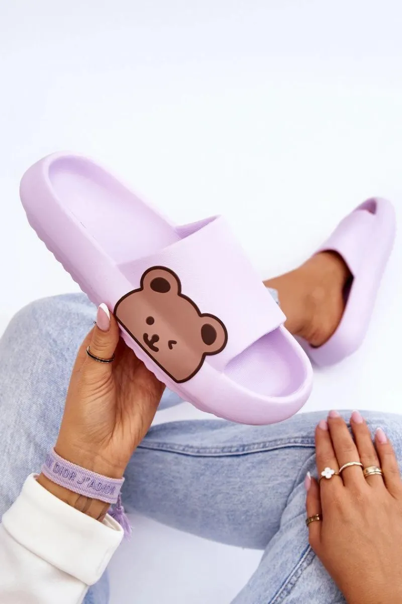 Klapki Basenowe|Klapki Damskie Klasyczne>Boto Damskie Lekkie Piankowe Klapki Motyw Misia Fioletowe Parisso