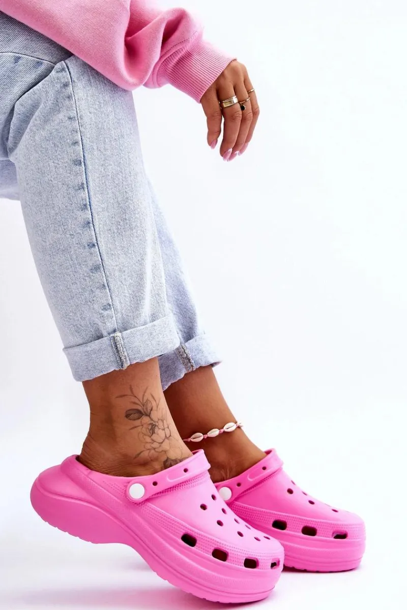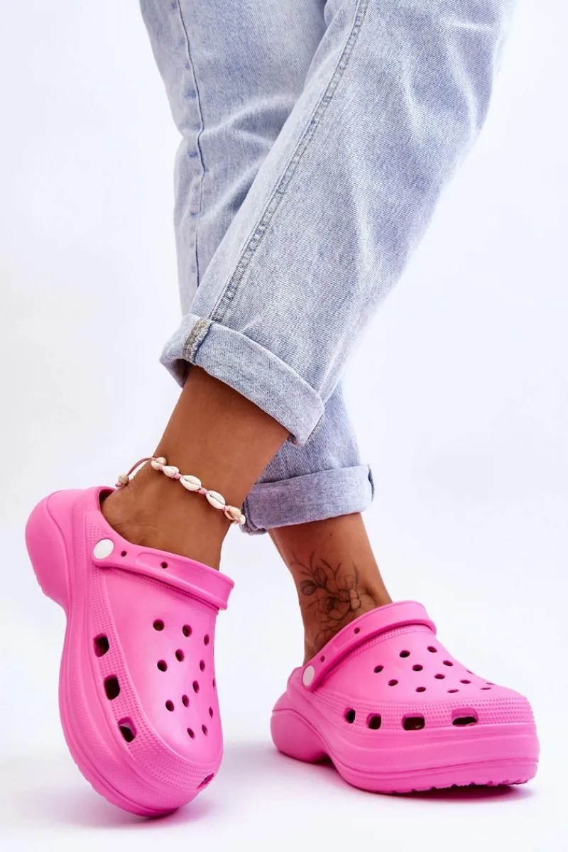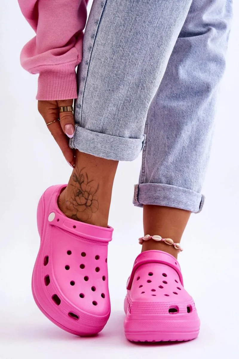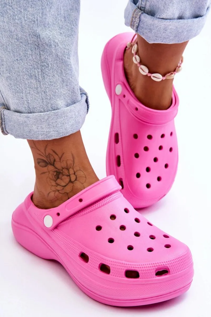Damskie klapki wykonane z wysokojakościowego, piankowego tworzywa. Wkładka z wypustkami sprawia, że stopy nie będą już takie zmęczone, nawet po całym dniu użytkowania. Ruchomy paseczek zabezpiecza przed przesuwaniem się stopy. Buty zostały osadzone na masywnym obcasie oraz platformie. Idealny model do pracy w ogrodzie czy użytkowania w domu zamiast papci. Otwory w cholewce pozwalają na odpowiednią wentylację obuwia. Przy wyborze rozmiaru prosimy sugerować się tabelą rozmiarów.