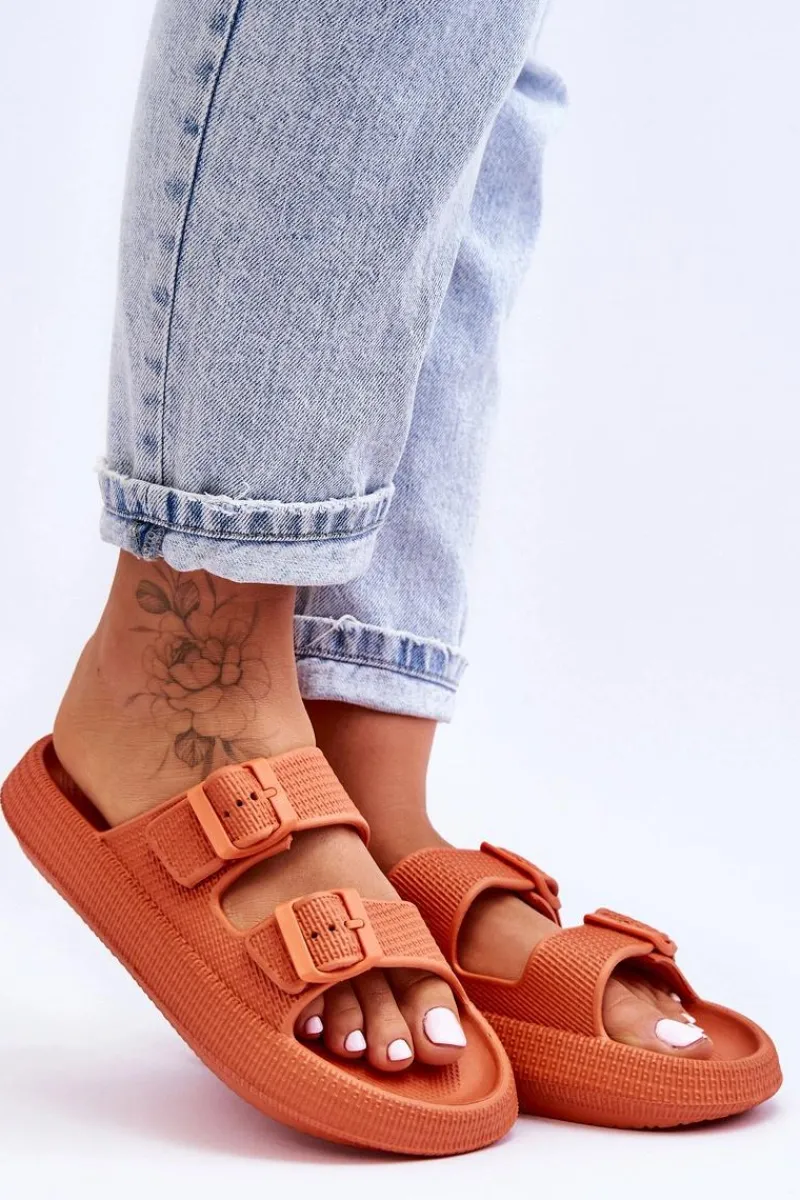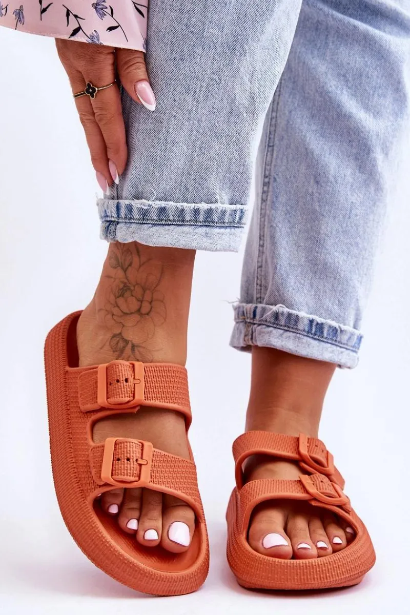 Klasyczne, damskie klapki zostały wykonane w całości z piankowego tworzywa. Posiadają klamry z tworzywa sztucznego z regulowanymi paskami. Model ten został osadzony na masywnej platformie. Idealne obuwie na letni sezon. Klapki te są niezwykle przewiewne i wygodne. Świetnie sprawdzą się także na basen czy plażę. Przy wyborze rozmiaru prosimy sugerować się tabelą rozmiarów.