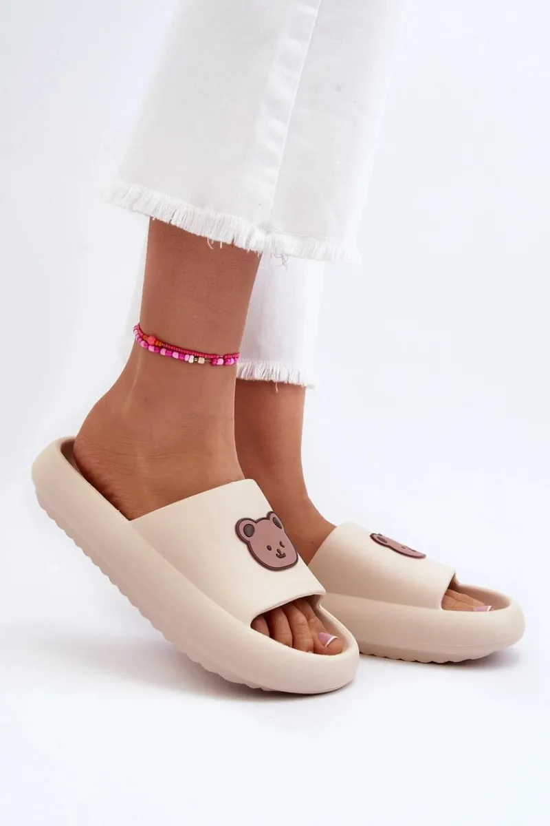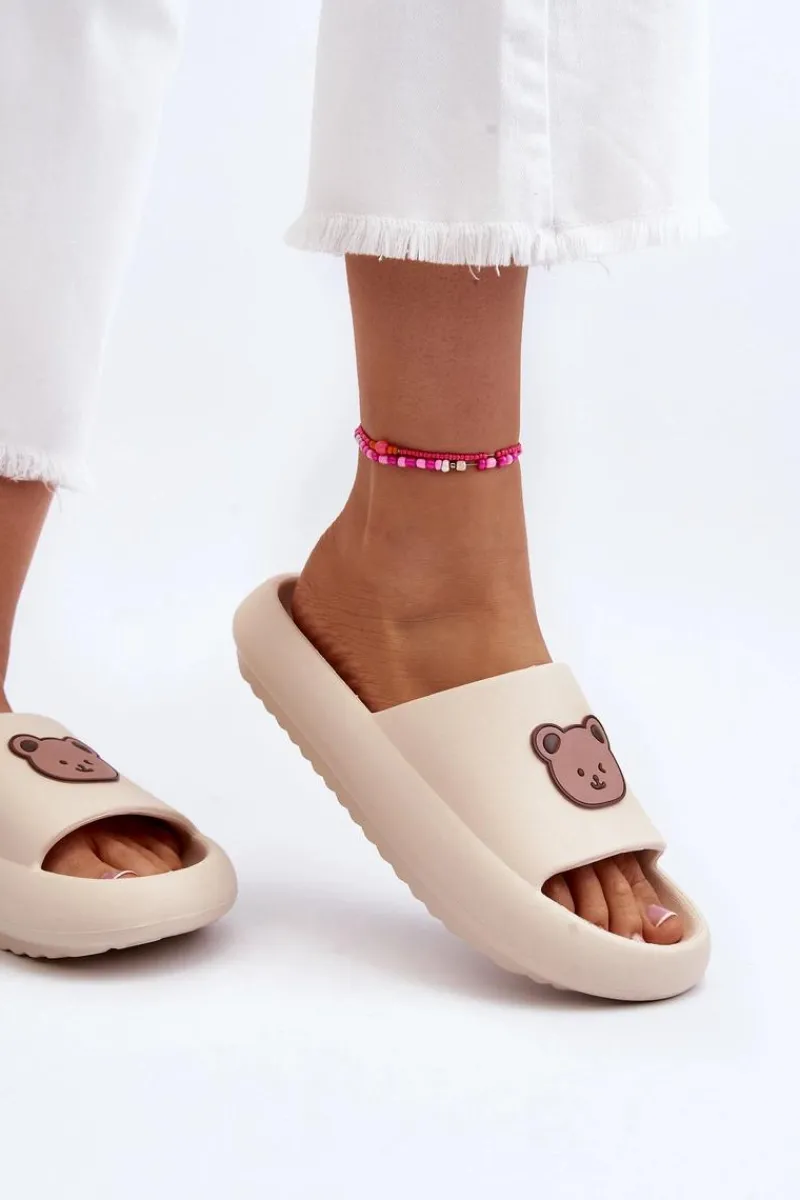 Śliczne, damskie klapki zostały wykonane z piankowego tworzywa. Model ten został osadzony na masywnej platformie. Na przodzie znajduje się uroczy motyw misia. Klapki z pewnością przypadną Ci do gustu. Możesz ich także używać jako obuwie domowe zamiast papci. Ten lekki model powinien być Twój! Przy wyborze rozmiaru prosimy sugerować się tabelą rozmiarów.