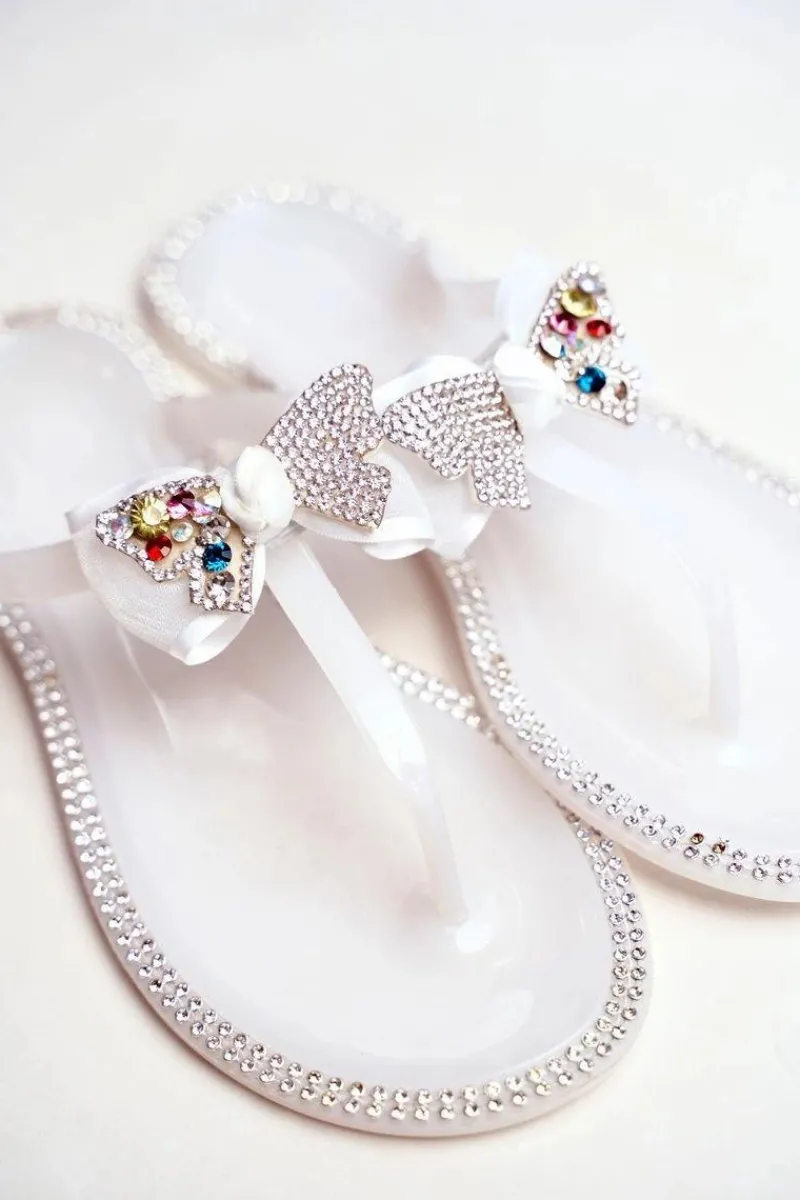 Klapki Damskie Japonki>Boto Damskie Gumowe Klapki Białe Japonki Cyrkonie Lissy