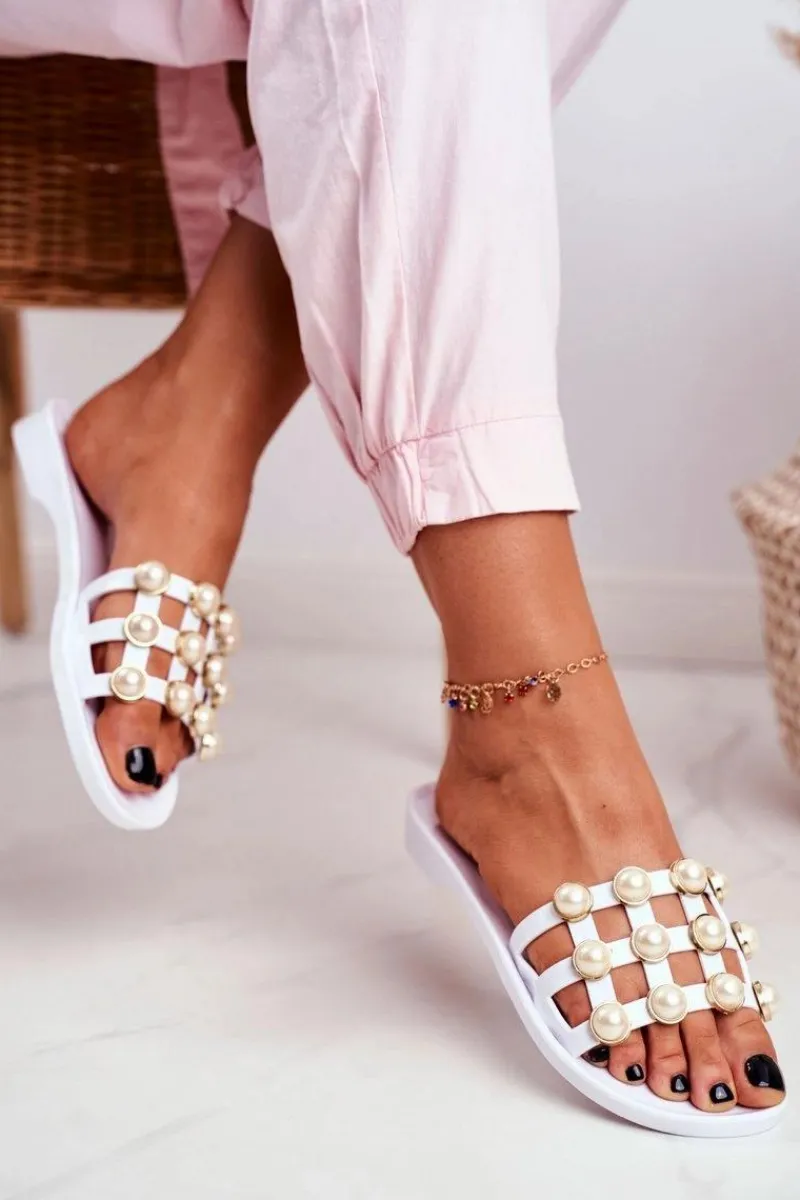 Klapki Damskie Klasyczne>Boto Damskie Gumowe Klapki Białe Perełki Estelle
