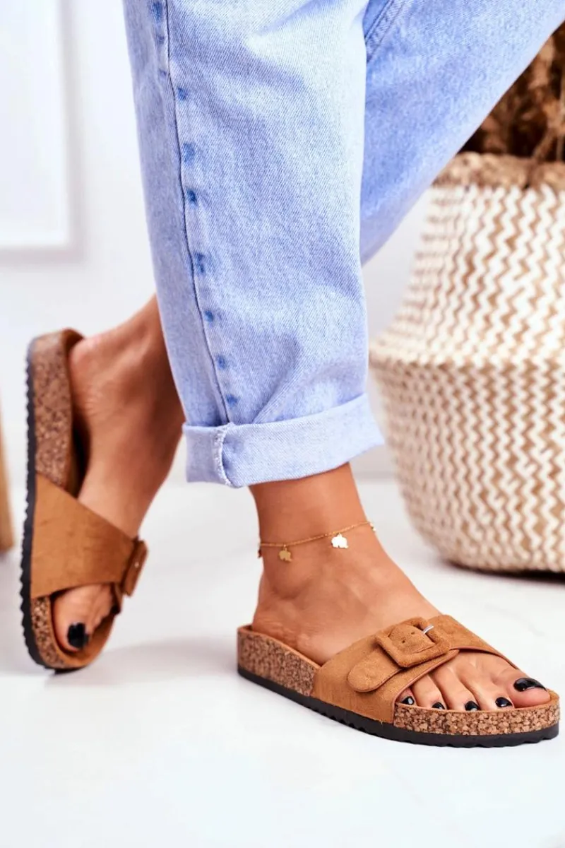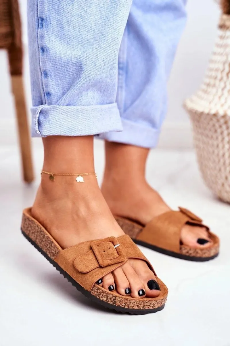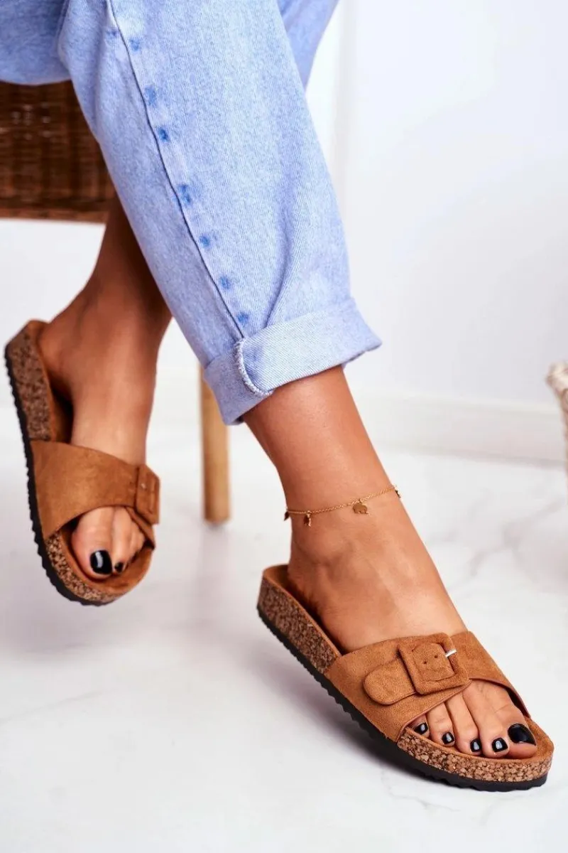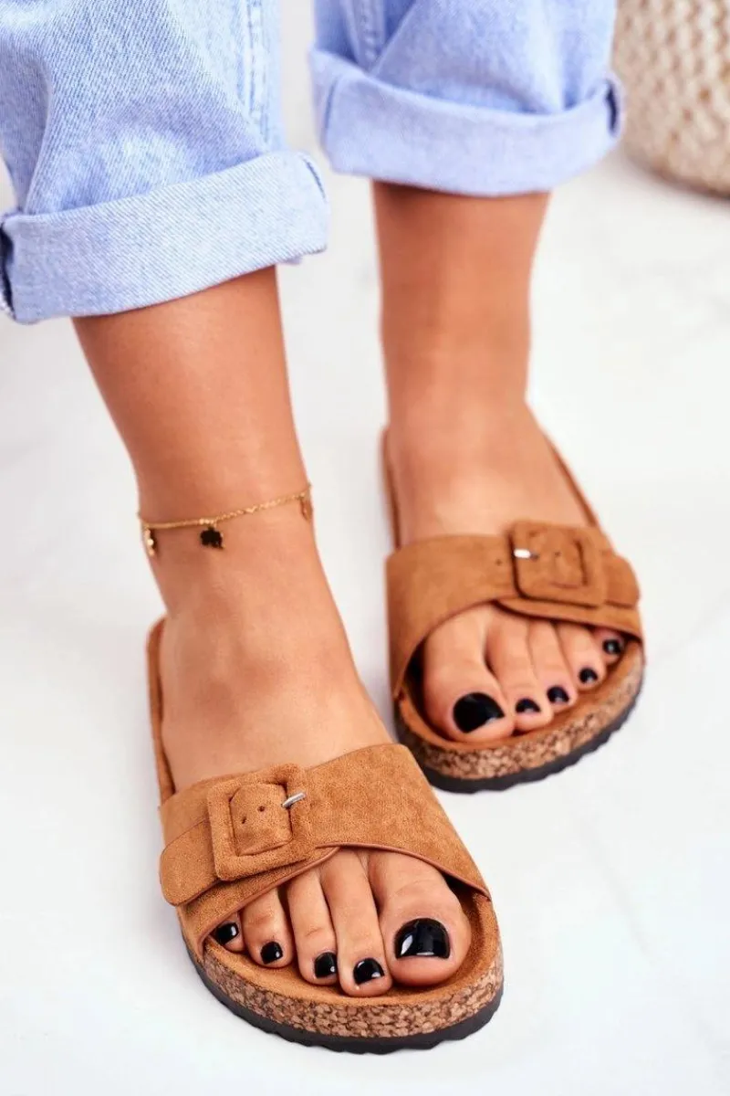 Klapki Damskie Klasyczne>Boto Damskie Klapki Brązowe Sprzączka Regulacja Rosaline