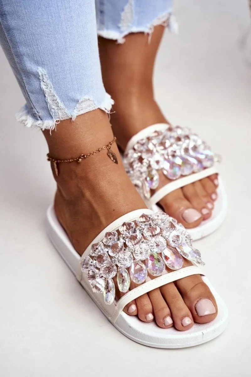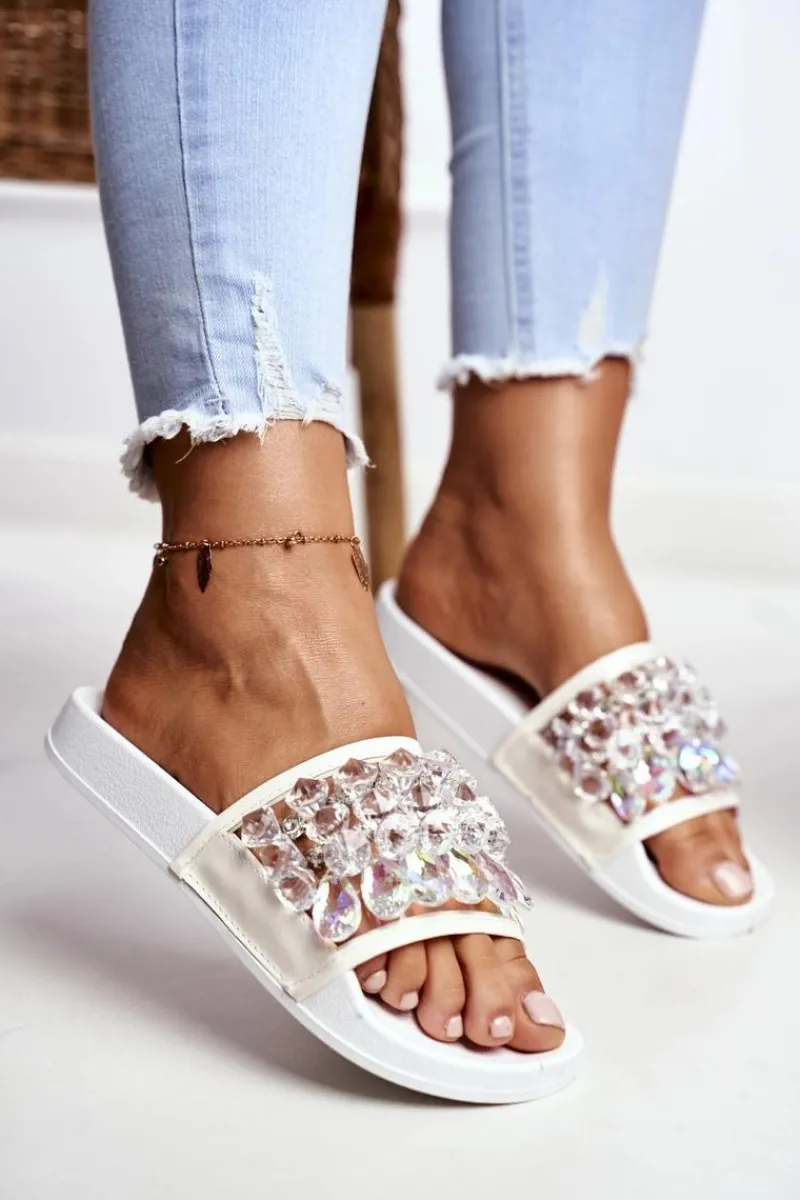 Klapki Damskie Klasyczne>Boto Damskie Klapki Lu Boo Kryształki Białe Bobbi