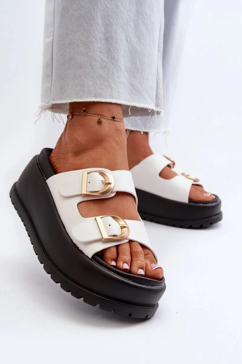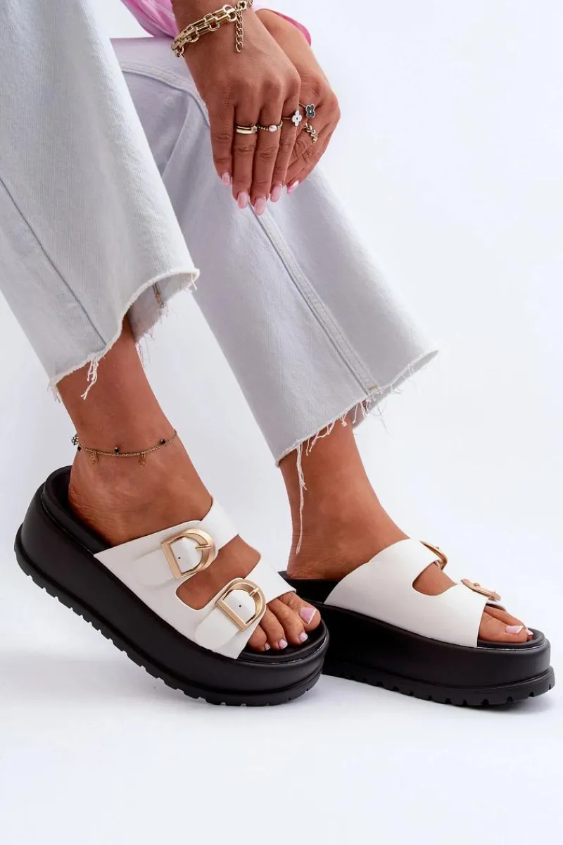 Klapki damskie na masywnej platformie to idealny wybór dla tych, którzy pragną połączyć wygodę z modnym stylem. Wykonane z eko skóry. Regulowane paski z klamrami sprawią, że łatwo dopasujesz je do tęgości stopy. Platforma zapewnia stabilność i wygodę noszenia przez cały dzień. Doskonałe na letnie spacery czy wieczorne wyjścia. Przy wyborze rozmiaru prosimy sugerować się tabelą rozmiarów.