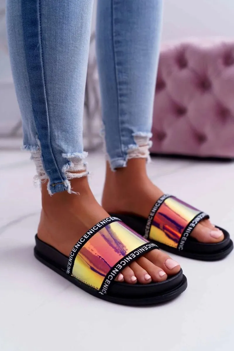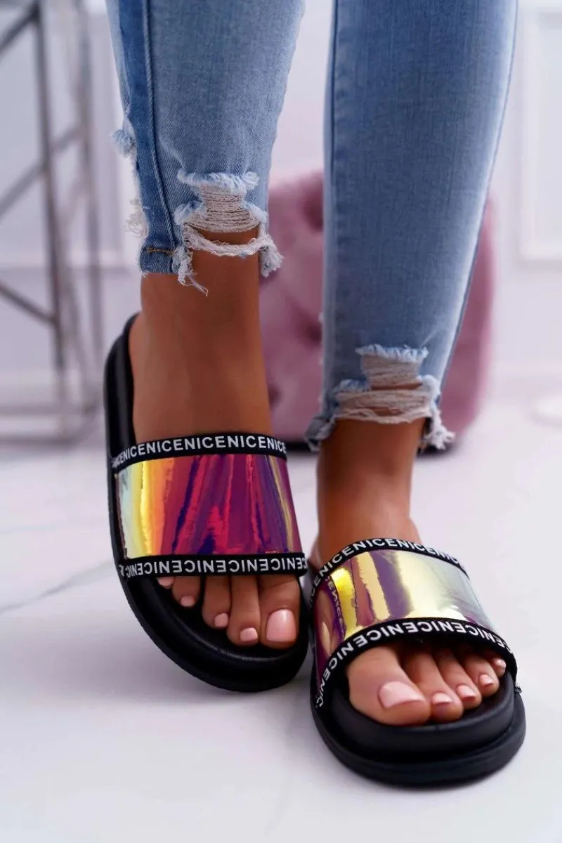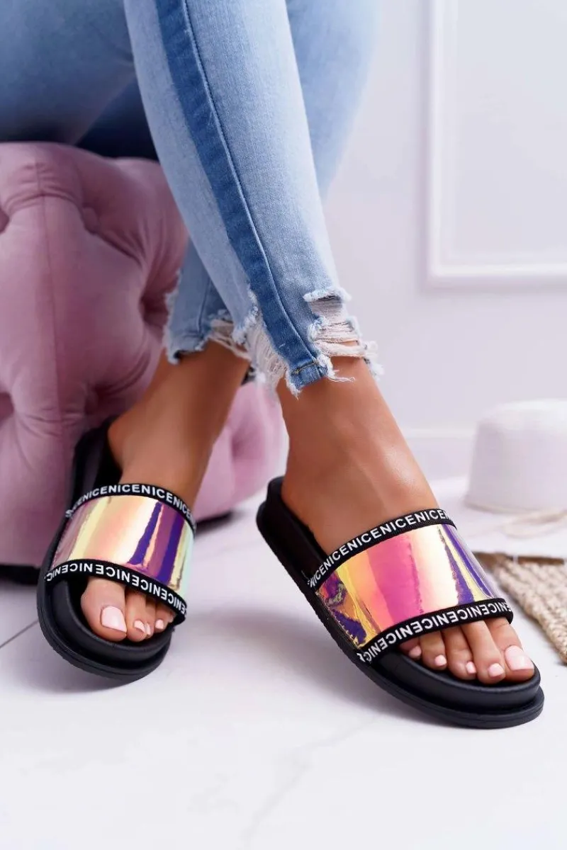Zapewnij sobie komfort i nienaganny styl! Nasze opalizujące klapki to coś dla Ciebie! Klasyczny czarny kolor oraz wygodna, gumowa wkładka. Nie czekaj dłużej i kup teraz!