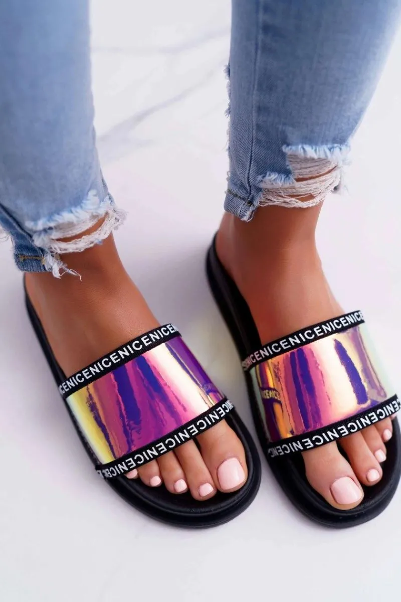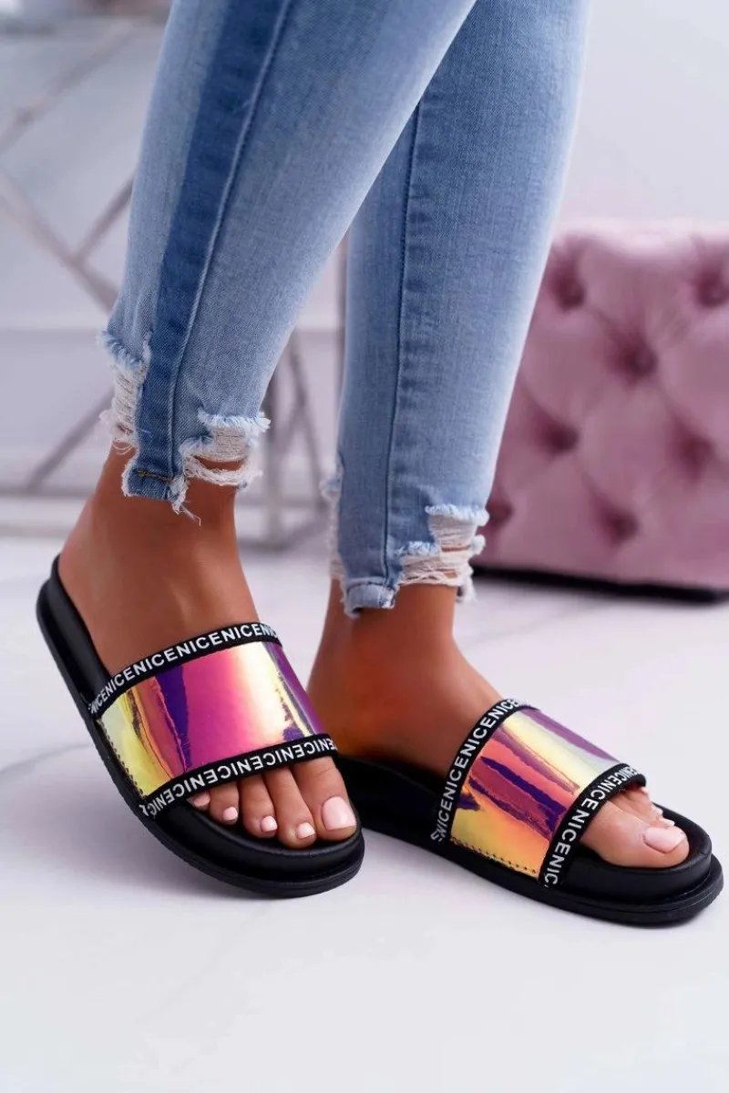 Klapki Damskie Klasyczne>Boto Damskie Klapki Różowe Opalizujące Nerdo
