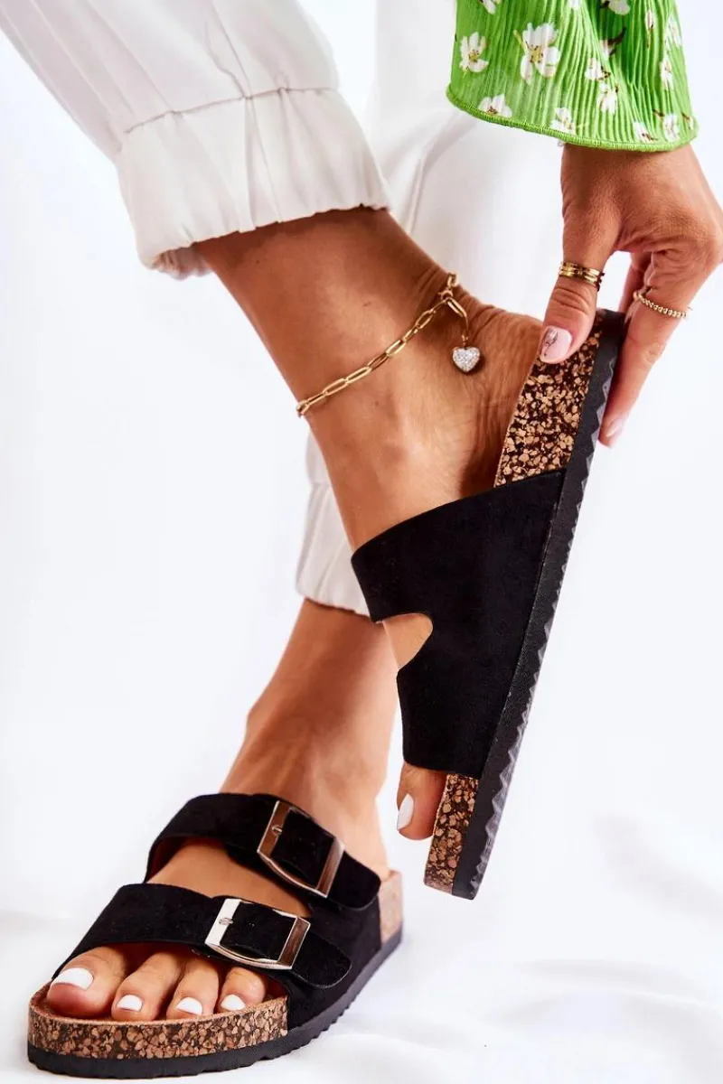 Idealne klapki na letnie spacery oraz codzienne wyjścia na zakupy. Klapki te posiadają dwa szerokie paski zapinane na sprzączkę, które można regulować. Wygoda oraz komfort użytkowania gwarantowane, dzięki profilowanej, wykonanej z eko zamszu wkładce. Platforma wykonana z lekkiego tworzywa sztucznego. Klapki te sprawiają, że Twoje stopy będą wypoczęte i zrelaksowane. Przy wyborze rozmiaru prosimy sugerować się tabelą rozmiarów.