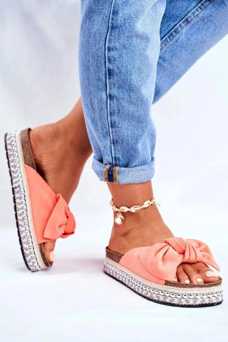 Hot Boto Damskie Klapki Z Kokardą I Cyrkoniami Różowe Jolene