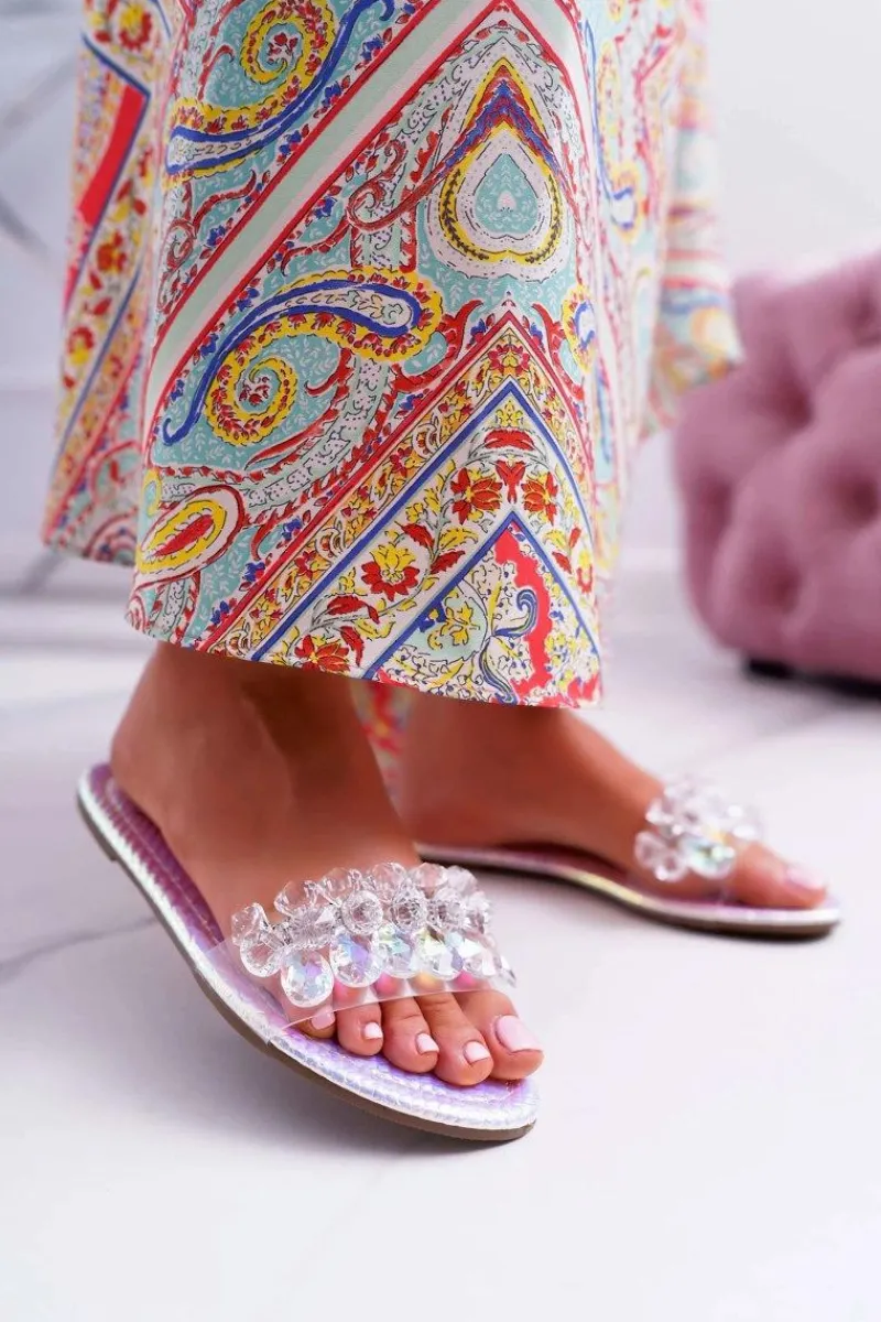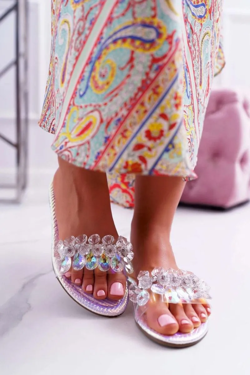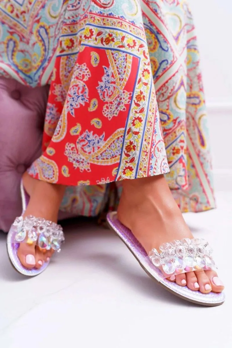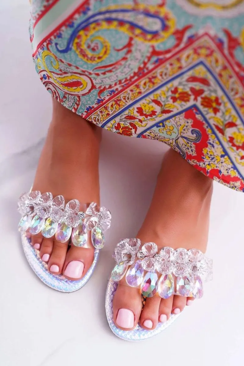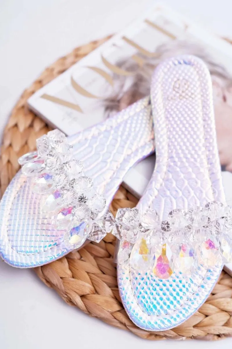 Klapki Damskie Klasyczne>Boto Damskie Klapki Z Cyrkoniami Lu Boo Benzynowe Srebrne Mediana