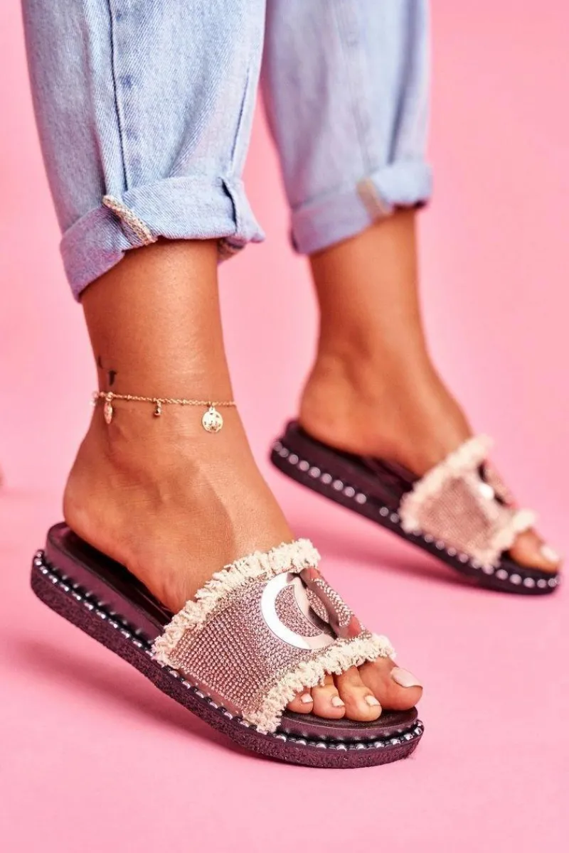 Klapki Damskie Klasyczne>Boto Damskie Klapki Z Kryształkami Różowe Złoto Valley