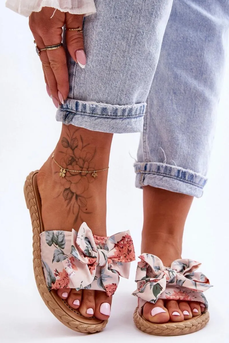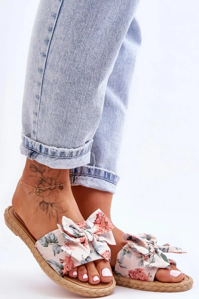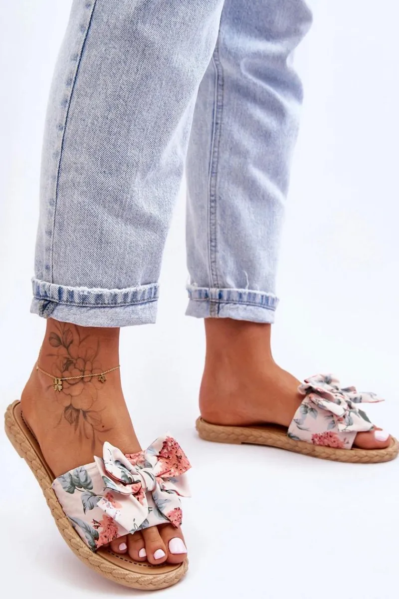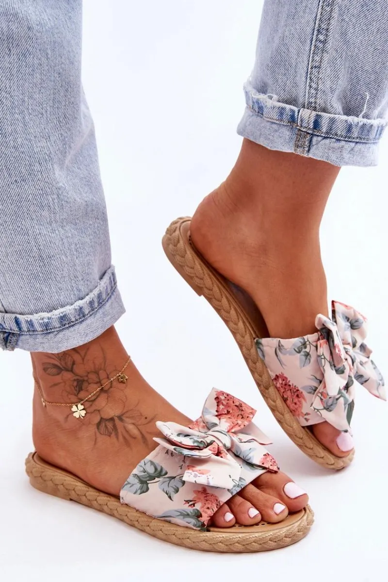 Klapki Damskie Klasyczne>Boto Damskie Klapki Z Materiałową Kokardą Beżowe Blossom