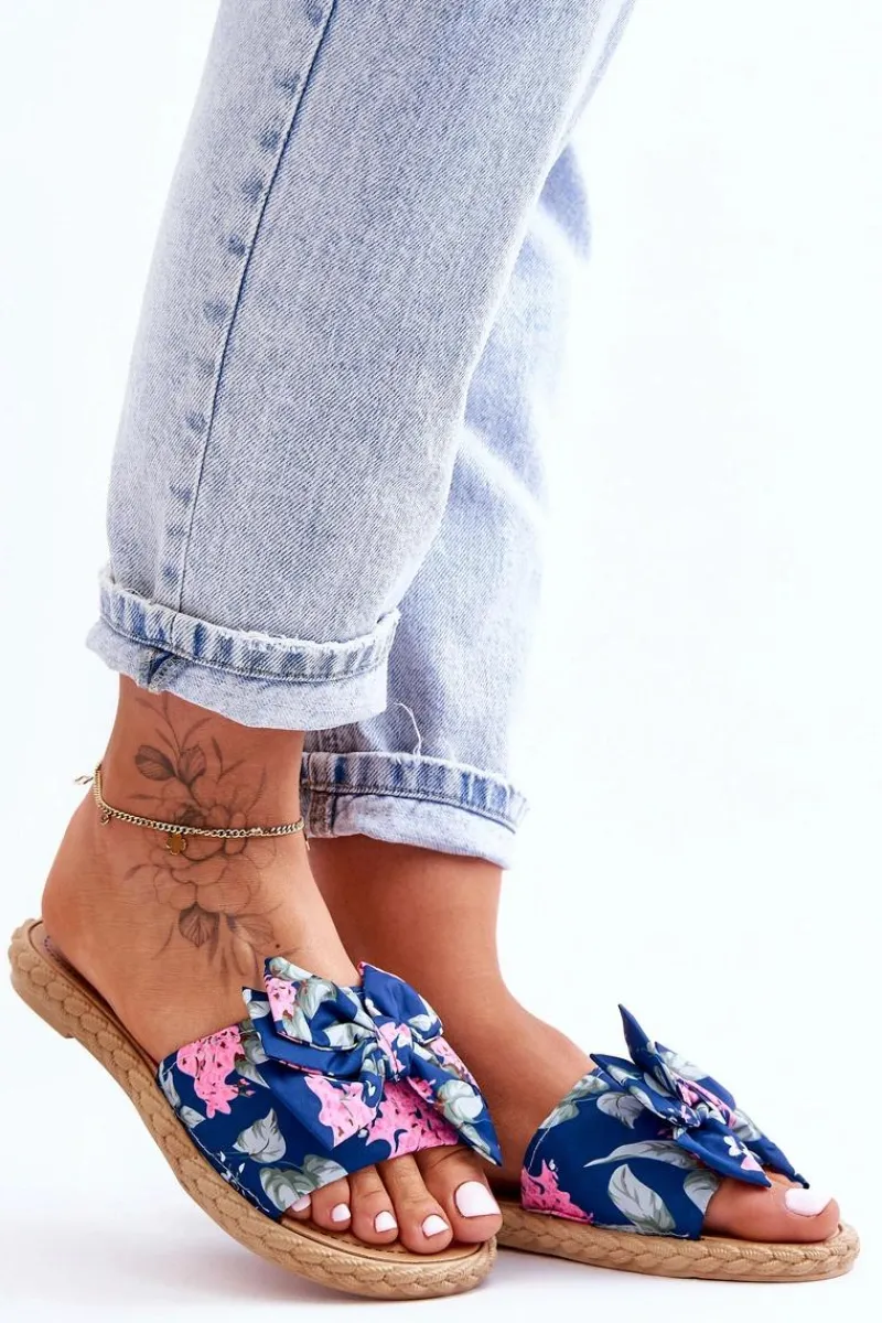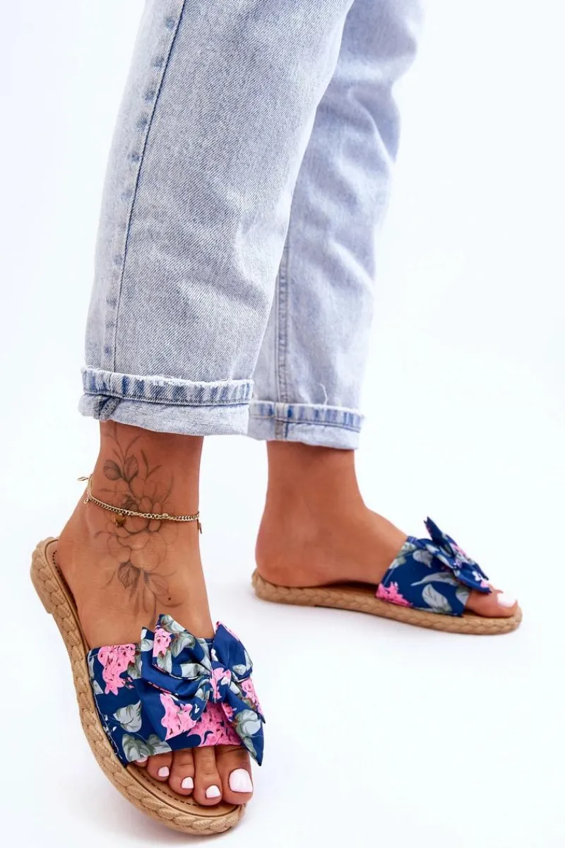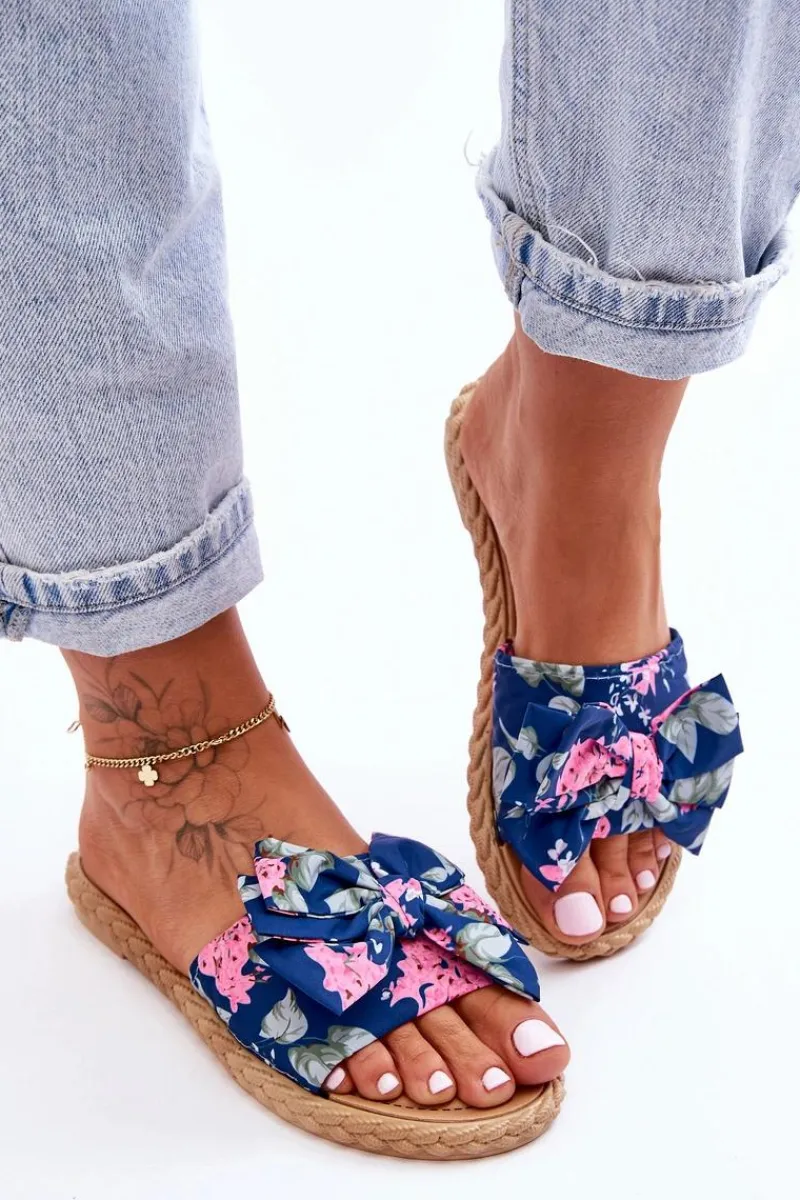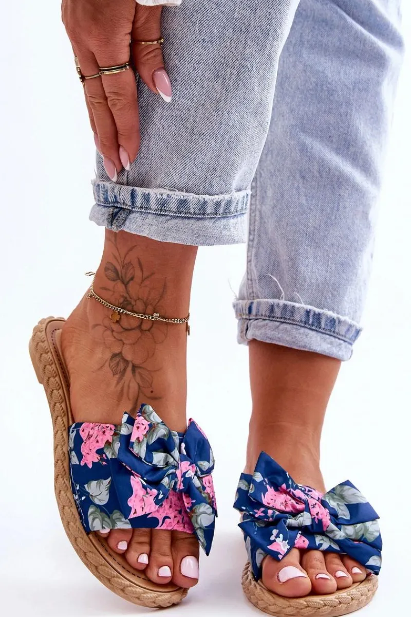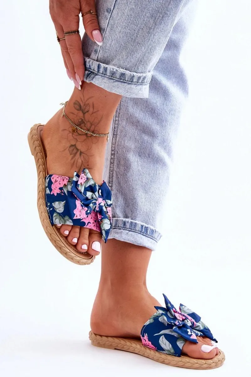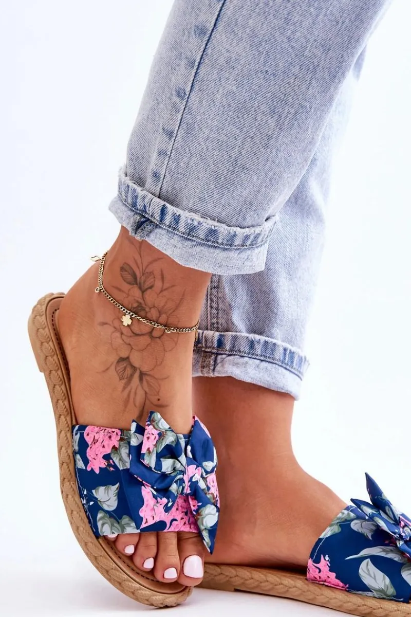Piękne, damskie klapki zostały wykonane z zewnątrz z materiału tekstylnego w kwiecisty wzór. Klapki zostały wykonane z gumowego tworzywa. Osadzone na płaskim obcasie. Model ten jest wsuwany. Klapki cudnie będą prezentować się z sukienkami czy spódniczkami. Idealne obuwie na upalne dni! Przy wyborze rozmiaru prosimy sugerować się tabelą rozmiarów.