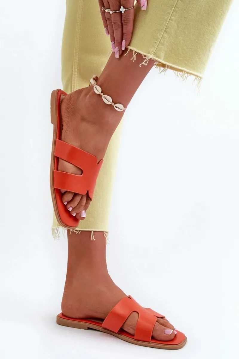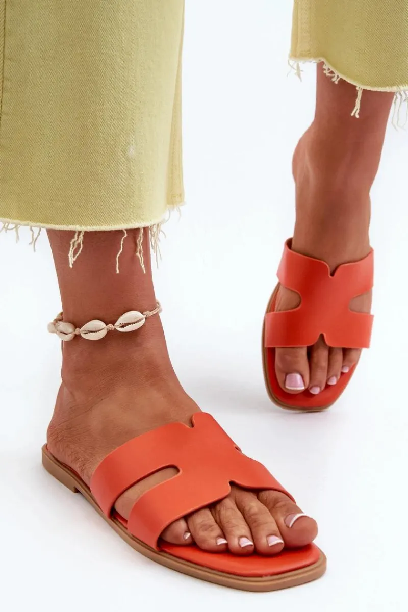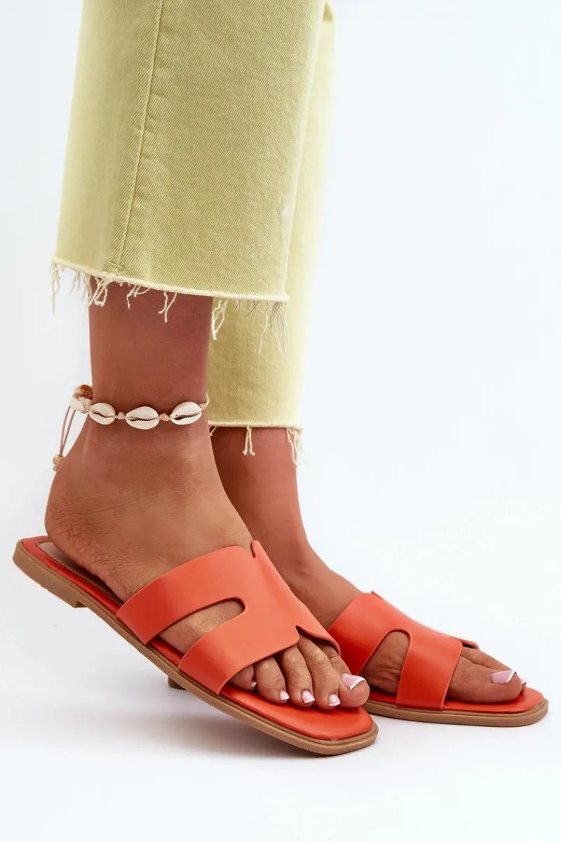 Klapki Damskie Klasyczne>Boto Damskie Płaskie Klapki Z Wycięciami Pomarańczowe Fiviama