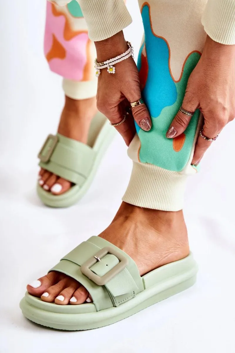 Klasyczne i modne damskie klapki zostały wykonane z eko skóry. Wkładka oraz podeszwa zostały wykonane z gumowego tworzywa. Posiadają sprzączkę na pasku z przodu. Te buty to świetna propozycja dla kobiet ceniących sobie komfort w letnie dni. Buty zostały dodatkowo osadzone na platformie. Koniecznie sprawdź całą naszą ofertę klapek damskich. Przy wyborze rozmiaru prosimy sugerować się tabelą rozmiarów.