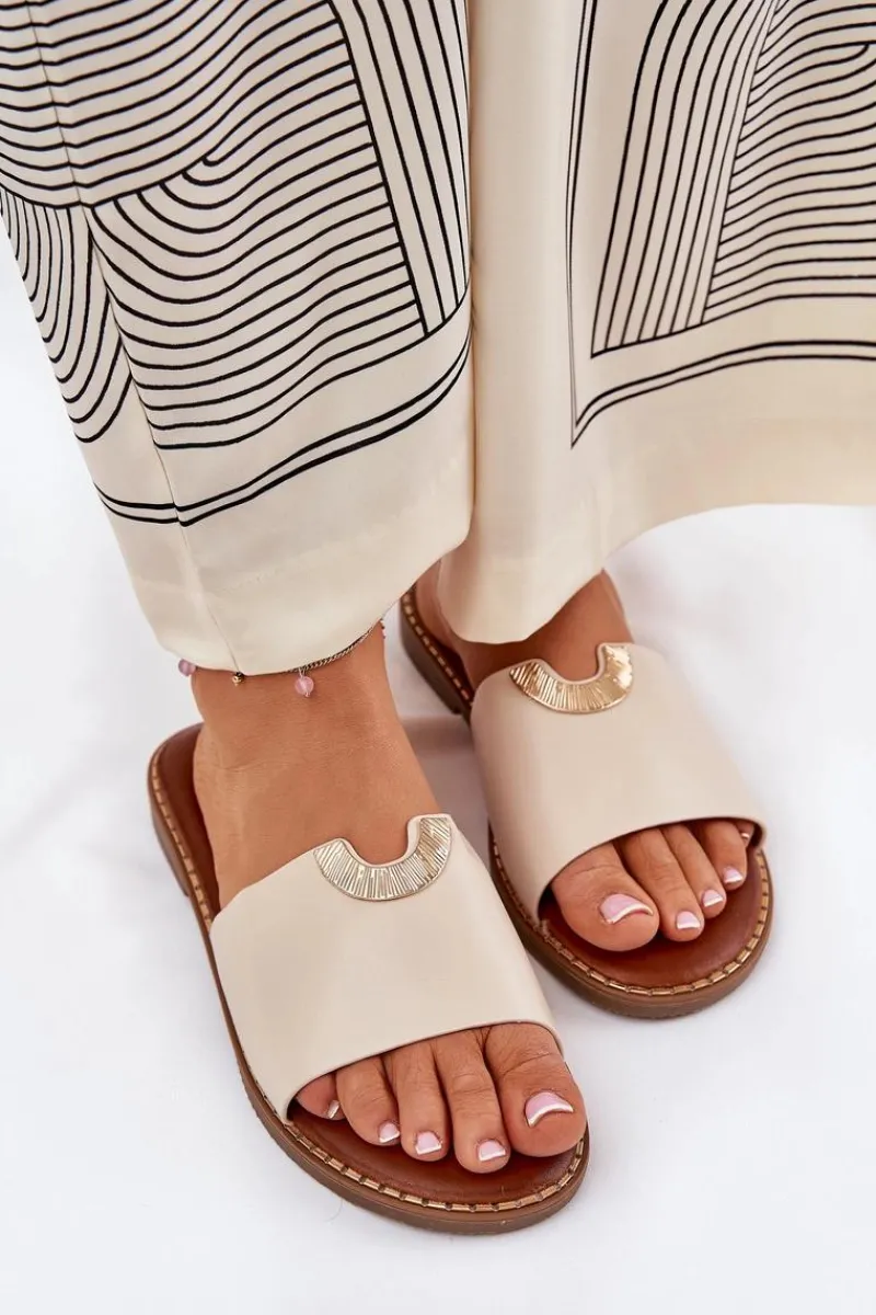 Klapki damskie na płaskim obcasie to idealny wybór na letnie dni. Wykonane z ekologicznej skóry. Klasyczny fason wzbogacony został o ozdobne detale, które nadają im eleganckiego charakteru. Doskonałe zarówno na co dzień, jak i na letnie spacery. Świetnie komponują się z sukienkami, spódnicami oraz spodniami, dodając stylowego akcentu każdej stylizacji. Przy wyborze rozmiaru prosimy sugerować się tabelą rozmiarów.