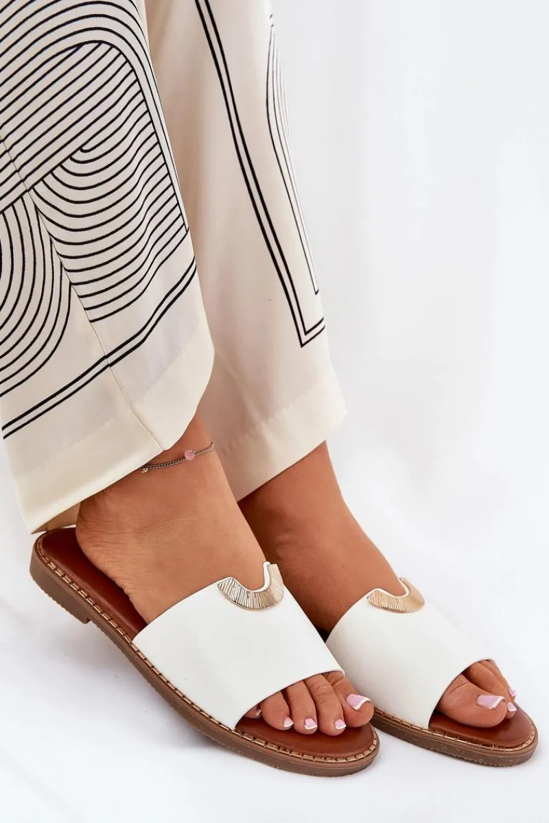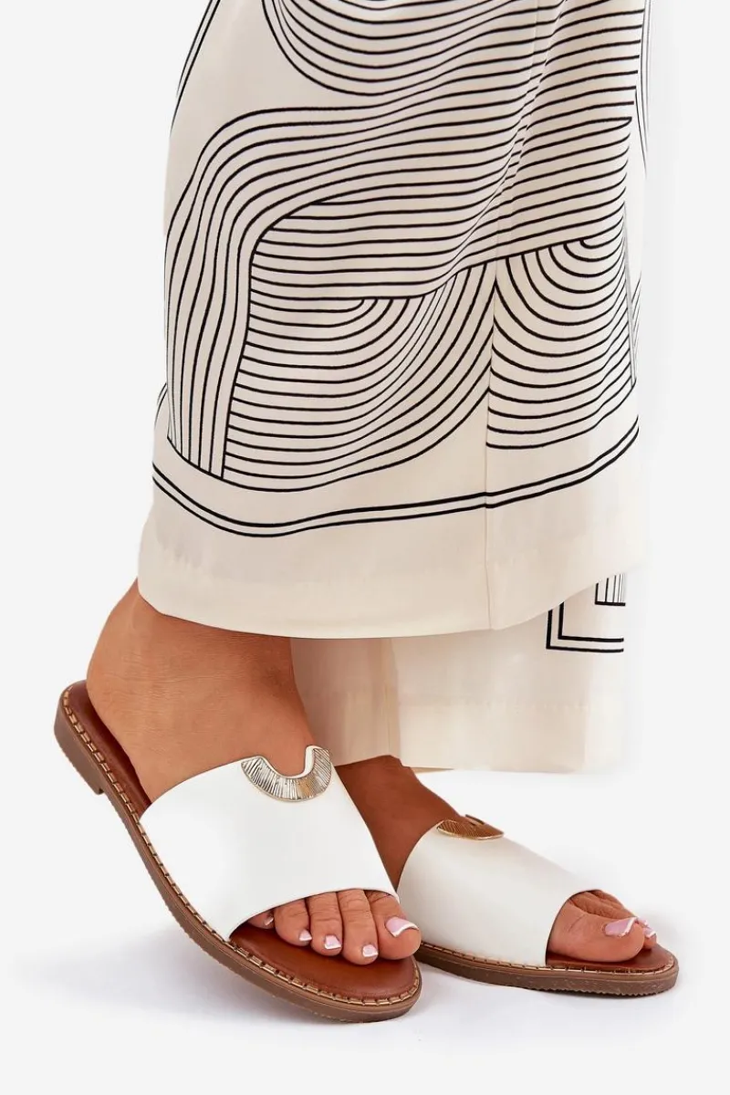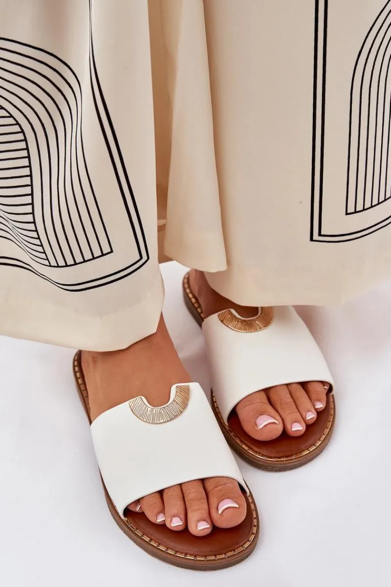 Klapki Damskie Klasyczne>Boto Klapki Damskie Eko Skórzane Z Ozdobnymi Detalami Białe Mevith