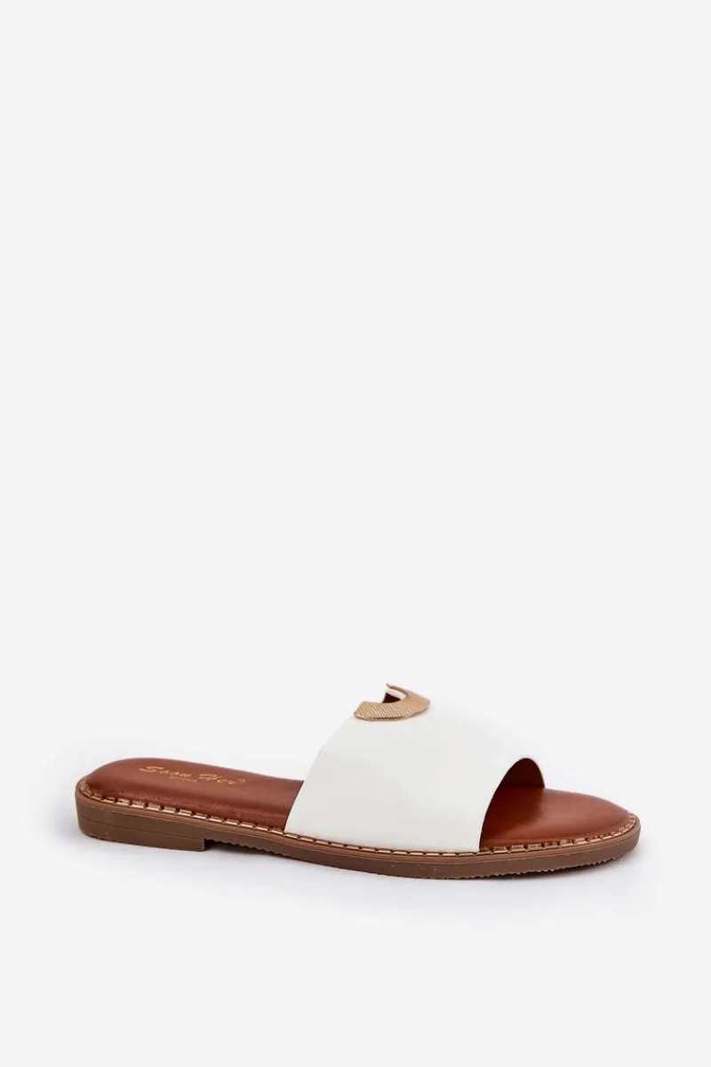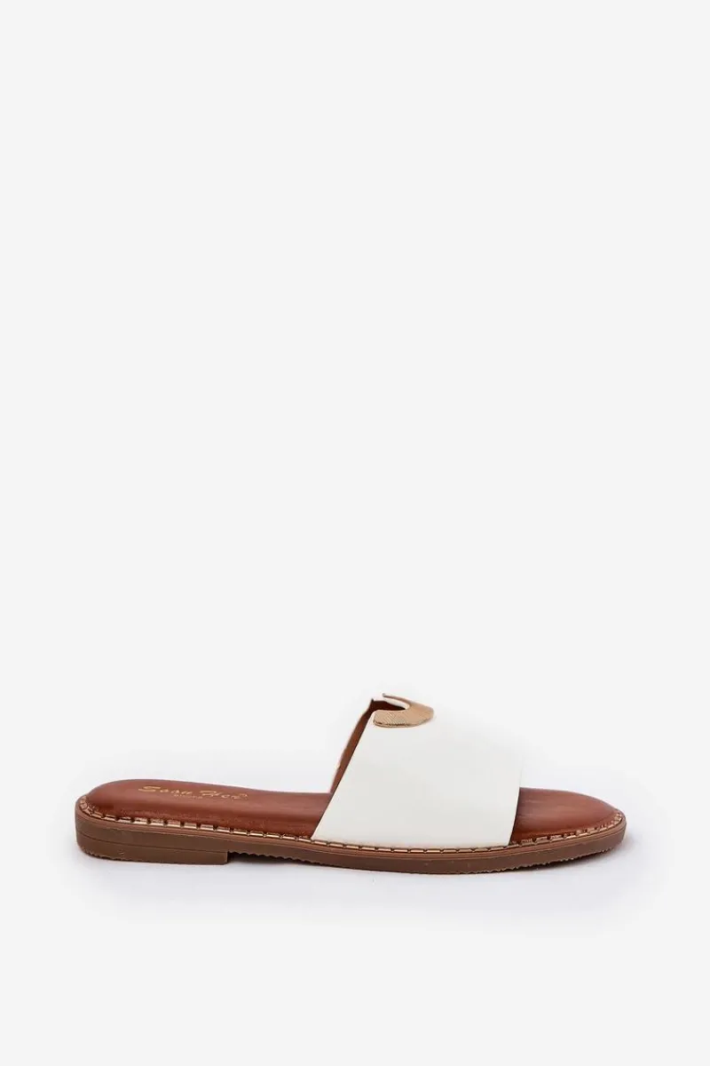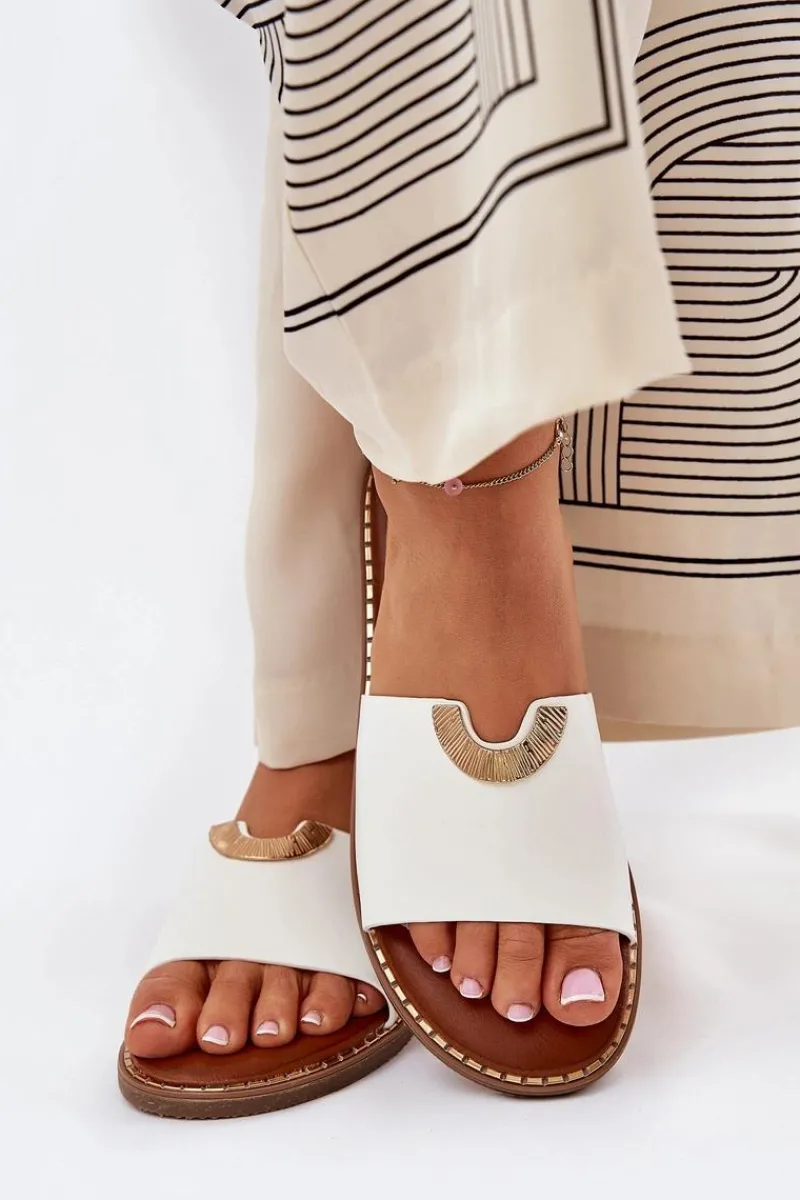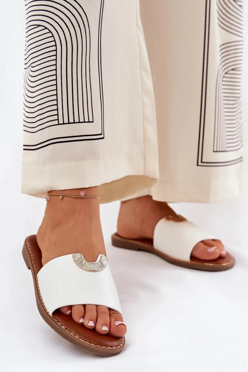 Klapki Damskie Klasyczne>Boto Klapki Damskie Eko Skórzane Z Ozdobnymi Detalami Białe Mevith