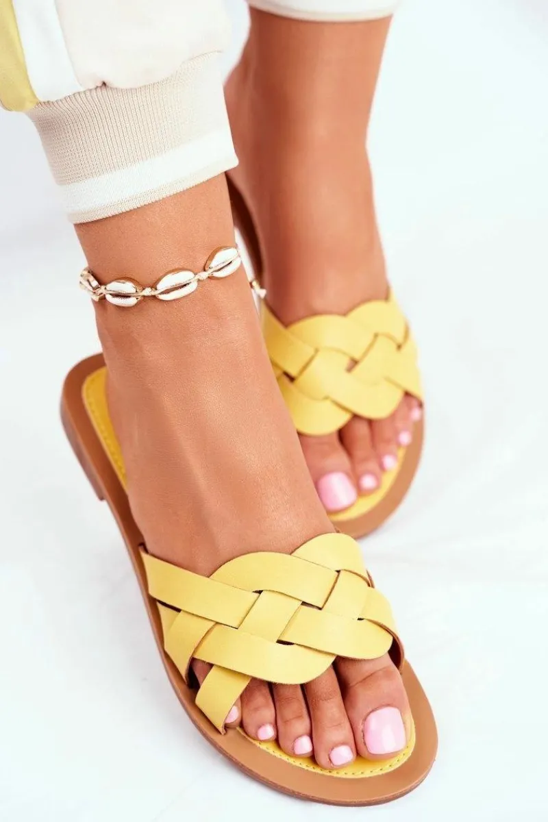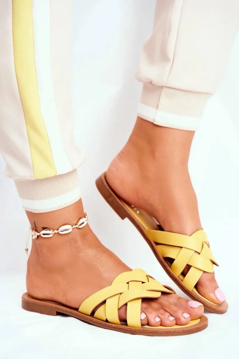 Klapki Damskie Klasyczne>Boto Klapki Damskie Eleganckie Żółte Mariah