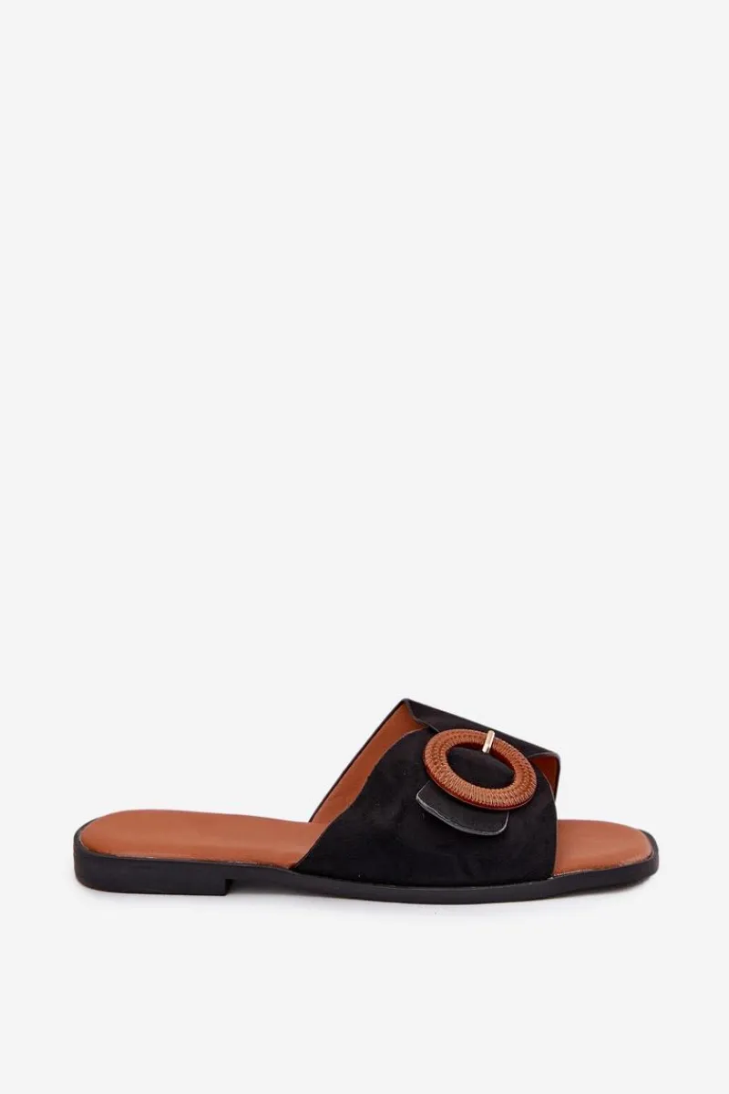Klapki damskie na płaskim obcasie, wykonane z eko zamszu, to elegancka i komfortowa propozycja na ciepłe dni. Model ten wyróżnia się ozdobną klamrą, która dodaje im wyjątkowego charakteru. Idealne na co dzień, łączą prostotę z modnym akcentem, doskonale komponując się z letnimi stylizacjami. Przy wyborze rozmiaru prosimy sugerować się tabelą rozmiarów.