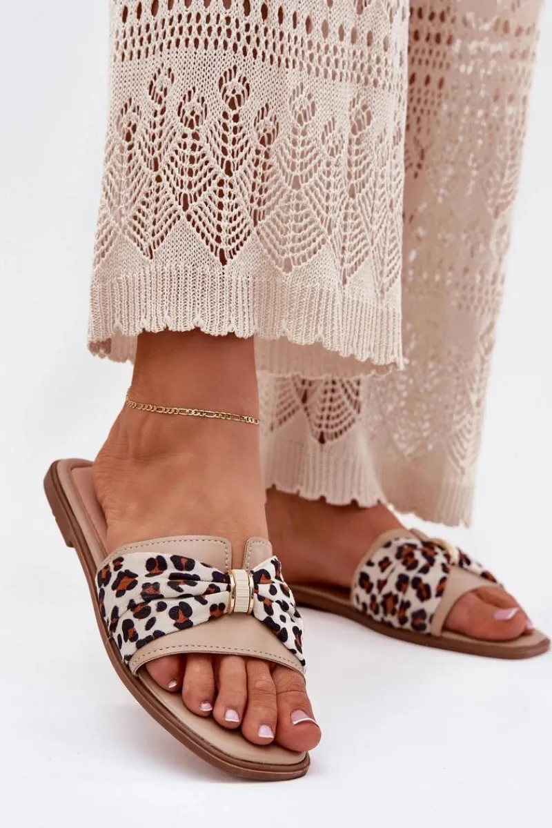 Klasyczne klapki damskie na płaskim obcasie, ozdobione uroczą kokardką z przodu, która dodaje im subtelnego uroku. Idealne do letnich sukienek, spódnic i szortów, doskonale uzupełnią każdą codzienną stylizację, zapewniając komfort i lekkość przez cały dzień. Przy wyborze rozmiaru prosimy sugerować się tabelą rozmiarów.