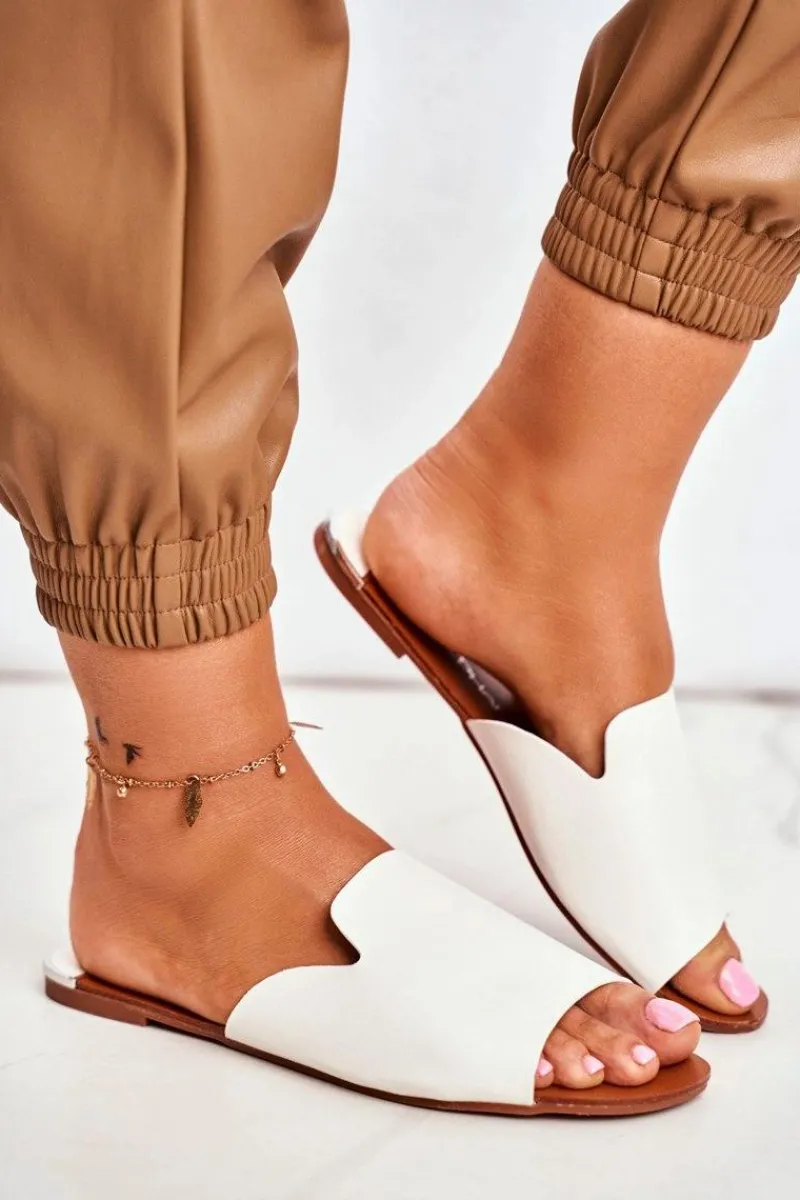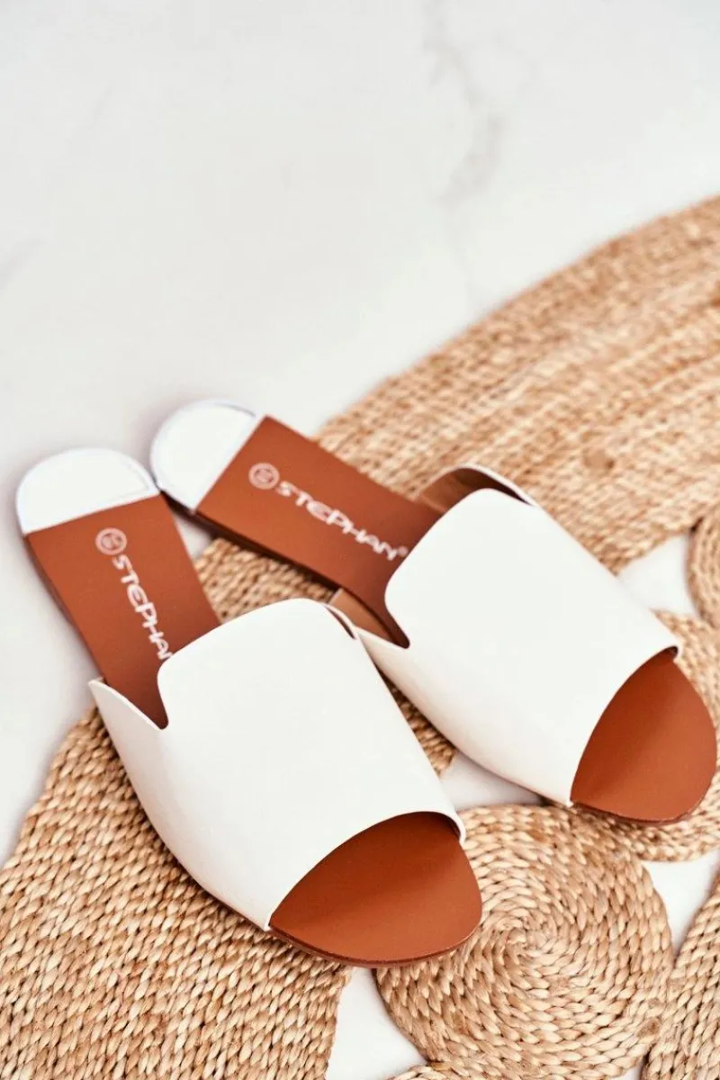 Klapki Damskie Klasyczne>Boto Klapki Damskie Płaskie Białe Mimios