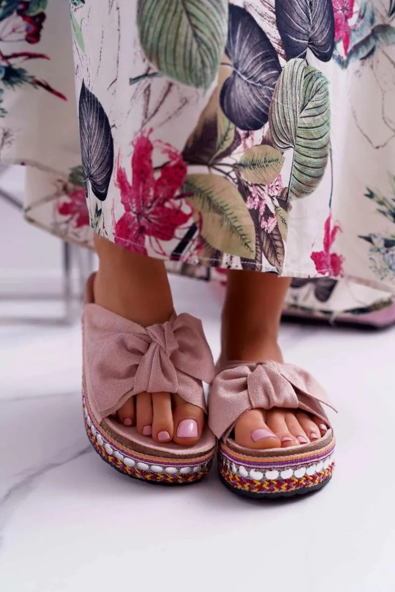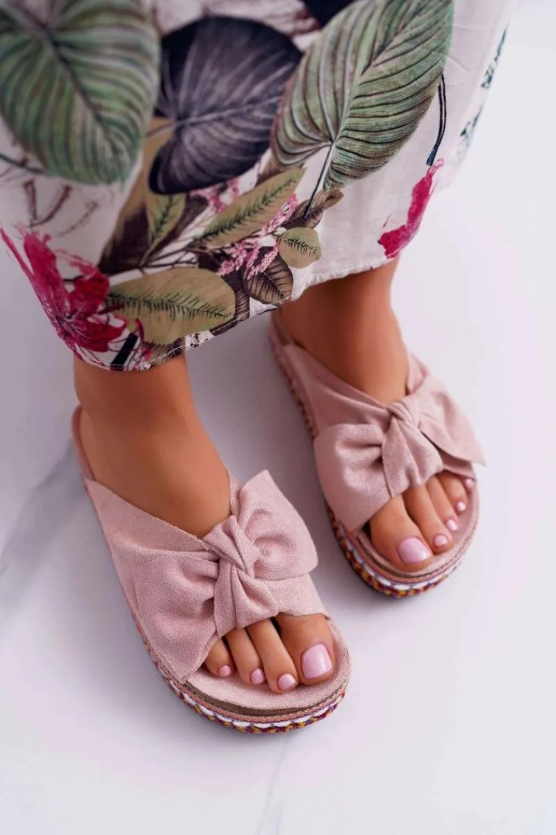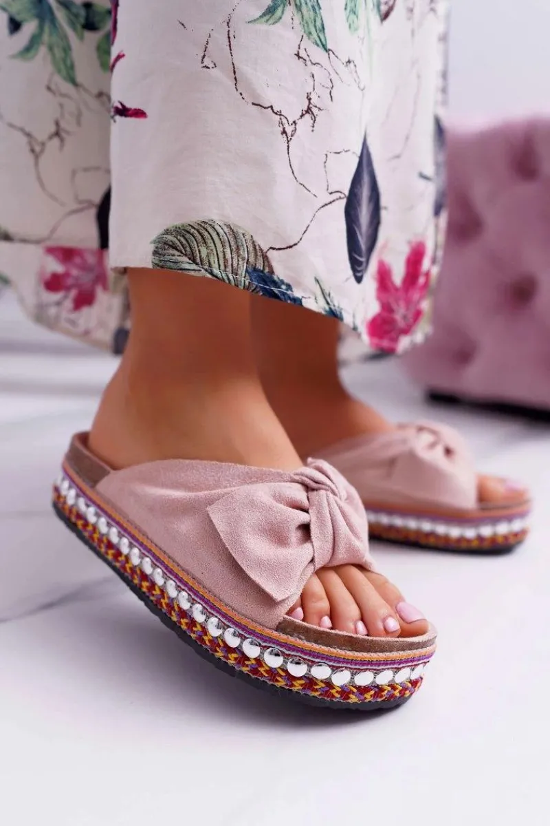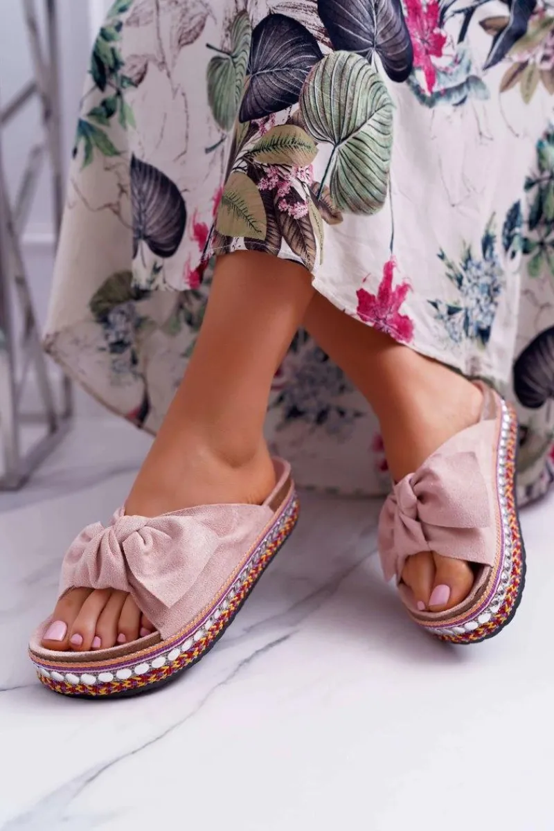 Klapki Damskie Klasyczne>Boto Klapki Damskie Z Kokardami Gruba Podeszwa Różowe Milady