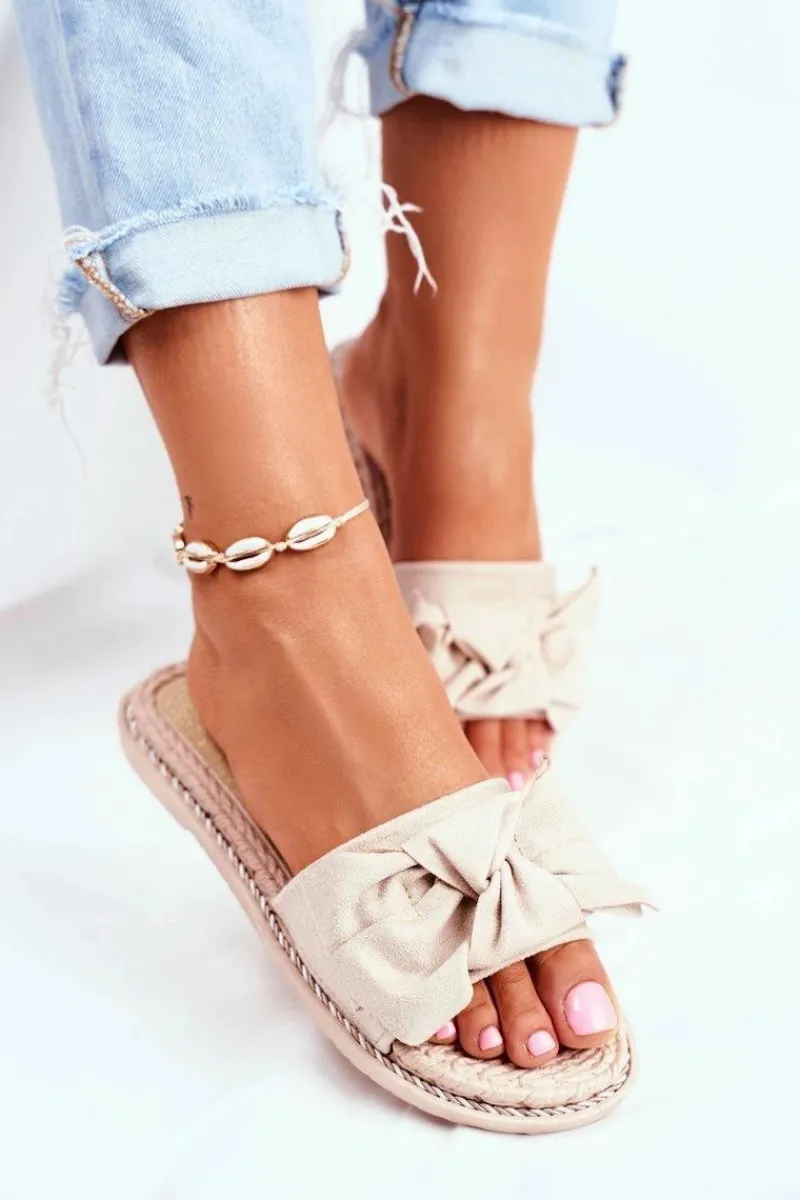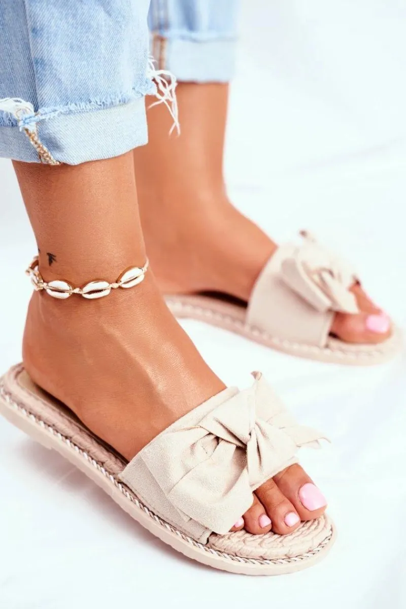 Klapki Damskie Klasyczne>Boto Klapki Damskie Z Kokardką Beżowe Happiness