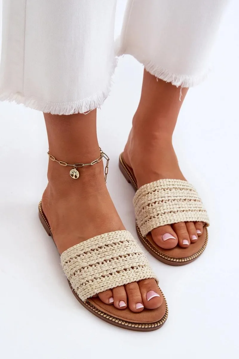 Klasyczne klapki damskie na płaskim obcasie to niezawodny wybór na letnie dni. Prosty design sprawia, że doskonale pasują do wielu letnich stylizacji. Z przodu szeroki pasek z plecionką. Te klapki są doskonałym wyborem dla kobiet ceniących zarówno styl, jak i komfort. Przy wyborze rozmiaru prosimy sugerować się tabelą rozmiarów.