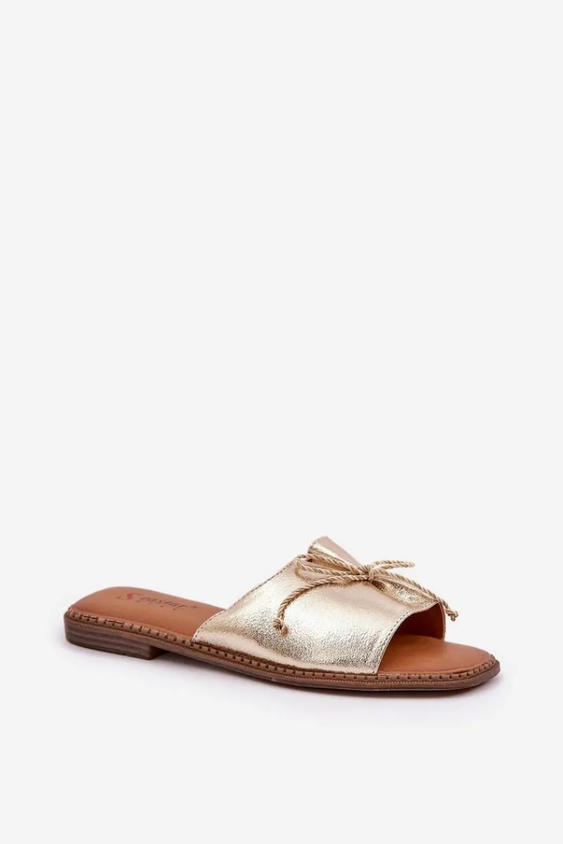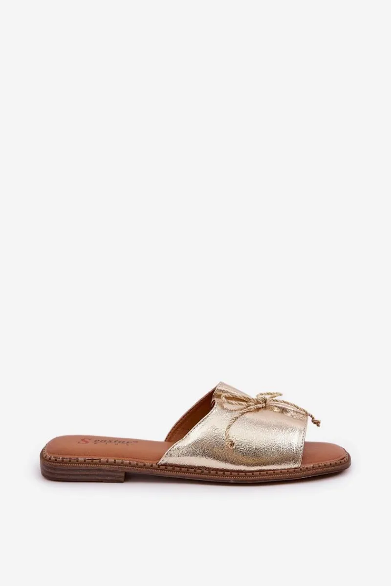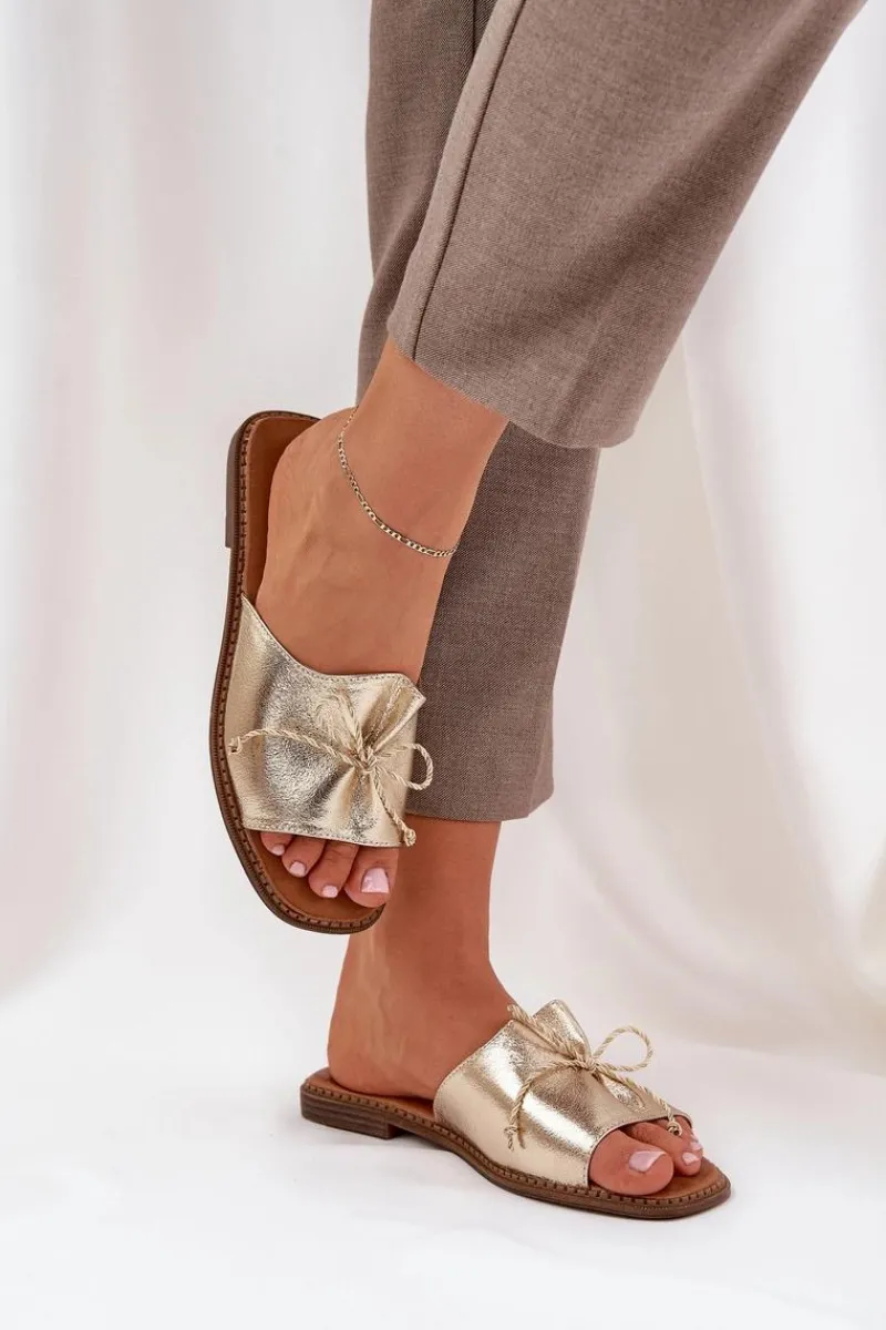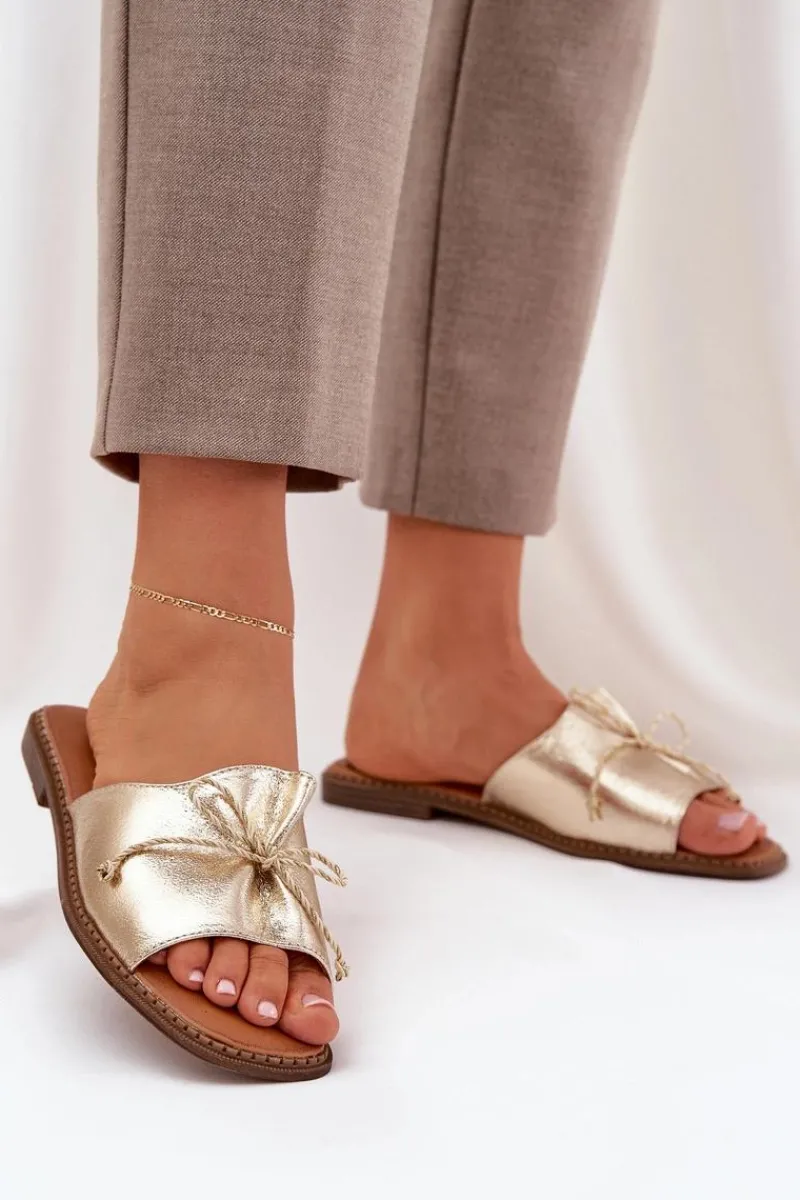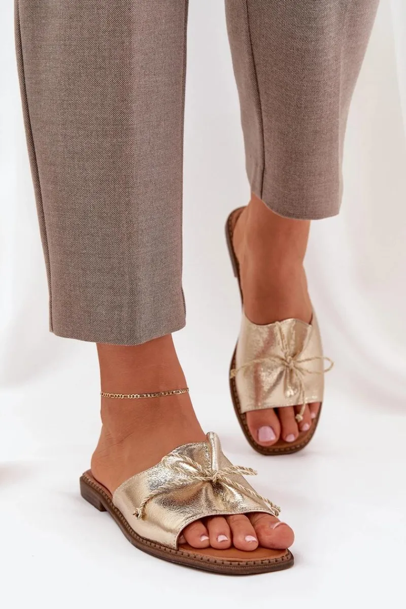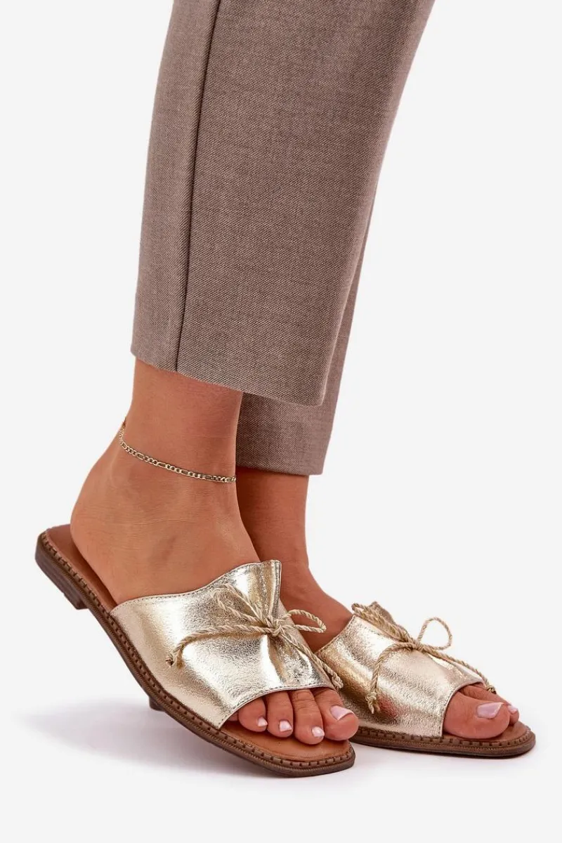 Klapki Damskie Klasyczne>Boto Klapki Na Płaskiej Podeszwie Z Ozdobną Kokardką Złote Deonelis