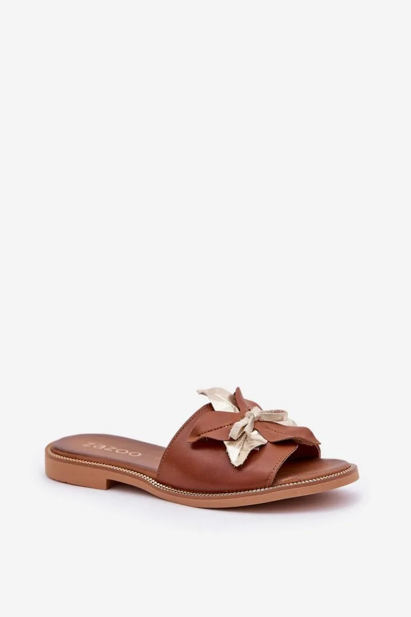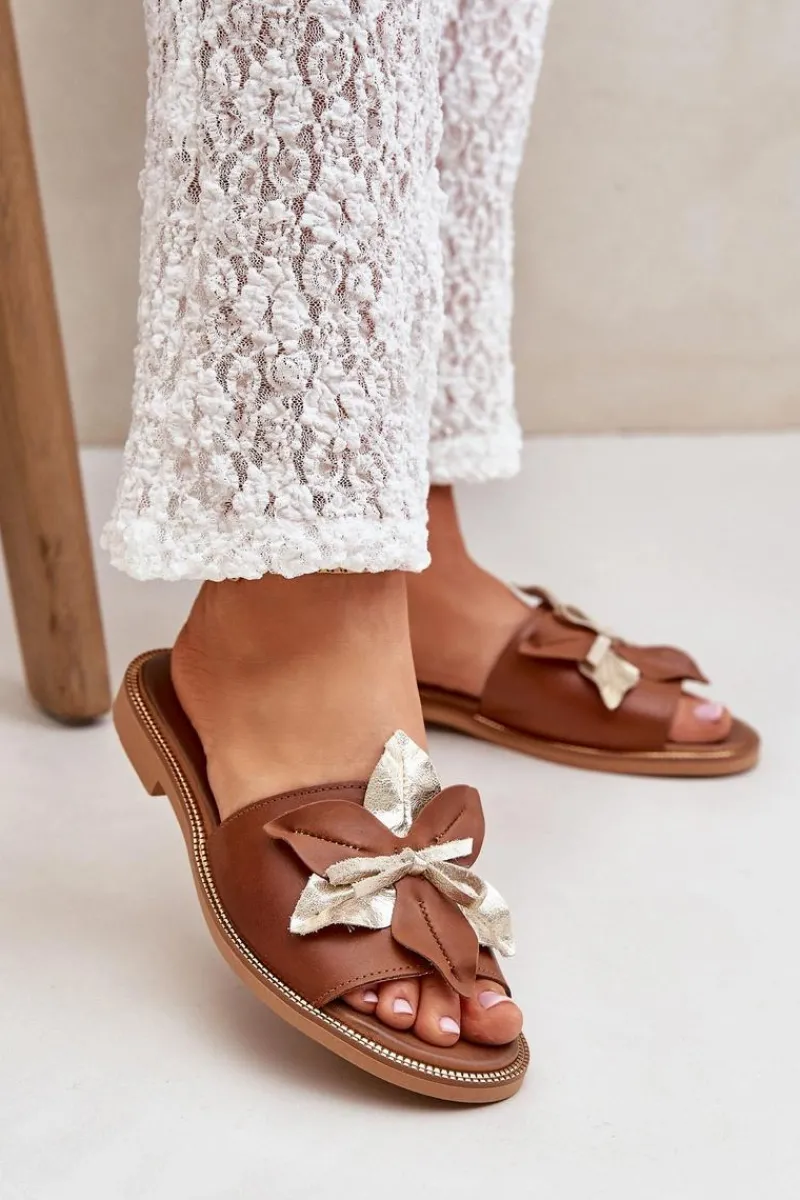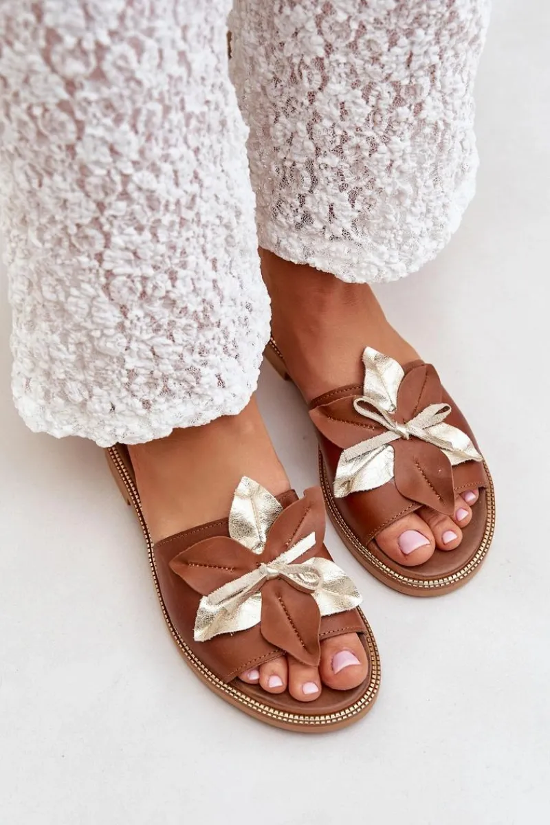 Damskie klapki ze skóry naturalnej stanowią znakomity wybór dla kobiet poszukujących połączenia elegancji z komfortem. Płaski obcas, zapewnia wygodę użytkowania przez cały dzień. Ozdoba nadaje im niepowtarzalny urok i elegancję. Model ten to idealny wybór zarówno do eleganckich stylizacji biurowych, jak i na codzienne wyjścia! Przy wyborze rozmiaru prosimy sugerować się tabelą rozmiarów.