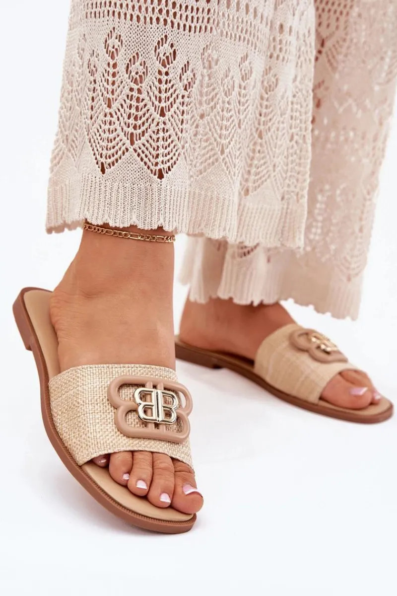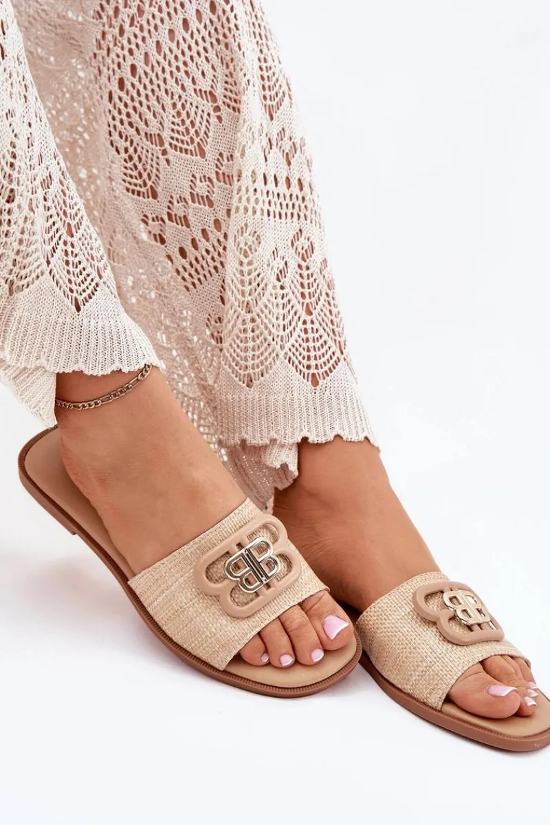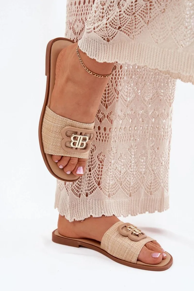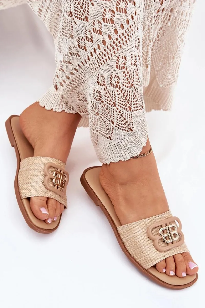 Klapki damskie na płaskim obcasie to wygodna i stylowa opcja na ciepłe dni. Na pasku znajduje się subtelny ozdobny detal, który nadaje im eleganckiego charakteru. Miękka eko skórzana wkładka zapewnia komfort przez cały dzień. Doskonałe do sukienek oraz spodni materiałowych, te klapki łączą funkcjonalność z modnym wyglądem, idealne na codzienne wyjścia. Przy wyborze rozmiaru prosimy sugerować się tabelą rozmiarów.