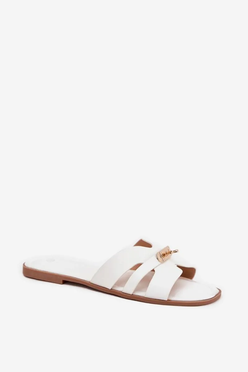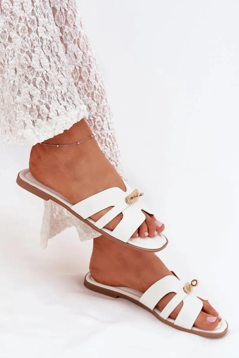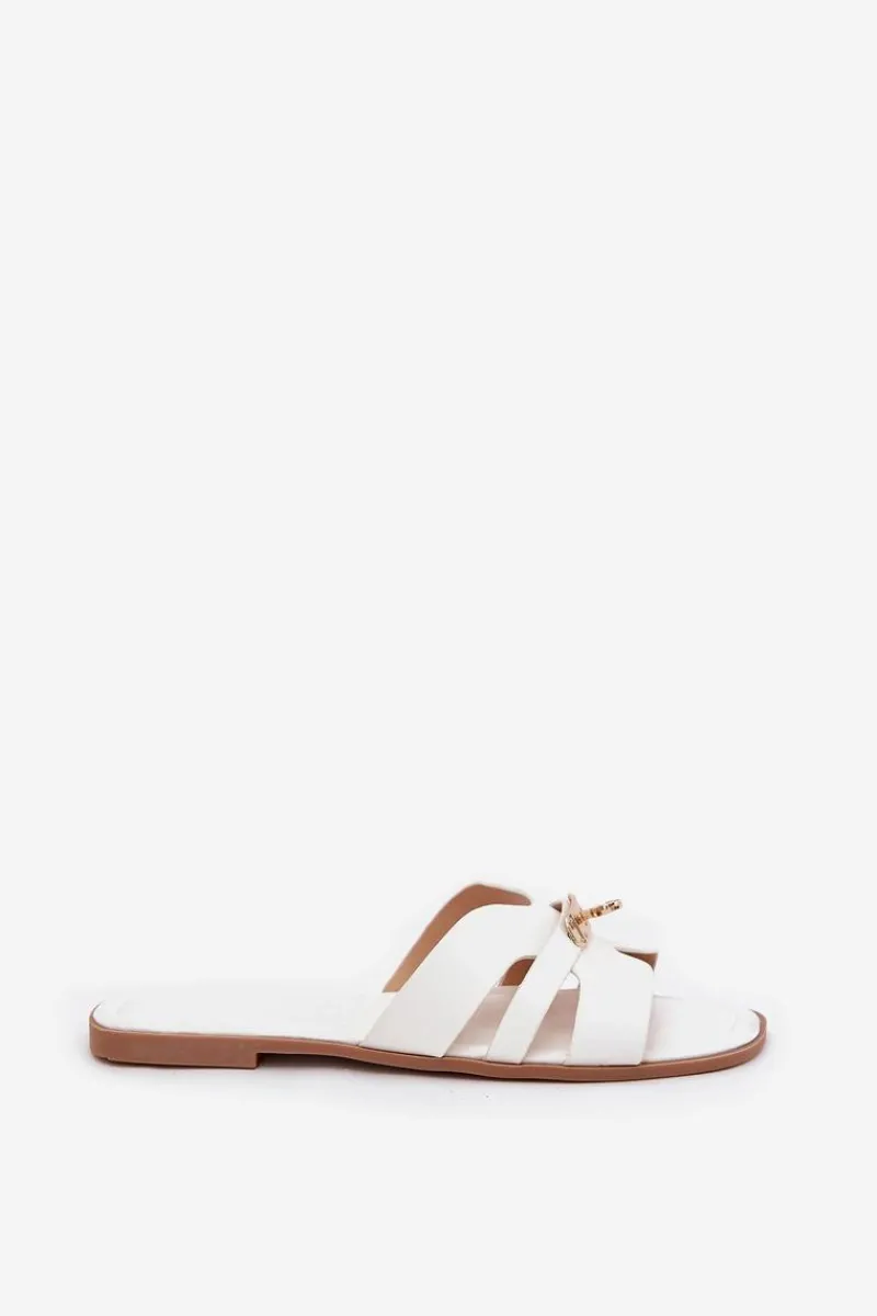 Klapki Damskie Klasyczne>Boto Płaskie Klapki Damskie Z Paseczkiem I Złotym Detalem Białe Kerenza Biały