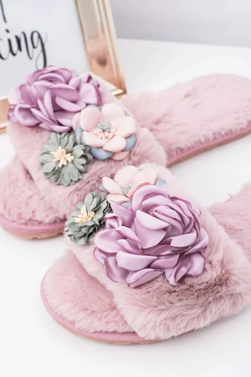 Klapki Damskie Klasyczne>Boto Różowe Klapki Damskie Z Kwiatkami Lu Boo Bouquet