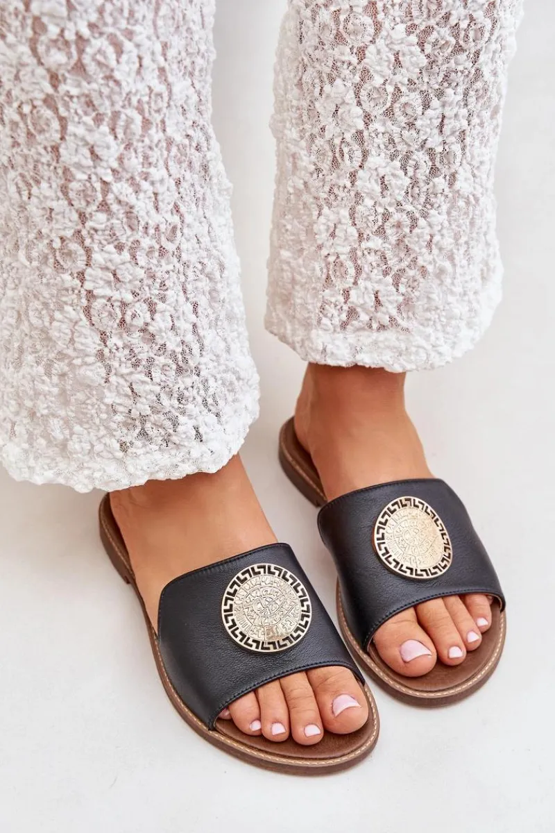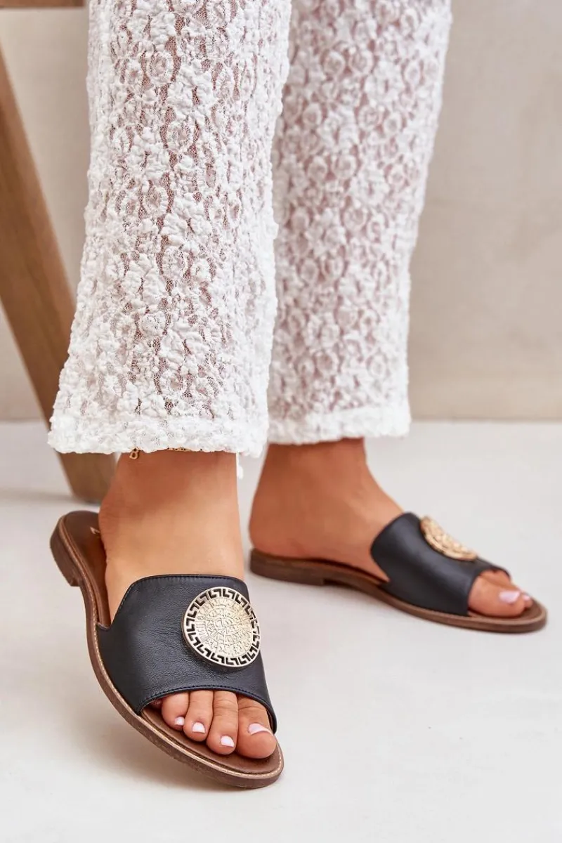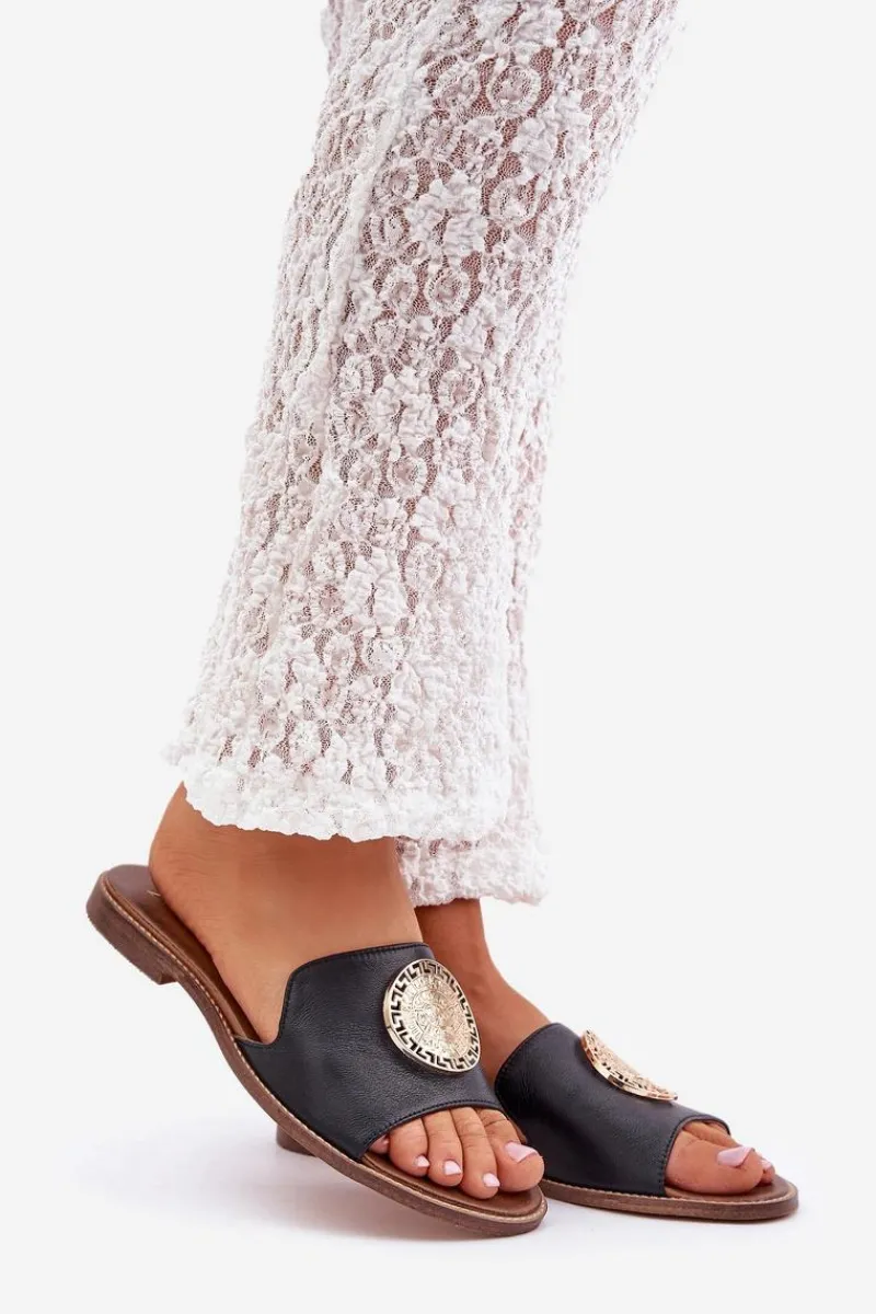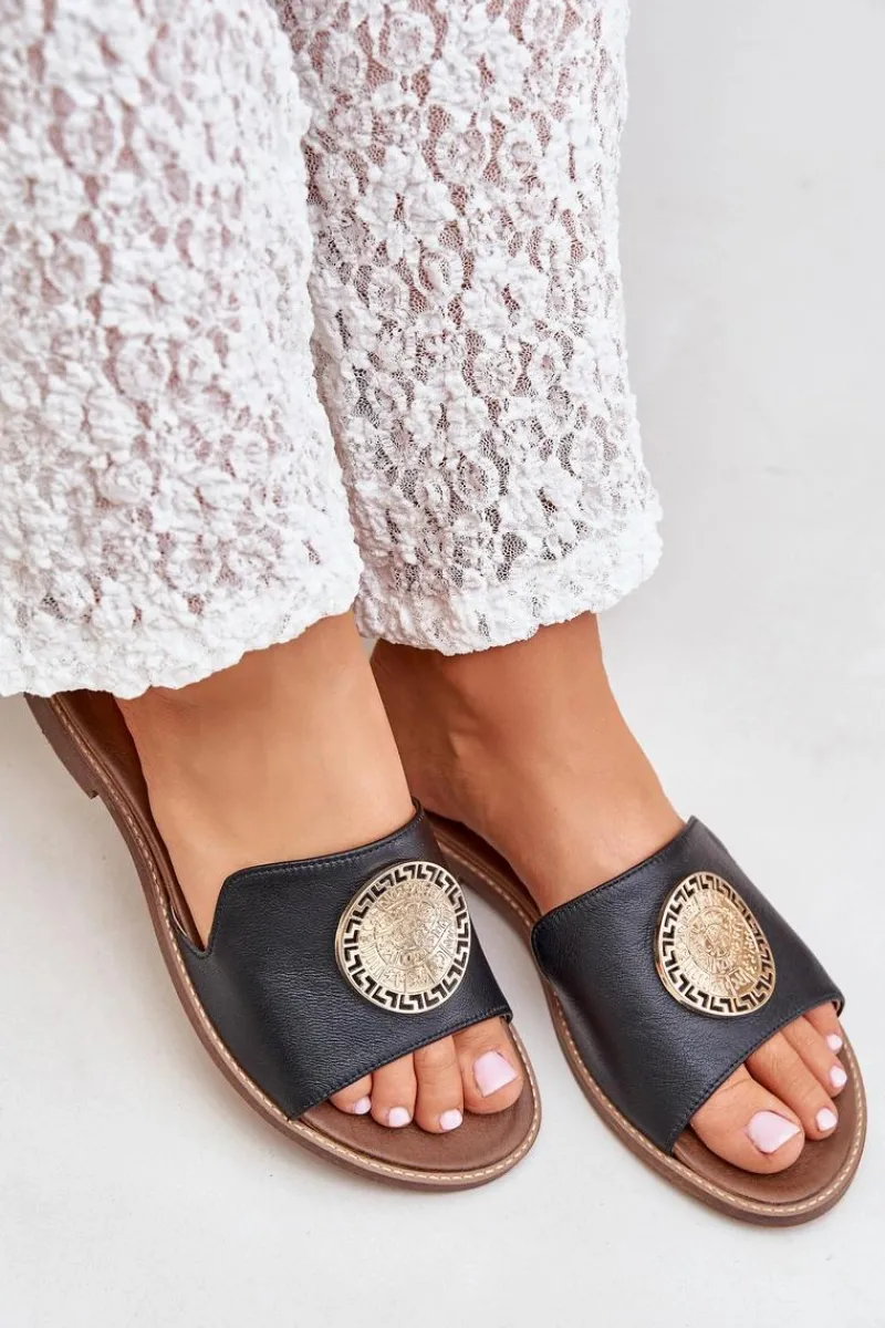Damskie klapki wykonane z wysokiej jakości skóry naturalnej to połączenie elegancji i wygody. Osadzone na płaskim obcasie, zapewniają komfort noszenia przez cały dzień. Subtelna ozdoba na cholewce nadaje im wyjątkowego uroku i klasy, dzięki czemu świetnie sprawdzą się zarówno w casualowych, jak i bardziej eleganckich stylizacjach. Idealne na ciepłe dni, stanowią niezastąpiony dodatek do letnich sukienek, spodni czy spódnic. Przy wyborze rozmiaru prosimy sugerować się tabelą rozmiarów.