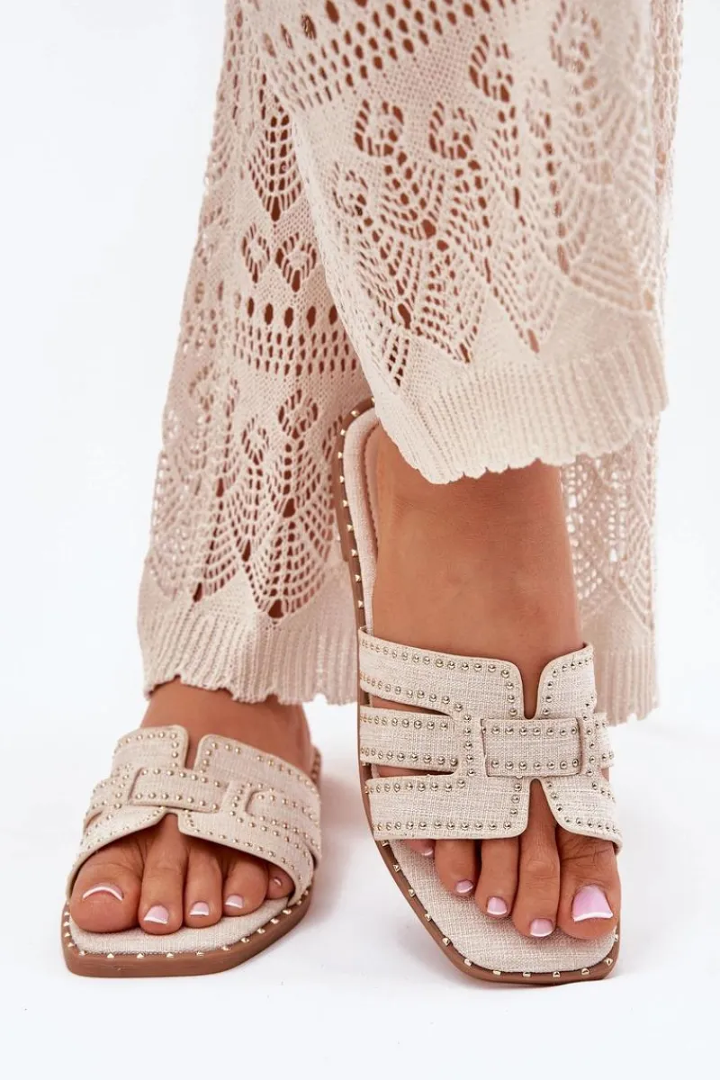 Zdobione klapki damskie wykonane z materiału tekstylnego to elegancka i wygodna propozycja na ciepłe dni. Osadzone na płaskim obcasie, zapewniają komfort przez cały dzień. Subtelne zdobienia przyciągają wzrok, dodając butom wyjątkowego charakteru. Idealne do codziennych stylizacji, łączą funkcjonalność z modnym wyglądem. Przy wyborze rozmiaru prosimy sugerować się tabelą rozmiarów.