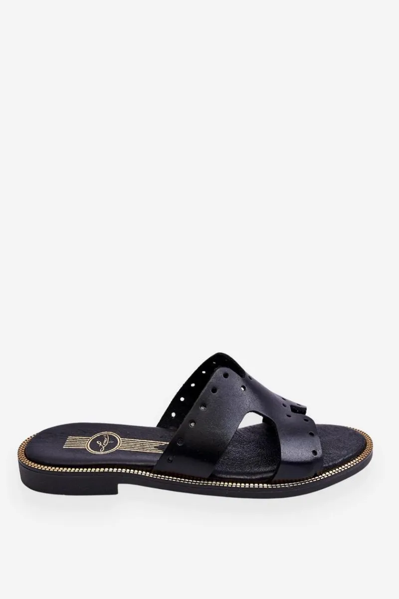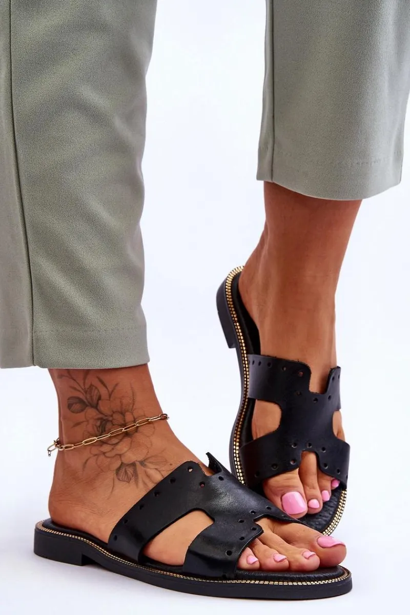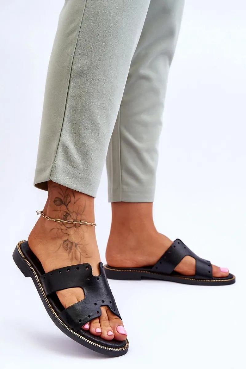 Klapki Damskie Klasyczne>Zazoo 40326 Damskie Klapki Z Ozdobnymi Wycięciami Czarne Czarny