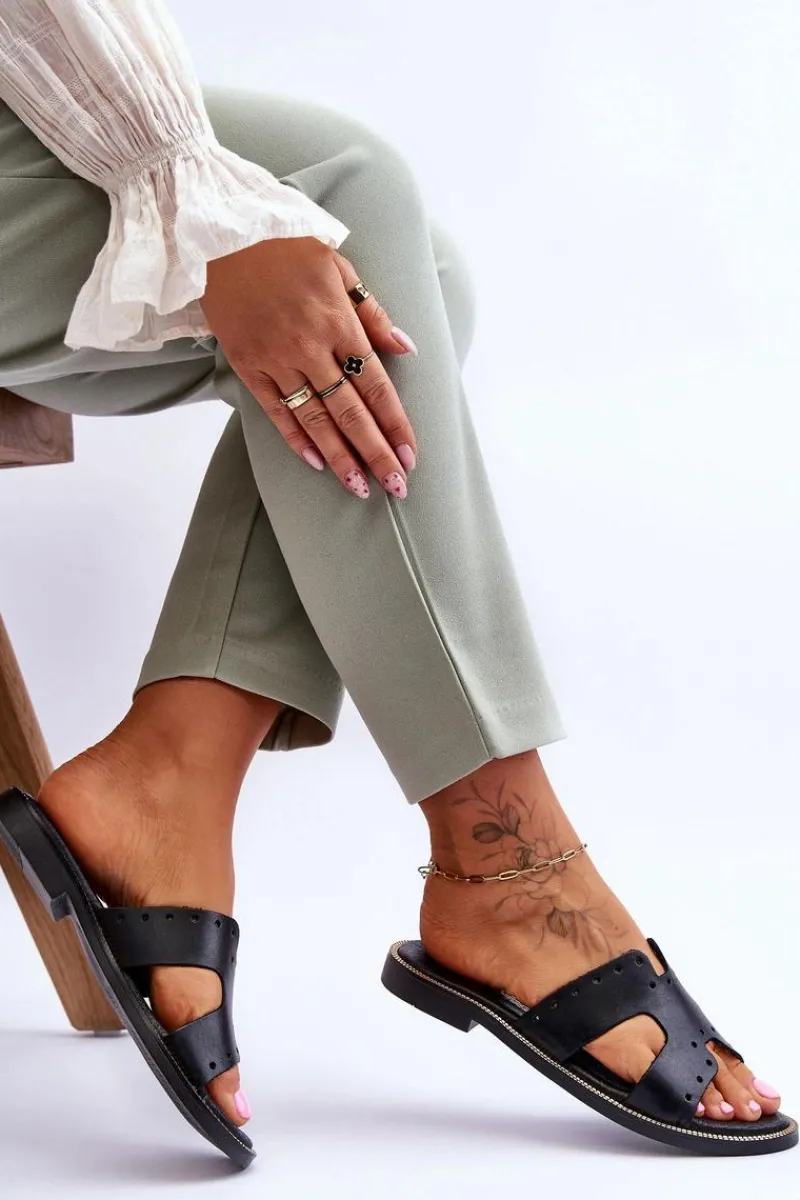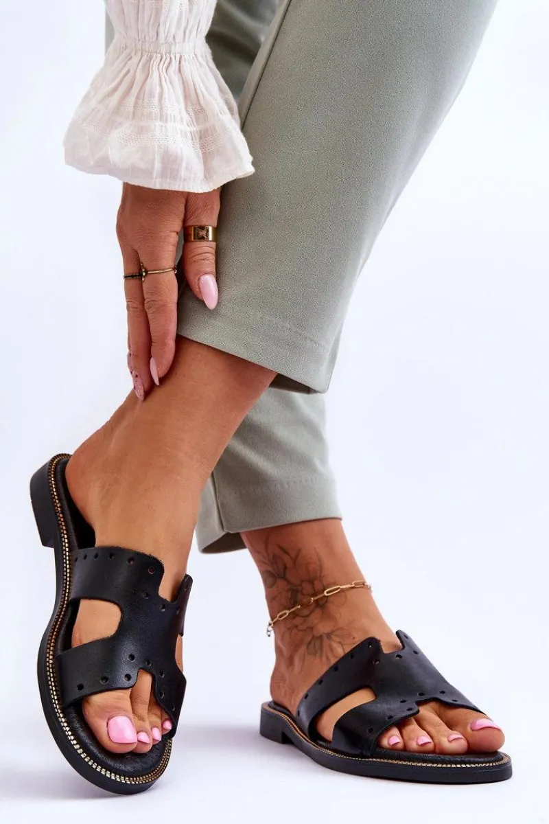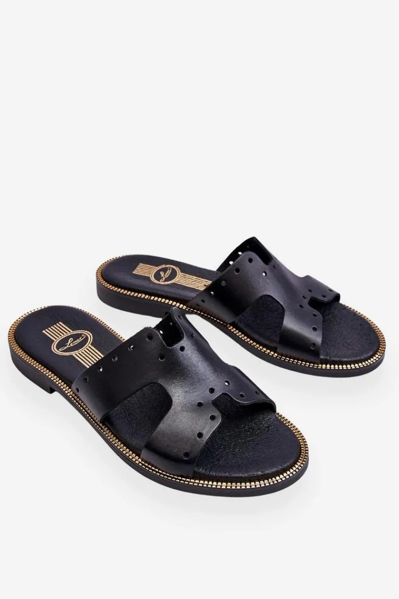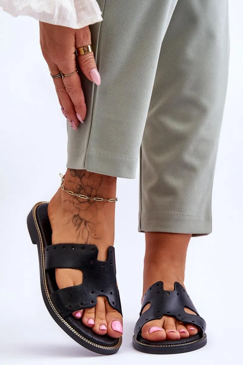 Klapki Damskie Klasyczne>Zazoo 40326 Damskie Klapki Z Ozdobnymi Wycięciami Czarne Czarny