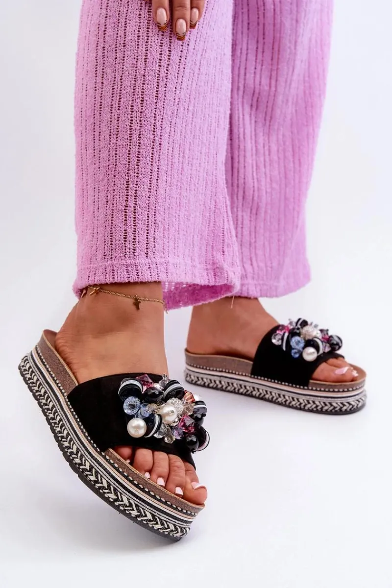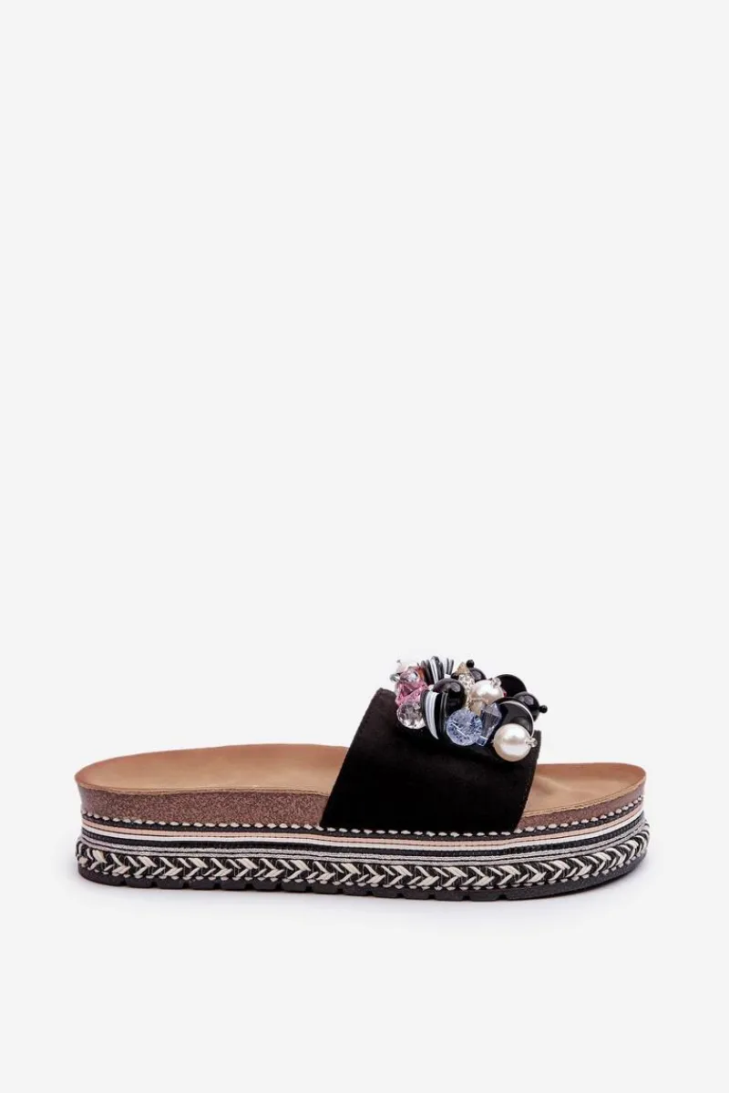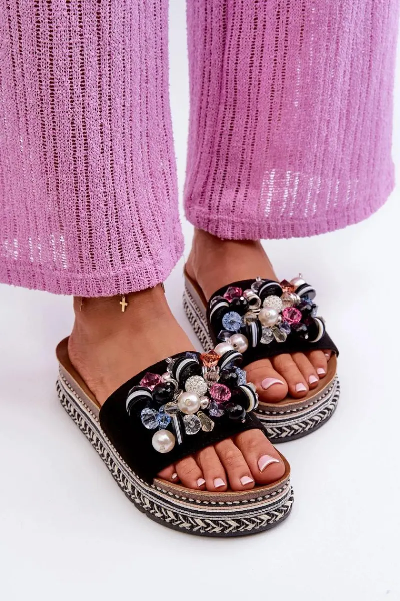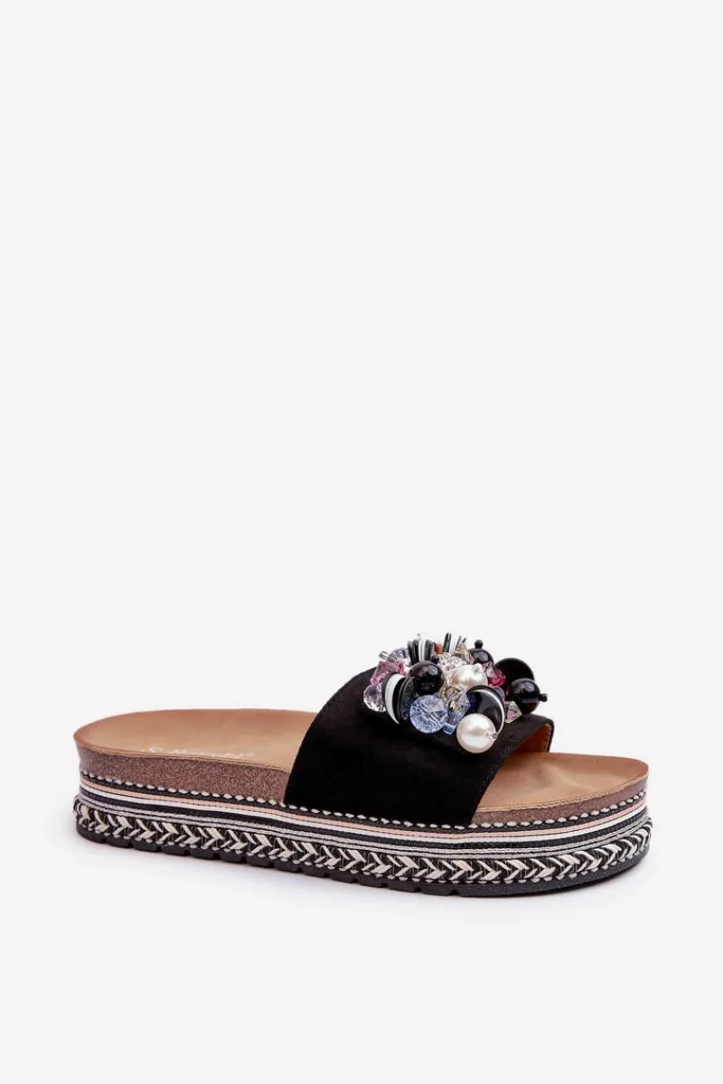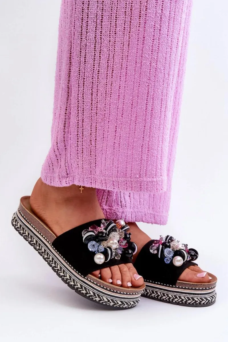 Stylowe klapki damskie od marki S.Barski. Osadzone na zdobionej platformie. Na pasku liczne ozdoby. Model ten posiada profilowaną wkładkę, która zapewni wygodę na każdym kroku. Idealne do letnich sukienek i spodni! Przy wyborze rozmiaru prosimy sugerować się tabelą rozmiarów.