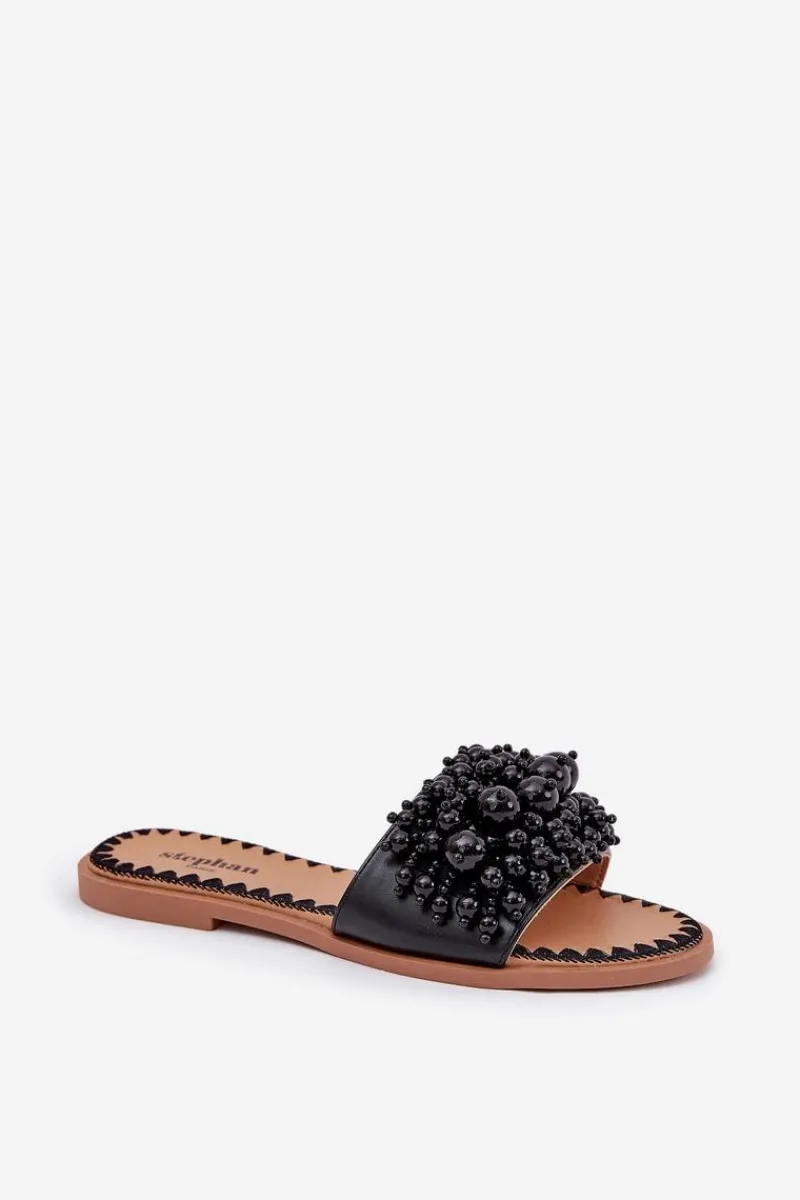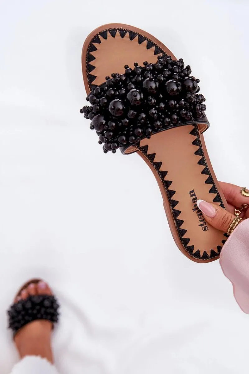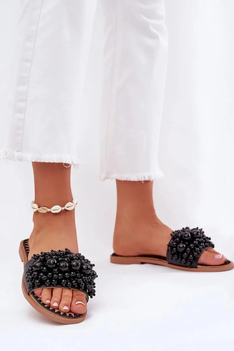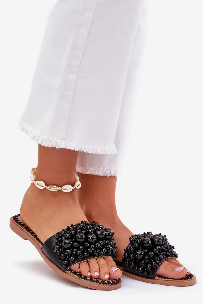 Damskie klapki na płaskim obcasie to doskonały wybór na upalne dni! Wykonane z eko skóry. Osadzone na płaskim obcasie. Model ten wyróżnia się ozdobnymi, licznymi koralikami na pasku. Doskonały wybór na letnie dni, zarówno do codziennych, jak i bardziej eleganckich stylizacji. Przy wyborze rozmiaru prosimy sugerować się tabelą rozmiarów.