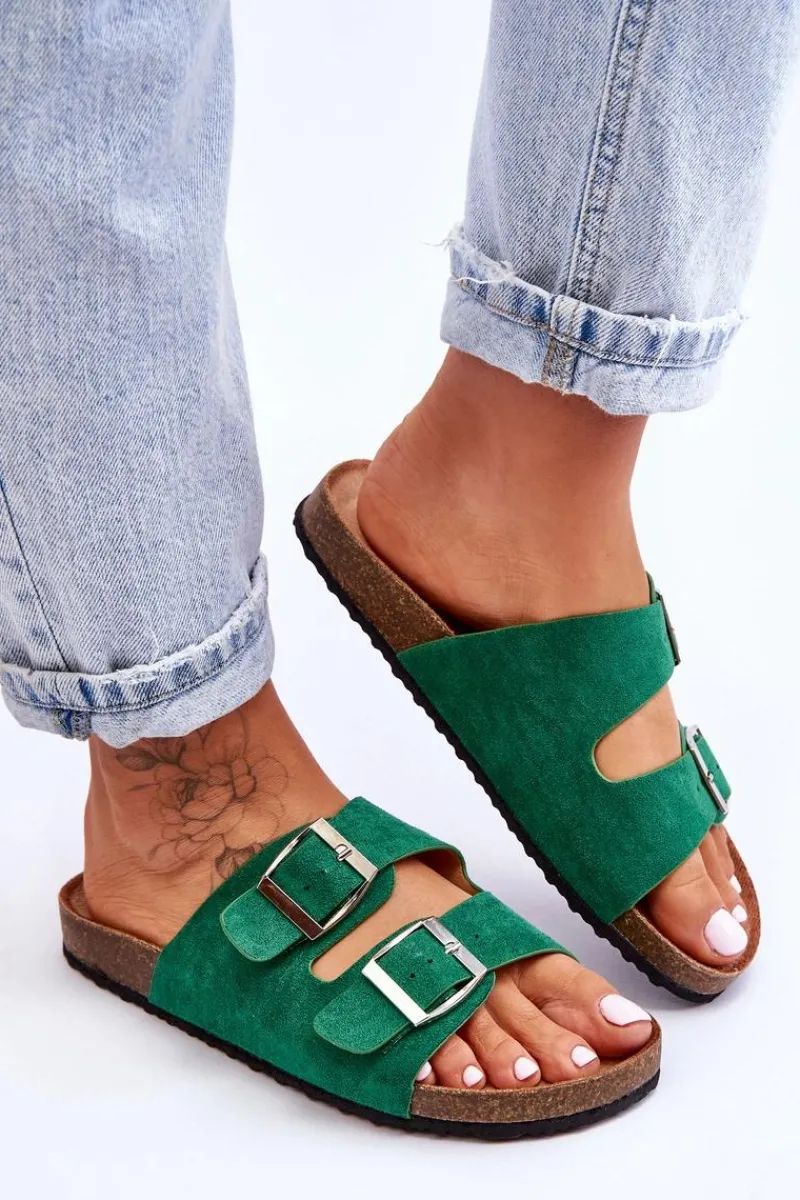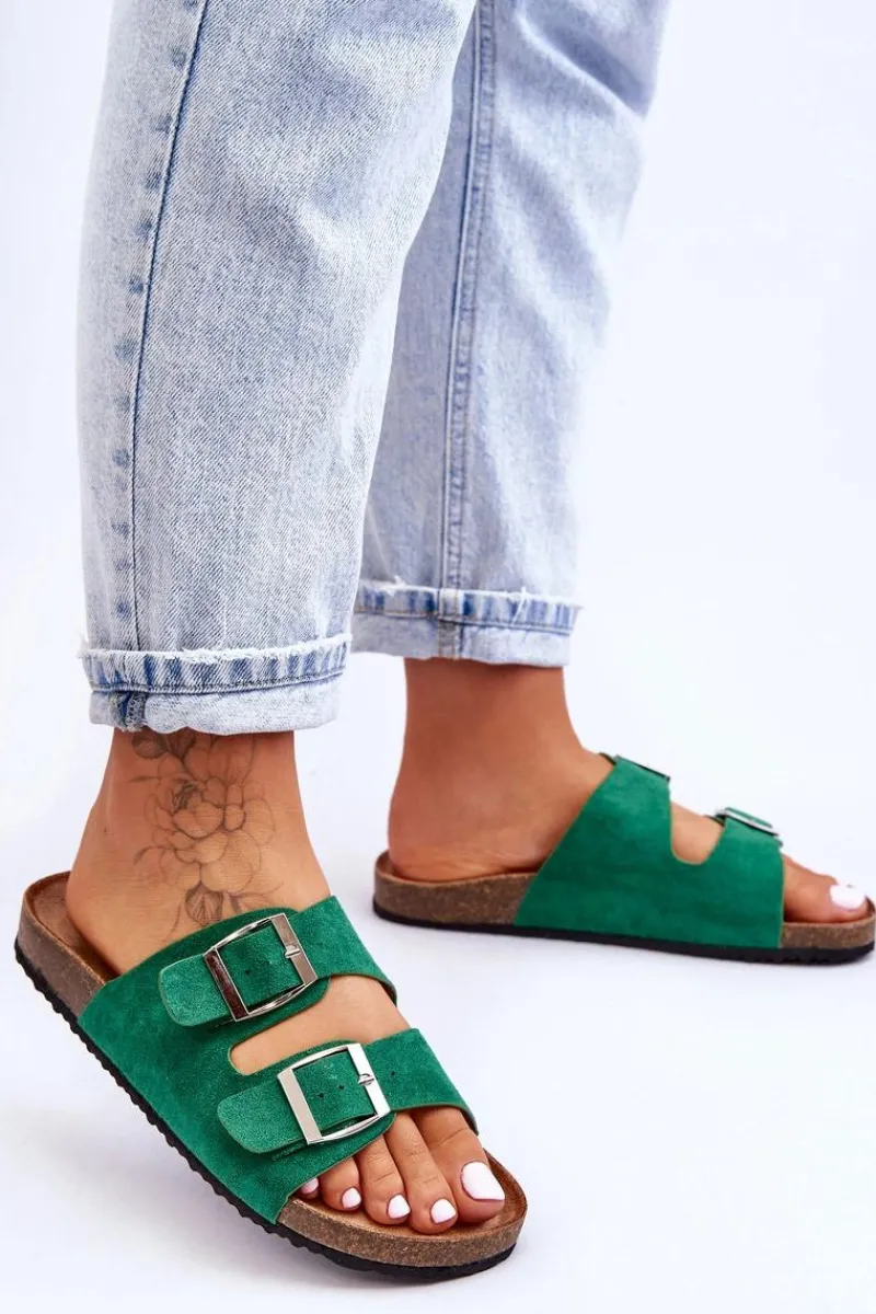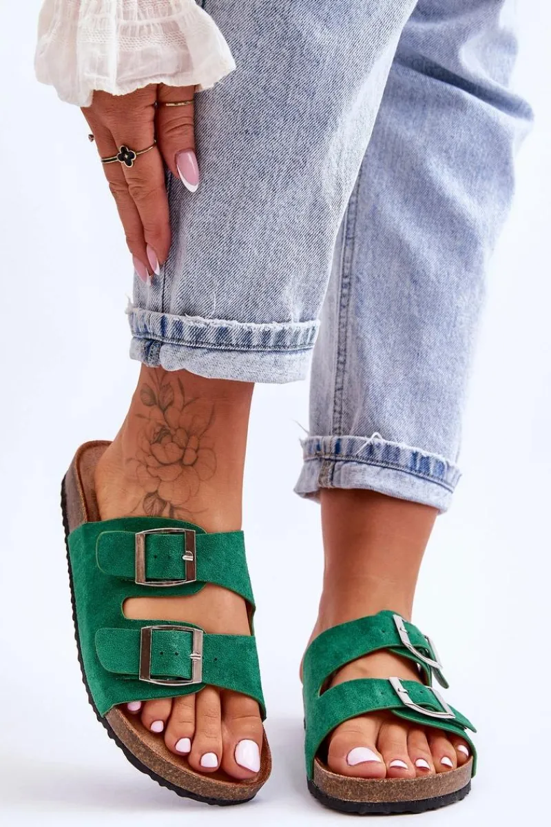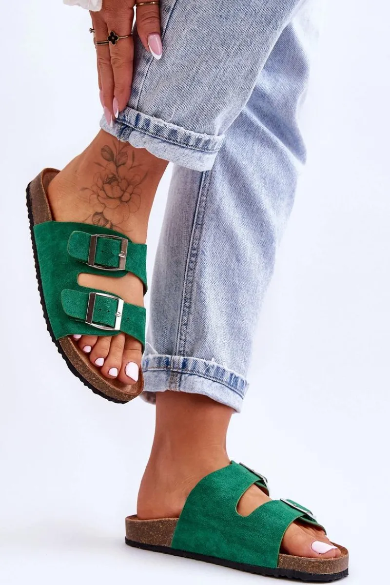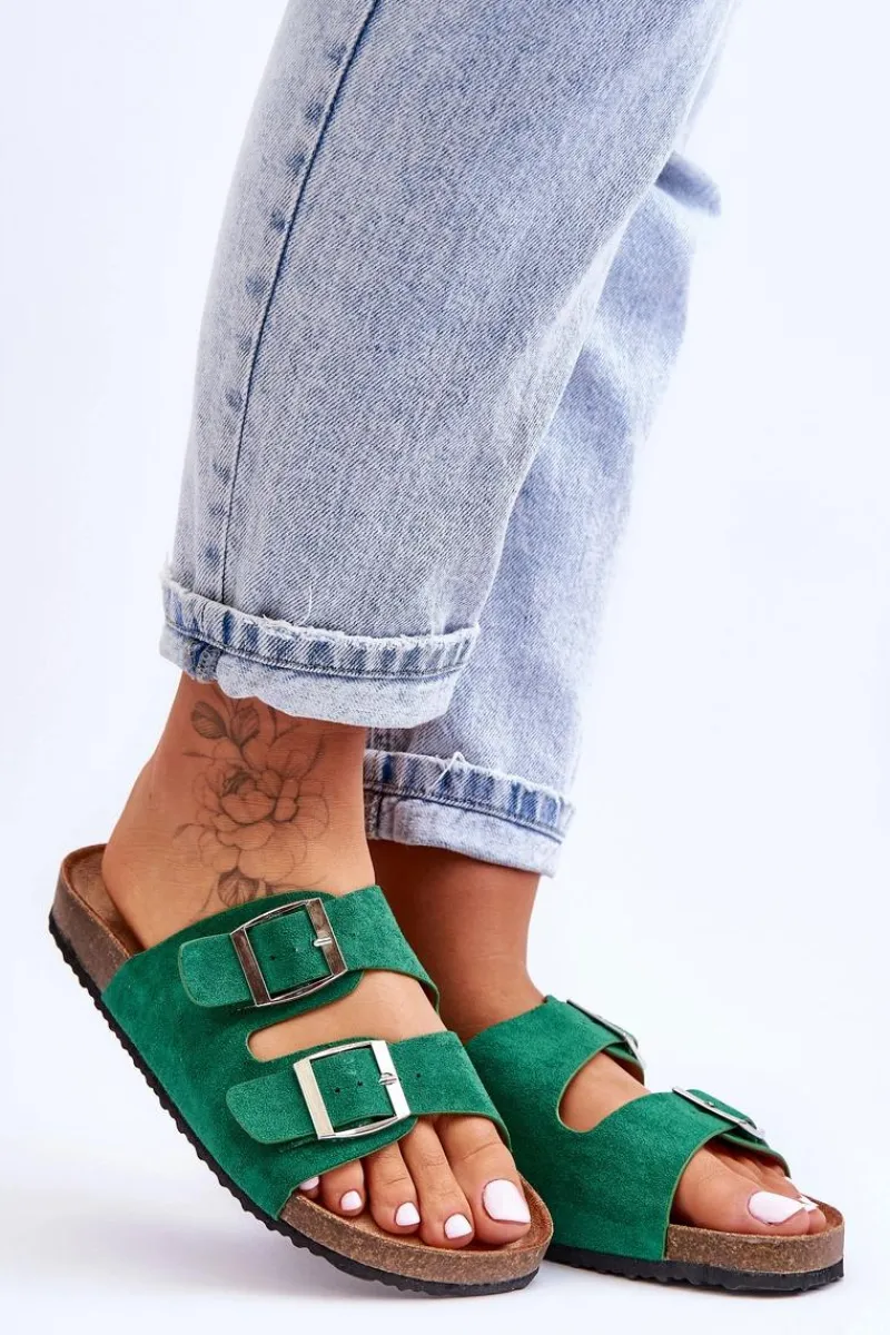 Klapki Korkowe|Klapki Damskie Klasyczne>Boto Damskie Klapki Wsuwane Zielone Destino