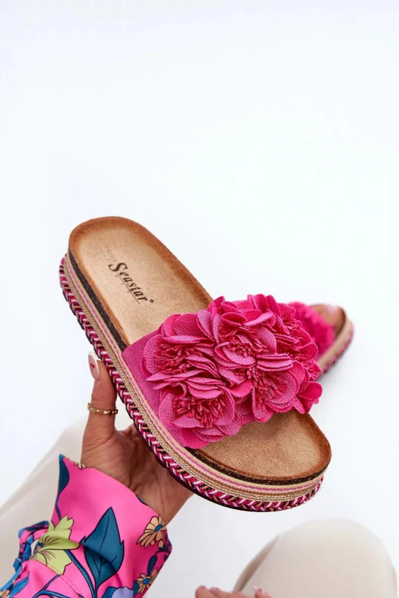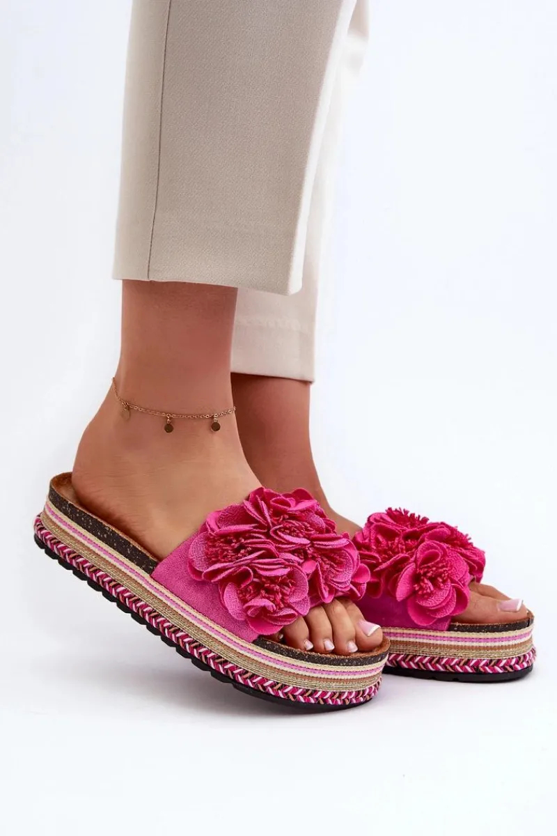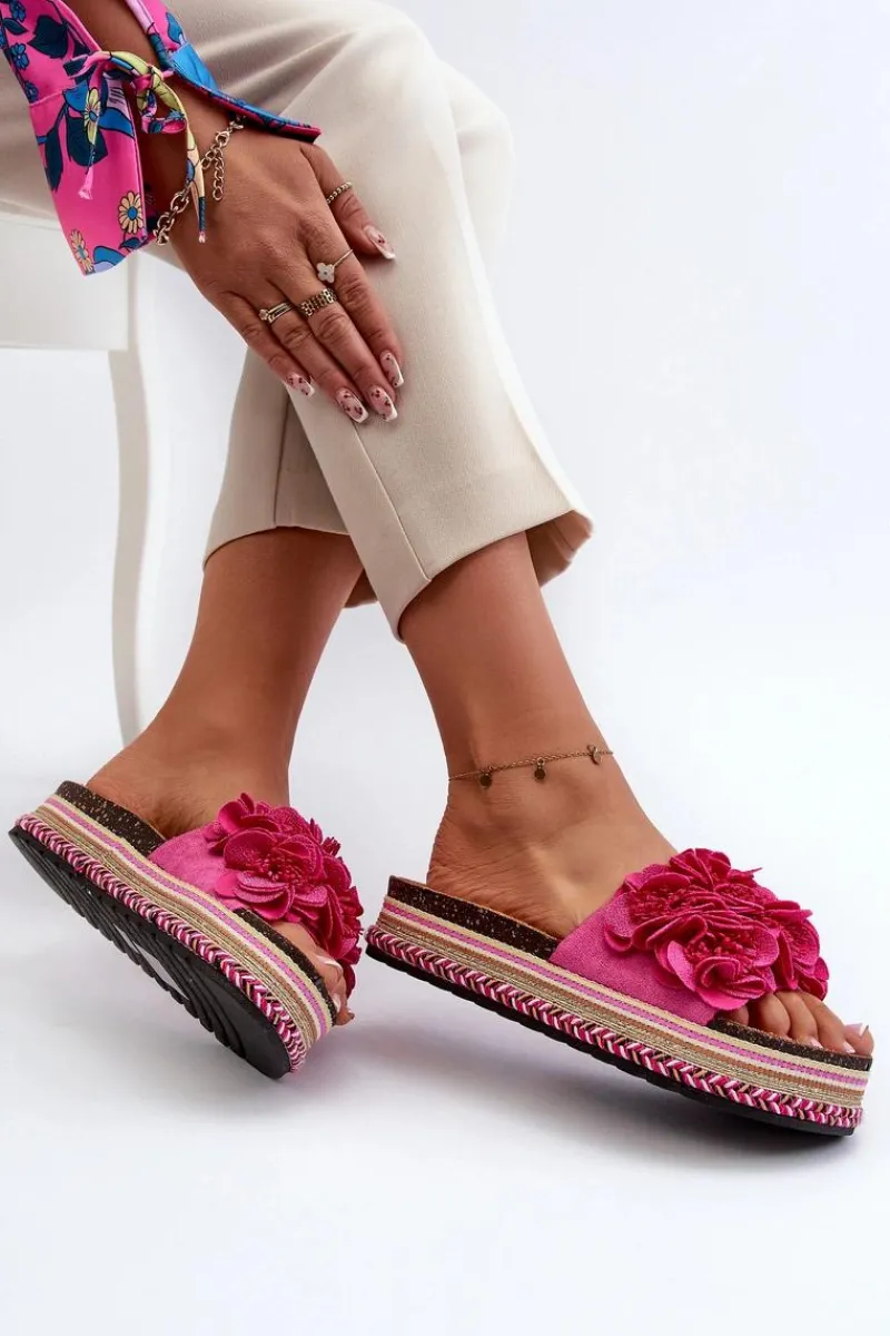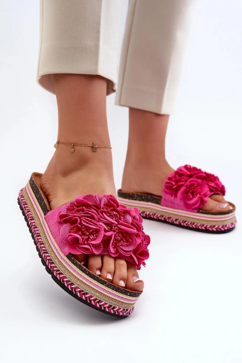 Damskie klapki na masywnej platformie to idealny wybór dla kobiet ceniących sobie modny wygląd i wygodę. Ten stylowy model przyciąga wzrok nie tylko swoją masywną platformą, ale również uroczymi kwiatkami, które zdobią przód obuwia. Idealne na letnie dni, te klapki są doskonałym dodatkiem do sukienek, spódnic, a także jeansów i szortów. Przy wyborze rozmiaru prosimy sugerować się tabelą rozmiarów.