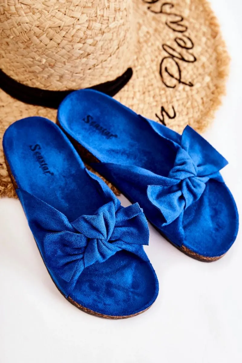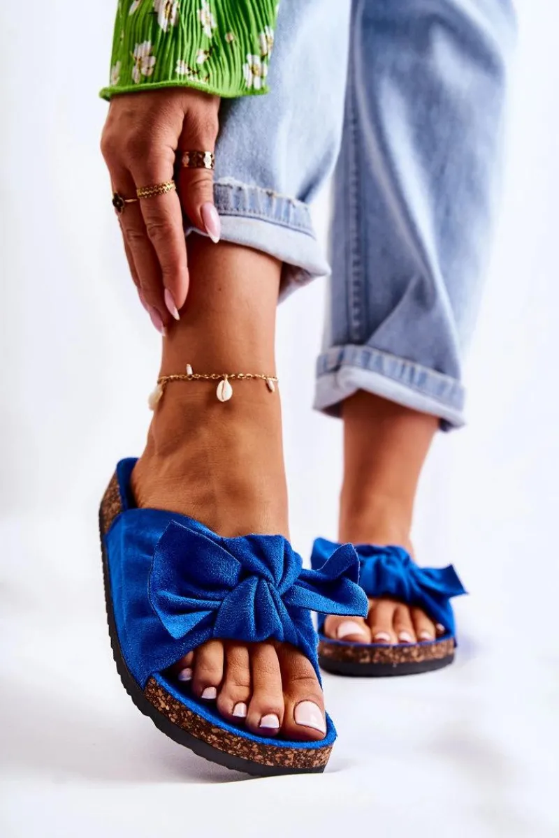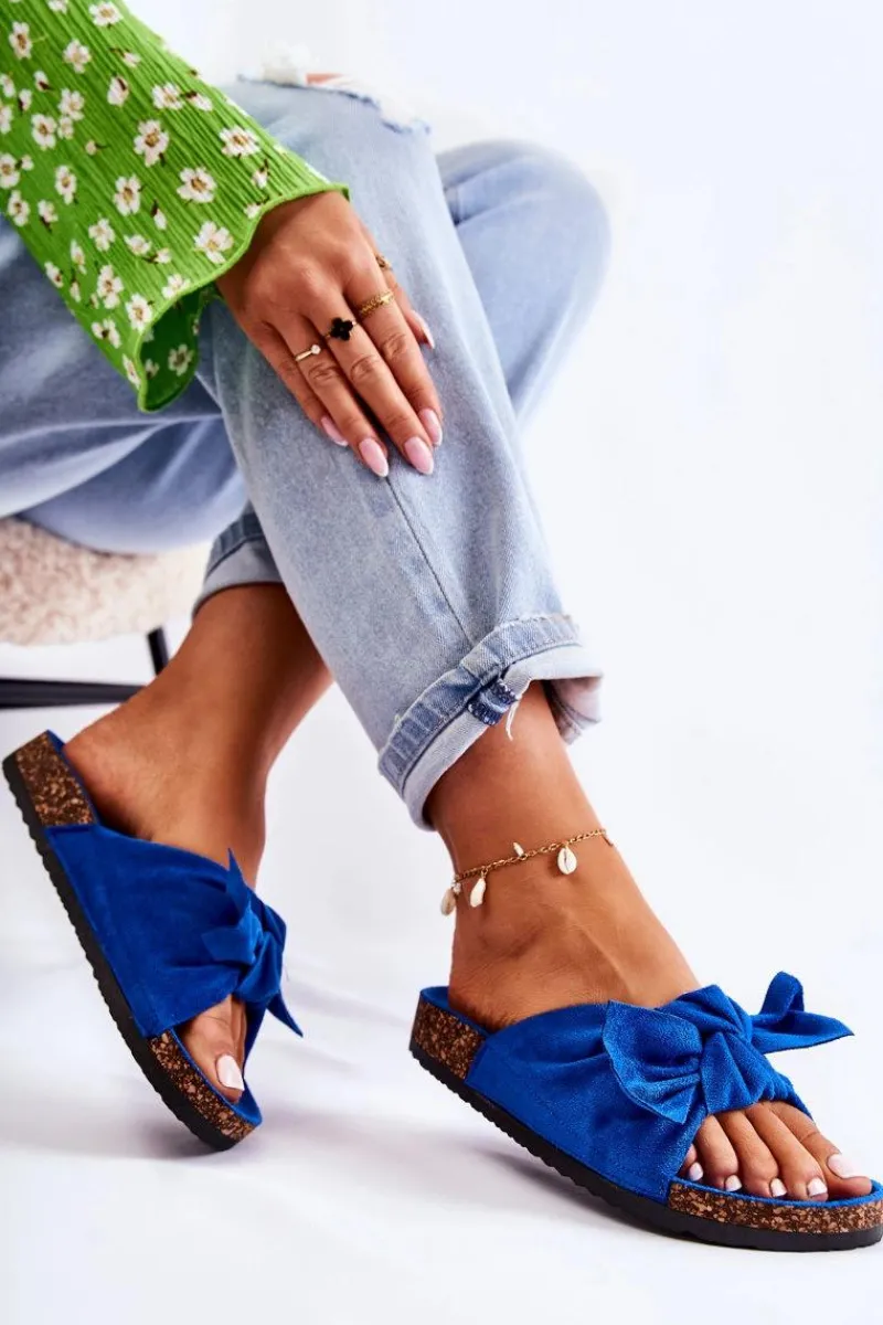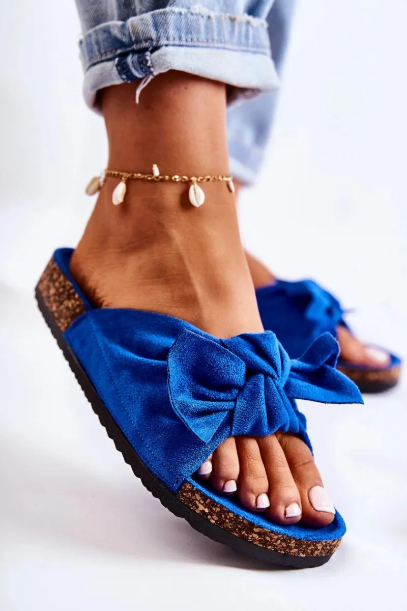 Piękne klapki na korkowej podeszwie. Buty posiadają profilowaną wkładkę, która zagwarantuje maksimum komfortu. Cholewka wykonana jest z miękkiego eko zamszu przyjemnego w dotyku. Podeszwa wykonana z tworzywa sztucznego. Urocza kokarda na przodzie. Klapki sprawdzą się zarówno na co dzień do pracy czy na zakupy, ale także do domu zamiast papci. Idealne na lato! Klapki dostępne są w wielu pięknych kolorach! Przy wyborze rozmiaru prosimy sugerować się tabelą rozmiarów.