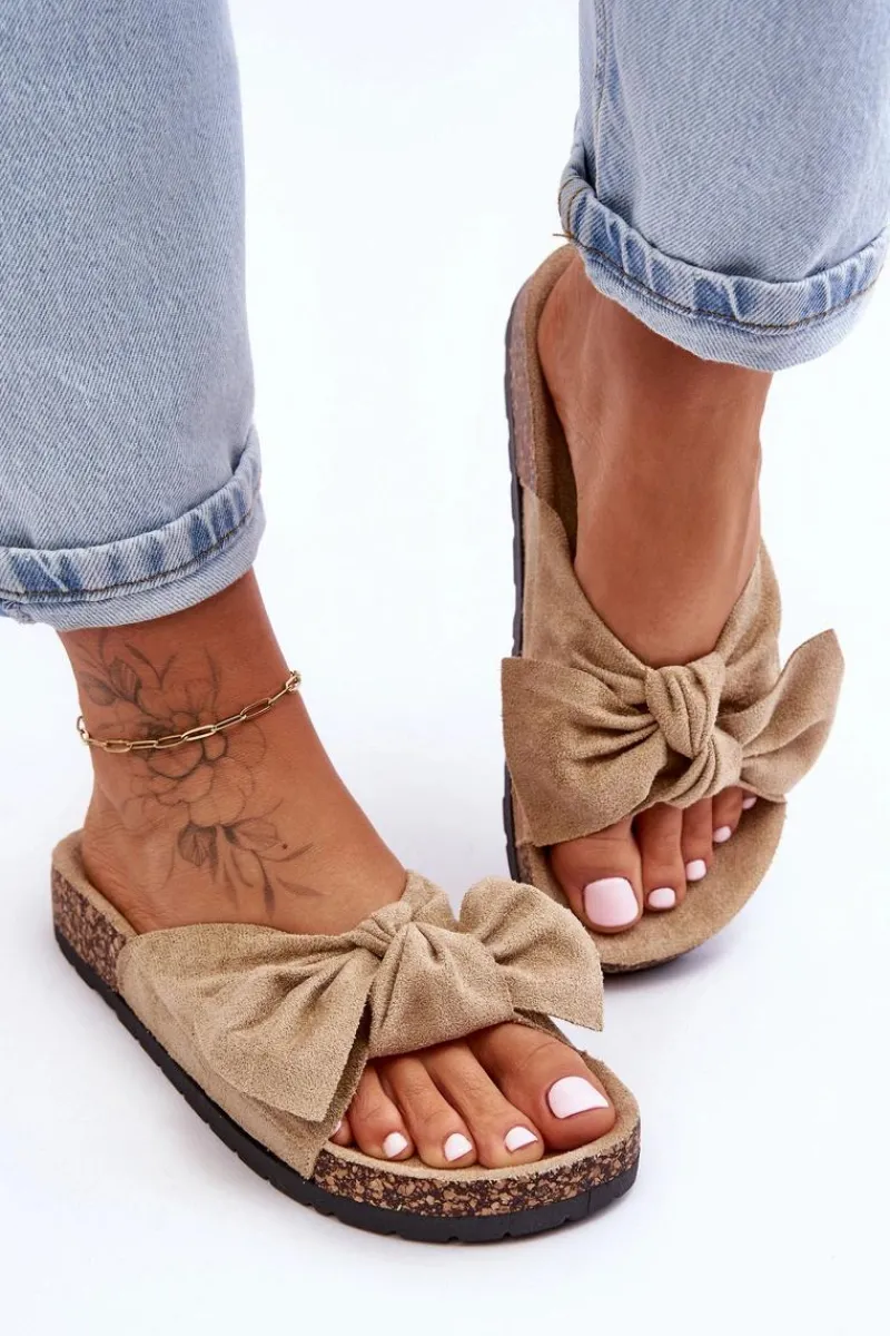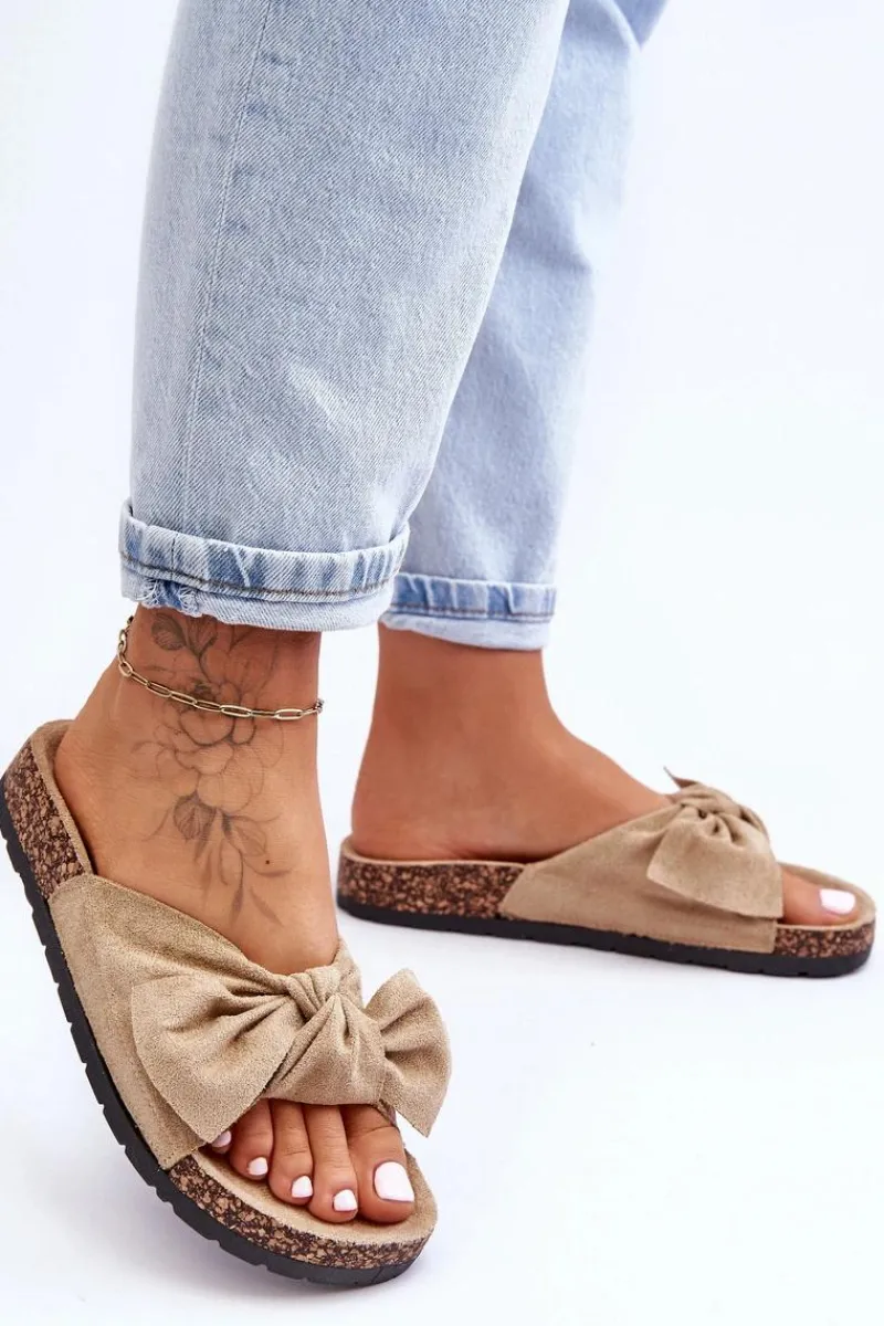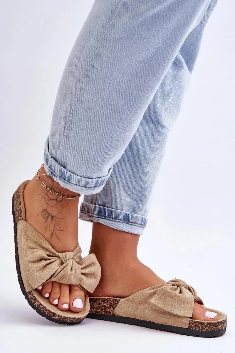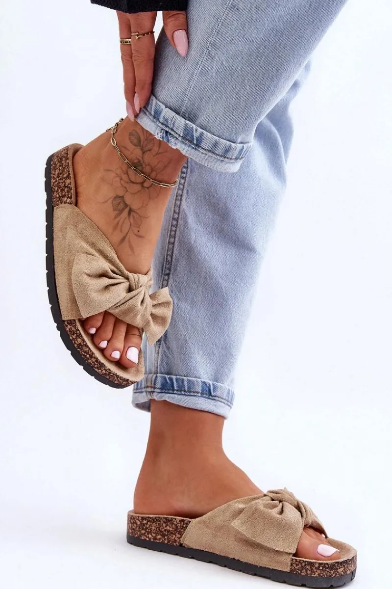 Piękne klapki na korkowej podeszwie. Buty posiadają profilowaną wkładkę, która zagwarantuje maksimum komfortu. Cholewka wykonana jest z miękkiego eko zamszu przyjemnego w dotyku. Podeszwa wykonana z tworzywa sztucznego. Urocza kokarda na przodzie. Klapki sprawdzą się zarówno na co dzień do pracy czy na zakupy, ale także do domu zamiast papci. Idealne na lato! Klapki dostępne są w wielu pięknych kolorach! Przy wyborze rozmiaru prosimy sugerować się tabelą rozmiarów.
