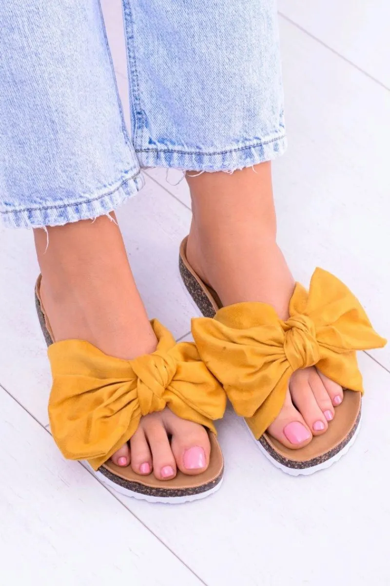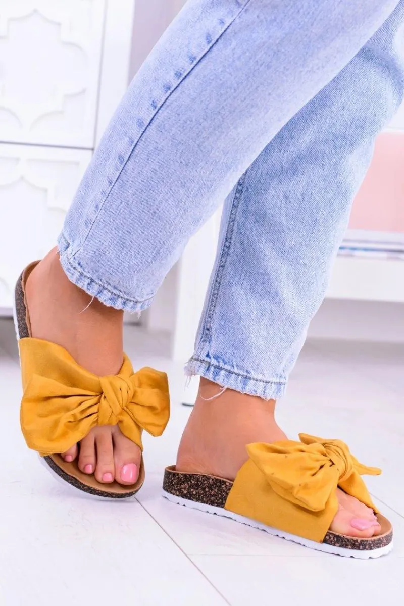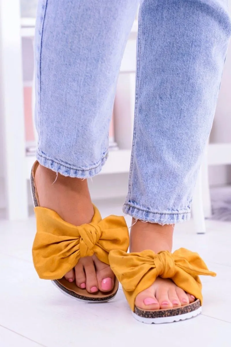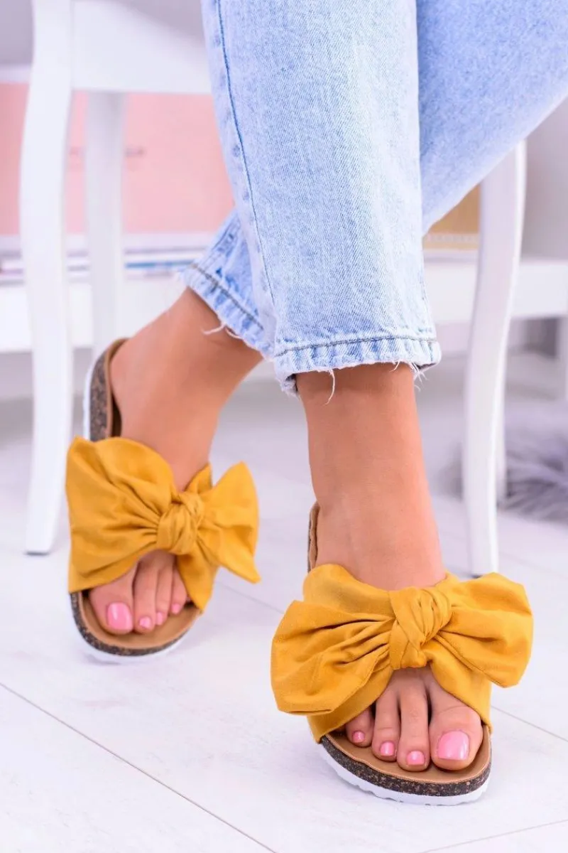Klapki Korkowe|Klapki Damskie Klasyczne>Boto Vices Damskie Żółte Klapki Na Korku Kokarda Nina